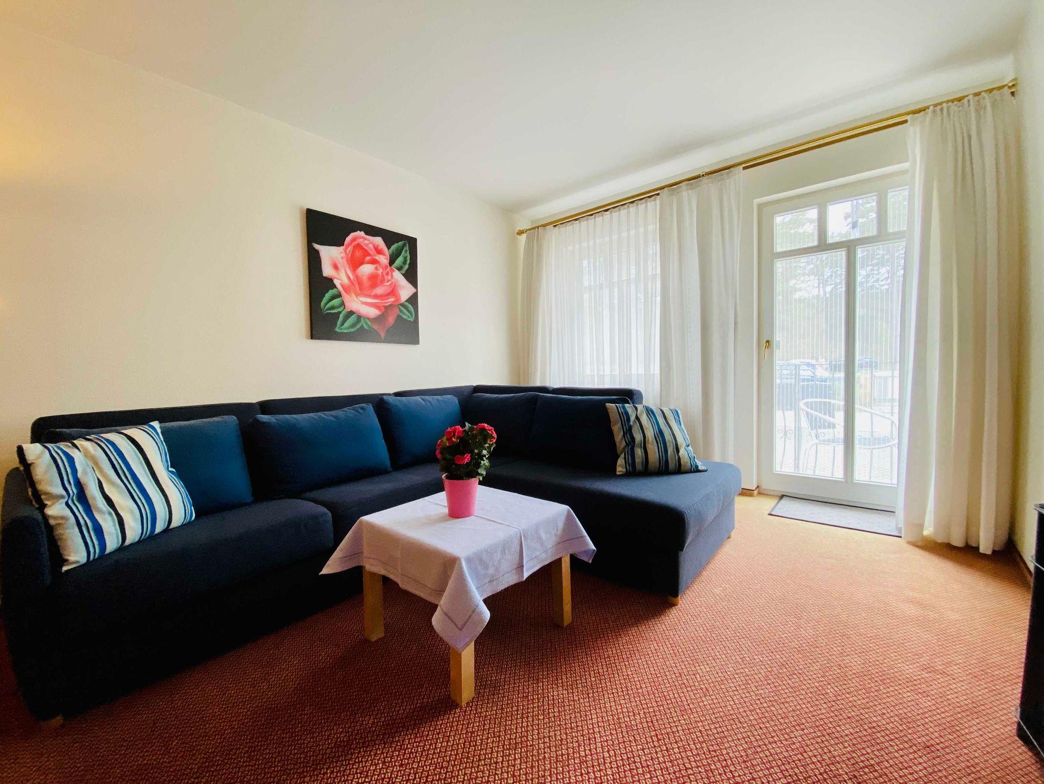 Die Wohnung 115 ist ein Zweiraumappartement mit Südausrichtung, nur 50m vom Usedomer Strand entfernt. Sie verfügt über eine offene Küchenzeile mit Geschirrspüler, Kaffemaschine, Toster, Wasserkocher, Ceranfeld sowie einem Backofen. Das Schlafzimmer ist wie das Wohnzimmer mit Teppichboden ausgelegt und verfügt über ein Doppelbett. Die 3. & 4. Person haben auf der Schlafcouch im Wohnzimmer die Möglichkeit zu schlafen. Das Badezimmer ist mit Dusche und Badewanne ausgestattet. Die Wohnung ist durch Ihre Lage und Ihre Ausstattung bei Gästen beliebt, die die Ruhe genießen möchten. Zu Ihrer Wohnung gehören ein kleiner Balkon in Richtung Süd (Nachmittags-und Abendsonne) und ein Tiefgaragenstellplatz für max. Höhe des PKW von 1,50m.