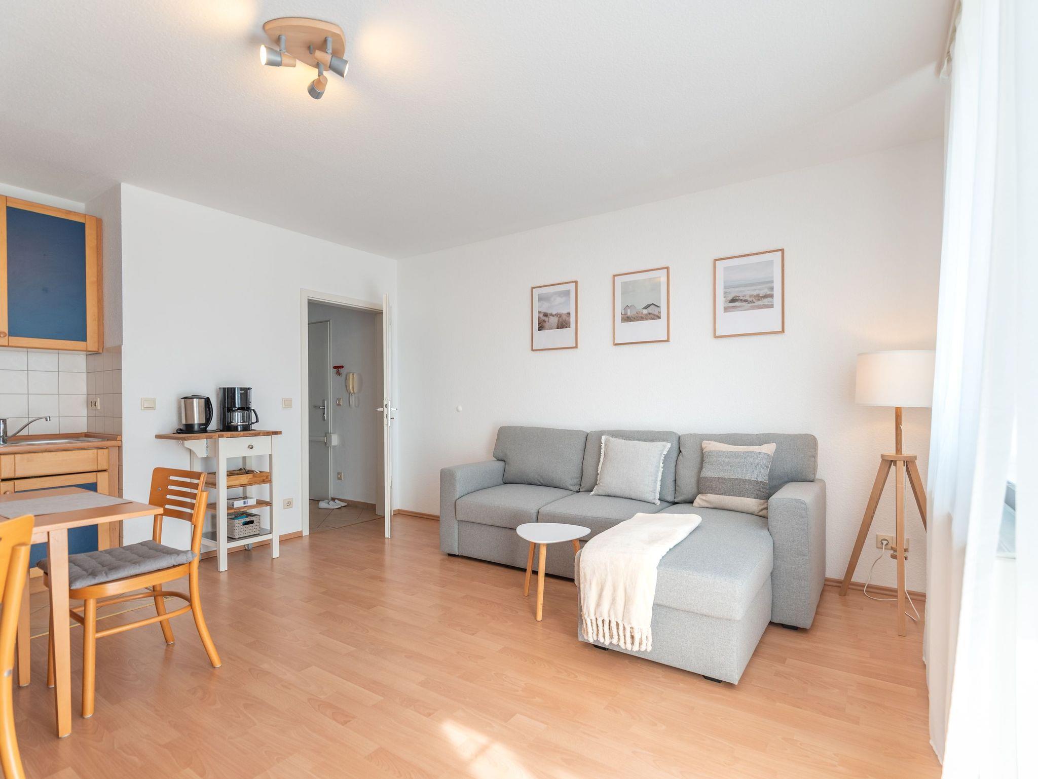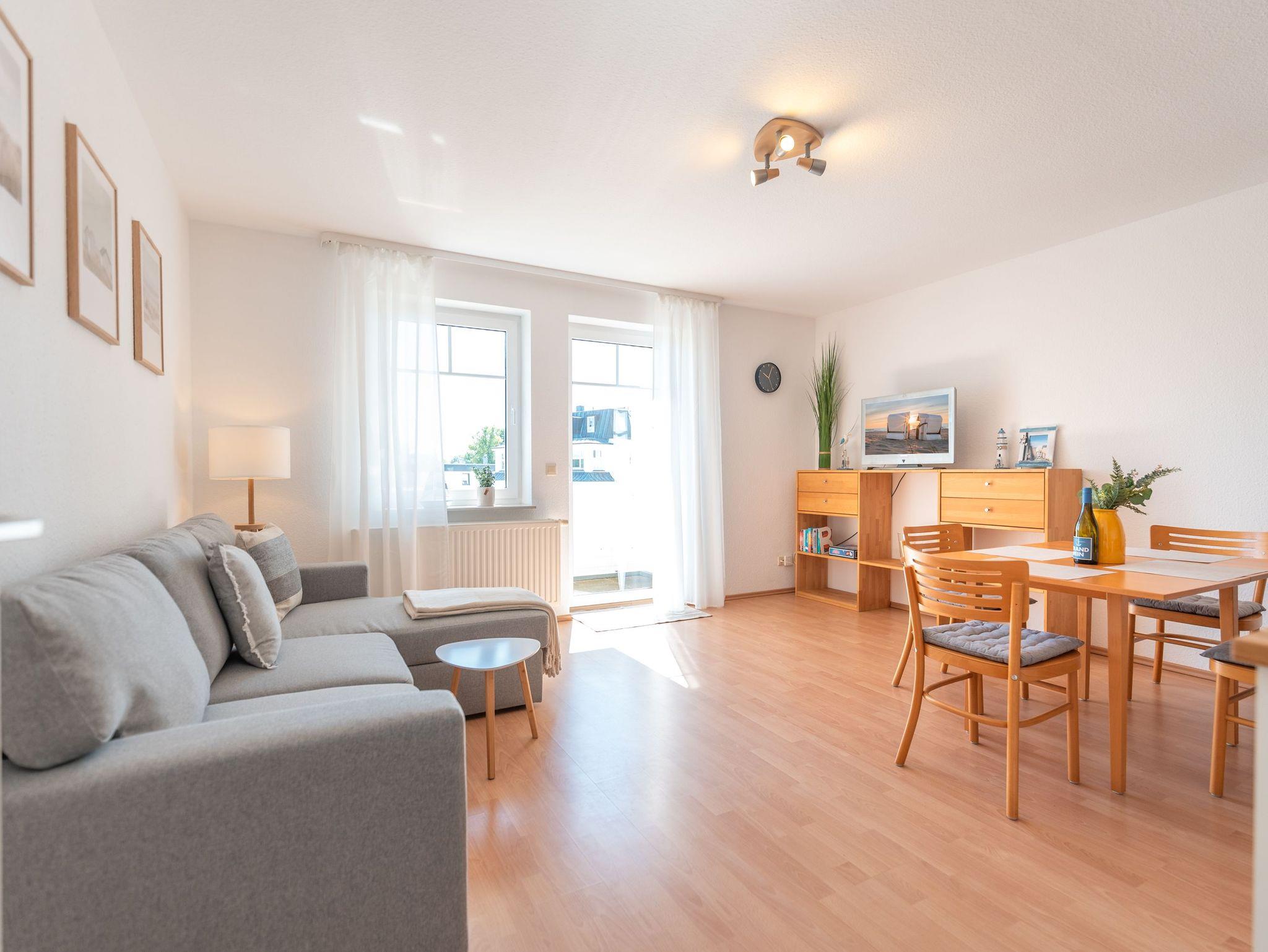 Die Ferienwohnung Ostseetraum empfängt Sie mit einem einladenden Wohnzimmer, das geschickt mit einem Essbereich und einer gut ausgestatteten Küchenzeile kombiniert ist. Vom Wohnzimmer aus gelangen Sie auf einen kleinen Balkon, der sich perfekt dazu eignet, die frische Ostseeluft zu genießen.