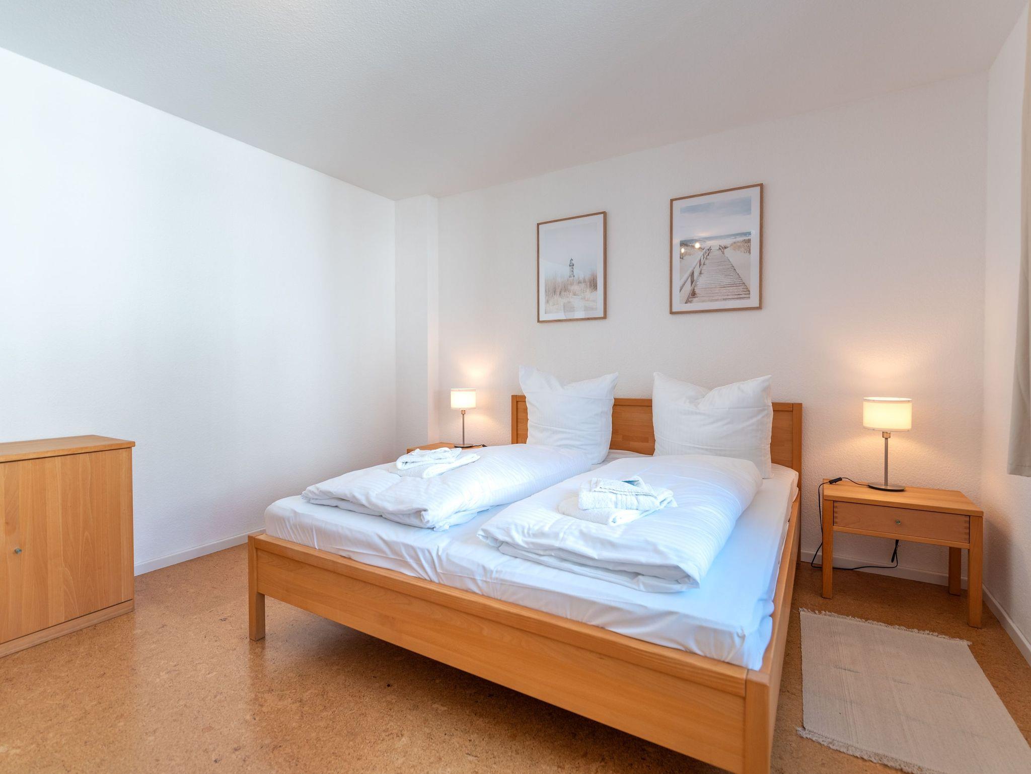 Das Schlafzimmer ist mit einem komfortablen Doppelbett und einem geräumigen Kleiderschrank ausgestattet, der genügend Platz für Ihre Urlaubsgarderobe bietet. Sollten Sie mit einem Baby reisen, können ein Babybett sowie ein Hochstuhl bei Bedarf problemlos hinzugebucht werden.