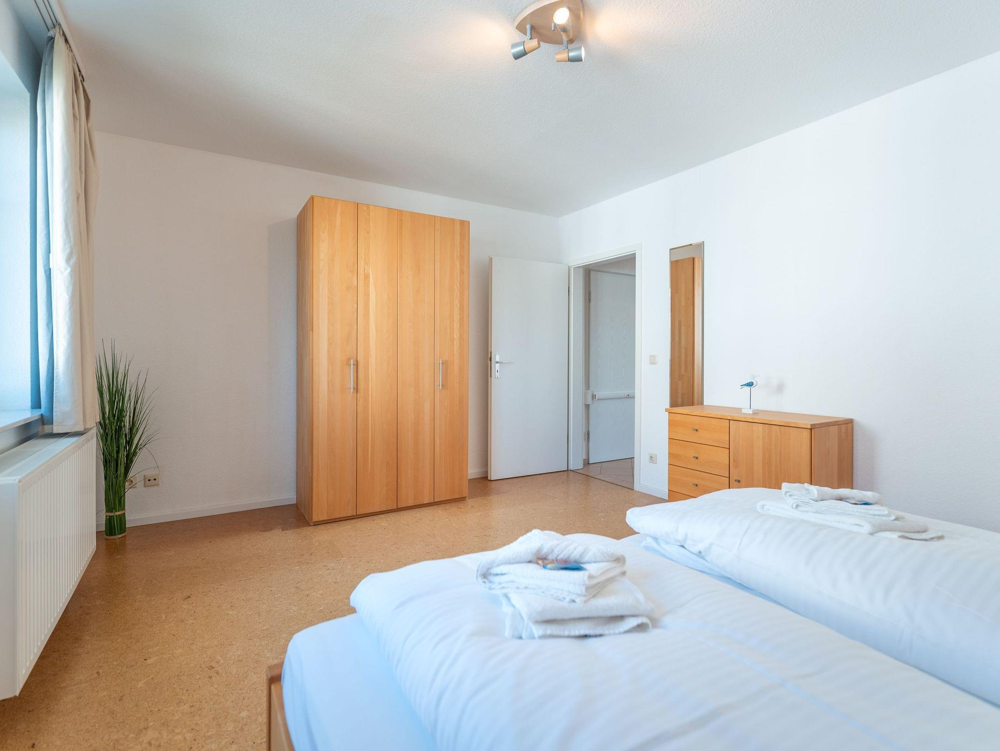 • Schlafzimmer mit Doppelbett und Kleiderschrank