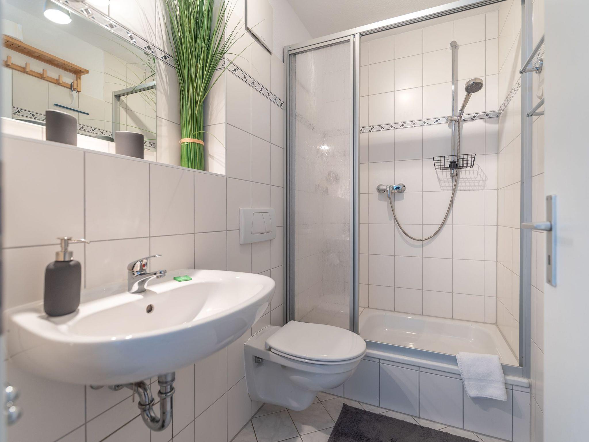 Das moderne Badezimmer verfügt über eine Dusche und ein WC und sorgt für zusätzlichen Komfort während Ihres Aufenthalts. Damit Sie jederzeit online bleiben können, steht Ihnen in der gesamten Wohnung kostenloses WLAN zur Verfügung. Für Ihr Fahrzeug gibt es einen kostenfreien Parkplatz auf dem Hof, der jedoch aufgrund der schmalen Zufahrt etwas eingeschränkt ist.
