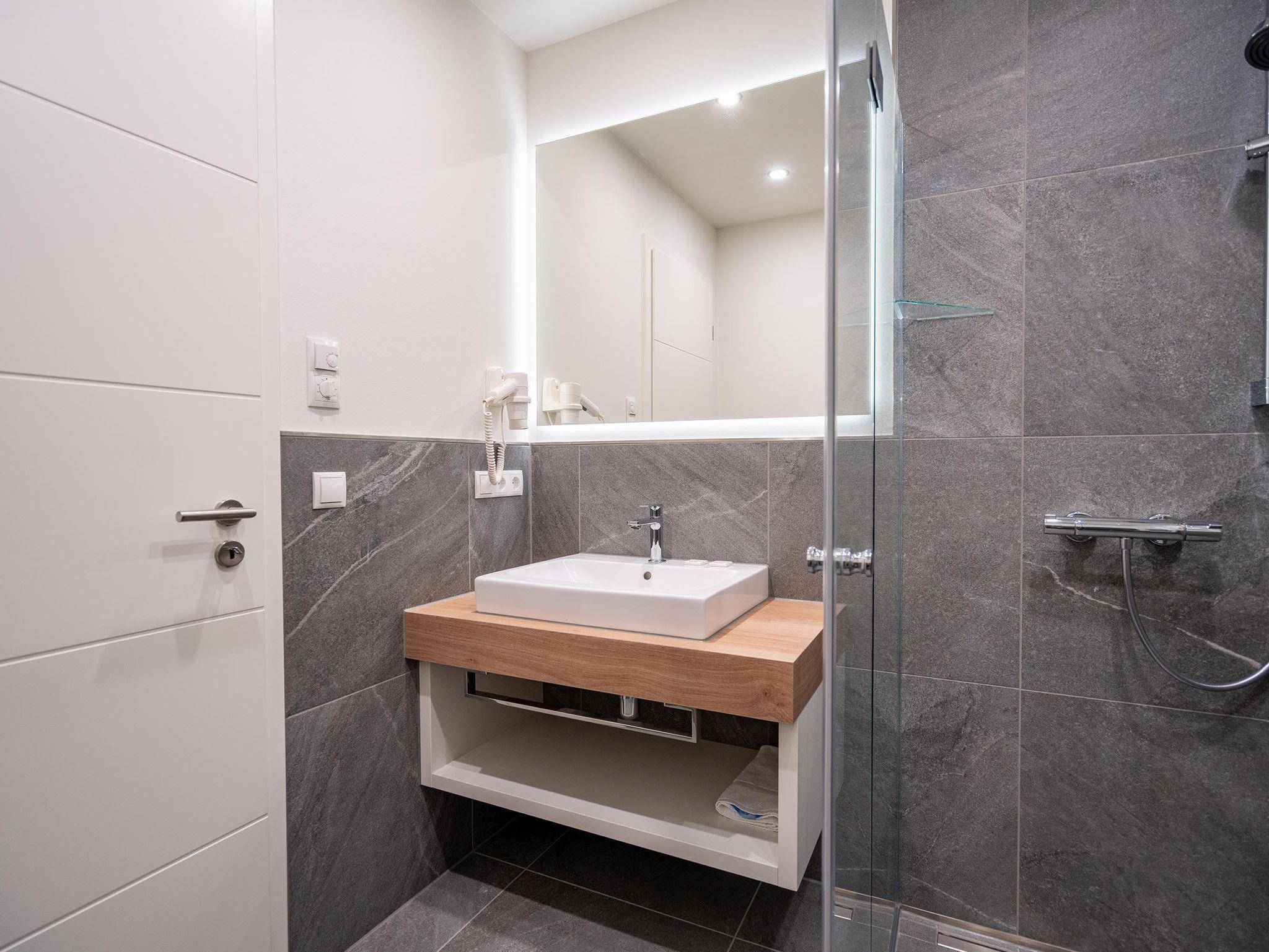 Die 2024 fertig gestellte Strandterrasse liegt direkt an der belebten Strandpromenade und bietet einen einzigartigen Ausblick auf die Grand Dame der historischen Seebrücken sowie die historische Konzertmuschel, einem beliebten Treffpunkt für Kunst und Kultur. Dahinter liegt die Ostsee ? ein Panorama, das zu den schönsten in den Kaiserbädern gehört. Es ist wie das Abtauchen in eine andere Zeit. In eine Zeit, in der man mit Stock, Sonnenschirm und Hut fürs „Sehen und gesehen werden“ über die Promenade schlenderte; aber auch in eine Zeit, in der ? damals wie heute ? Zeit einmal für eine kurze Weile keine Rolle spielt. Weil man angekommen ist im Loslassen, Entspannen und Genießen. Es ist dieser besondere Geruch nach Meeresluft und Freiheit, der in Erinnerung bleibt. Dazu die Bilder, die man mitnimmt. Von langen Strandspaziergängen, vom Lachen in fröhlich schäumenden Ostseewellen, von der Zeit in einem wunderschönen Urlaubsdomizil. Denn genau das ist die Strandterrasse mit ihren 56 modernen und exklusiven Ferienappartements direkt gegenüber der Ahlbecker Seebrücke. Die Ein-, Zwei- oder Dreizimmerwohnungen ? zwischen 40 und 70 Quadratmeter groß ? sind von einer Innenarchitektin gemeinsam mit unserem Erfahrungsschatz an Gästewünschen mit viel Liebe zum Detail und ganz individuell konzipiert worden. Entspannung und Wohlfühlen stehen an erster Stelle. Alles ist aufeinander abgestimmt und sorgt für eine gemütliche Atmosphäre. Wählen Sie zwischen einem Domizil in einem hellen, sandfarbenen Designkonzept oder einem Appartement mit anthrazitfarbenen Farbakzenten. Alle Appartements verfügen gleichermaßen über eine stilvolle und komfortable Einrichtung, die passgenau angefertigt worden ist, sowie über moderne Küchen und Bäder. Jedem Schlafzimmer ist ein eigenes Bad mit Dusche zugeordnet (außer App. B4.5). Die Appartements besitzen fast alle einen Balkon ? viele schauen sogar zur Ostsee hinaus. Die meisten Feriendomizile haben einen Elektrokamin und Infrarotsaunen. Im Erdgeschoss befindet sich ein separater Gemeinschaftsraum für Fahrräder. Außerdem besteht die Möglichkeit, im Gemeinschaftswaschraum 2 Waschmaschinen [&] Trockner zu nutzen. Ergänzt wird das Angebot durch eine Gemeinschaftssauna, die täglich von 11:00 bis 22:00 Uhr nutzbar ist. In der Tiefgarage (Einfahrtshöhe 2,03 Meter) steht für jede Wohnung 1 Pkw-Stellplatz zur Verfügung. Ist alles zur Zufriedenheit untergebracht? Dann kann der Urlaub ja beginnen. Und beim Blick vom Balkon über die Ostsee treffen sich zum Sonnenaufgang das Heute und das Damals. Gelassenheit legt sich beim Gang hinunter an den Strand auf die Seele. Jetzt darf die Zeit stehenbleiben.