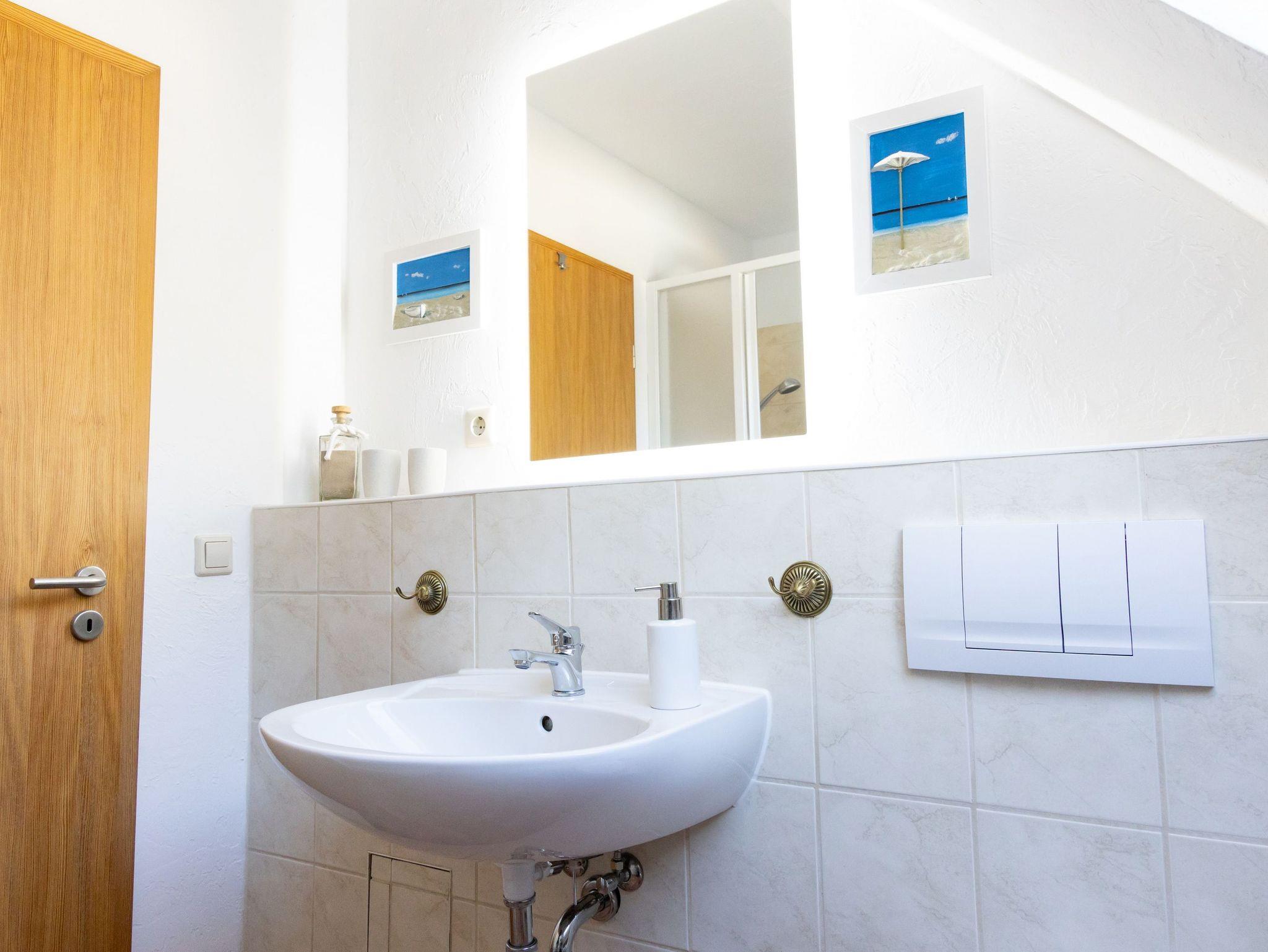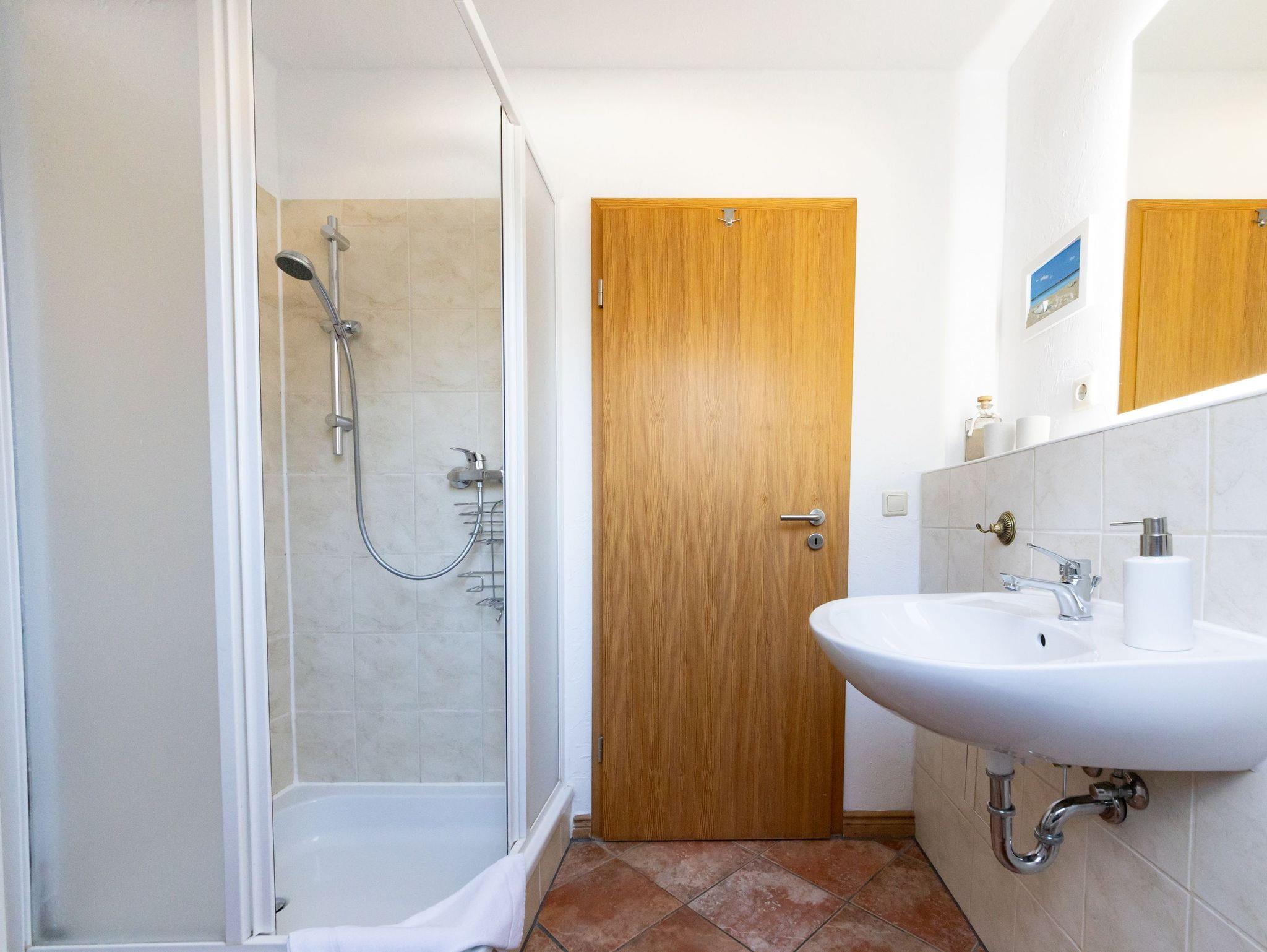 Das Badezimmer ist mit Dusche, WC und einem Haartrockner ausgestattet.