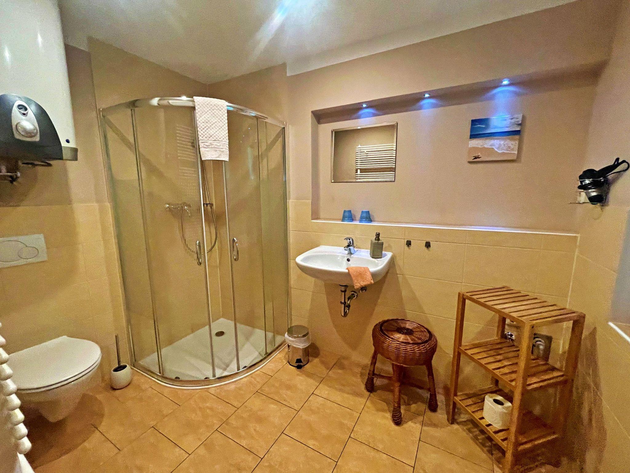 ? Bad im Erdgeschoss mit Dusche, WC, Fußbodenerwärmung und Handtuchtrockenheizkörper,