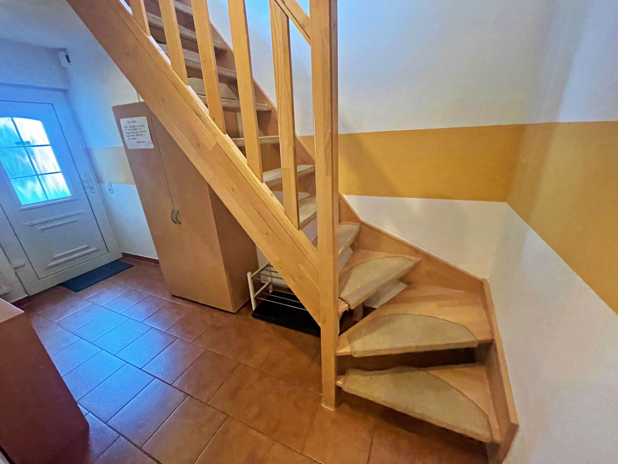 Das 2-Zimmer-Ferienhaus im Erd- und Obergeschoss verfügt über ca. 47m² Wohnfläche aufgeteilt in 1 Schlafzimmer (Erdgeschoss), 1 Bad (Erdgeschoss), Flur und Eingang (im Erdgeschoss), 1 kombiniertes Wohnzimmer mit Küchenzeile und Essplatz (Obergeschoss) und 1 Balkon. Zur Wohnung gehört eine direkt angrenzende Balkon und ein Kfz-Stellplatz auf dem Grundstück.
