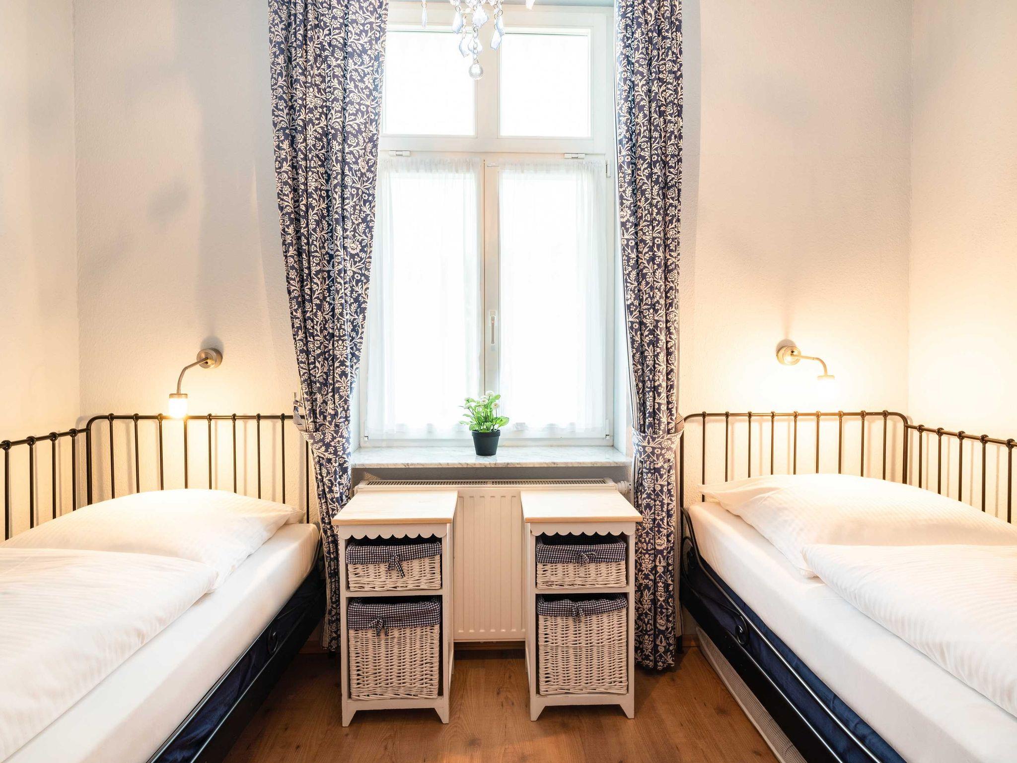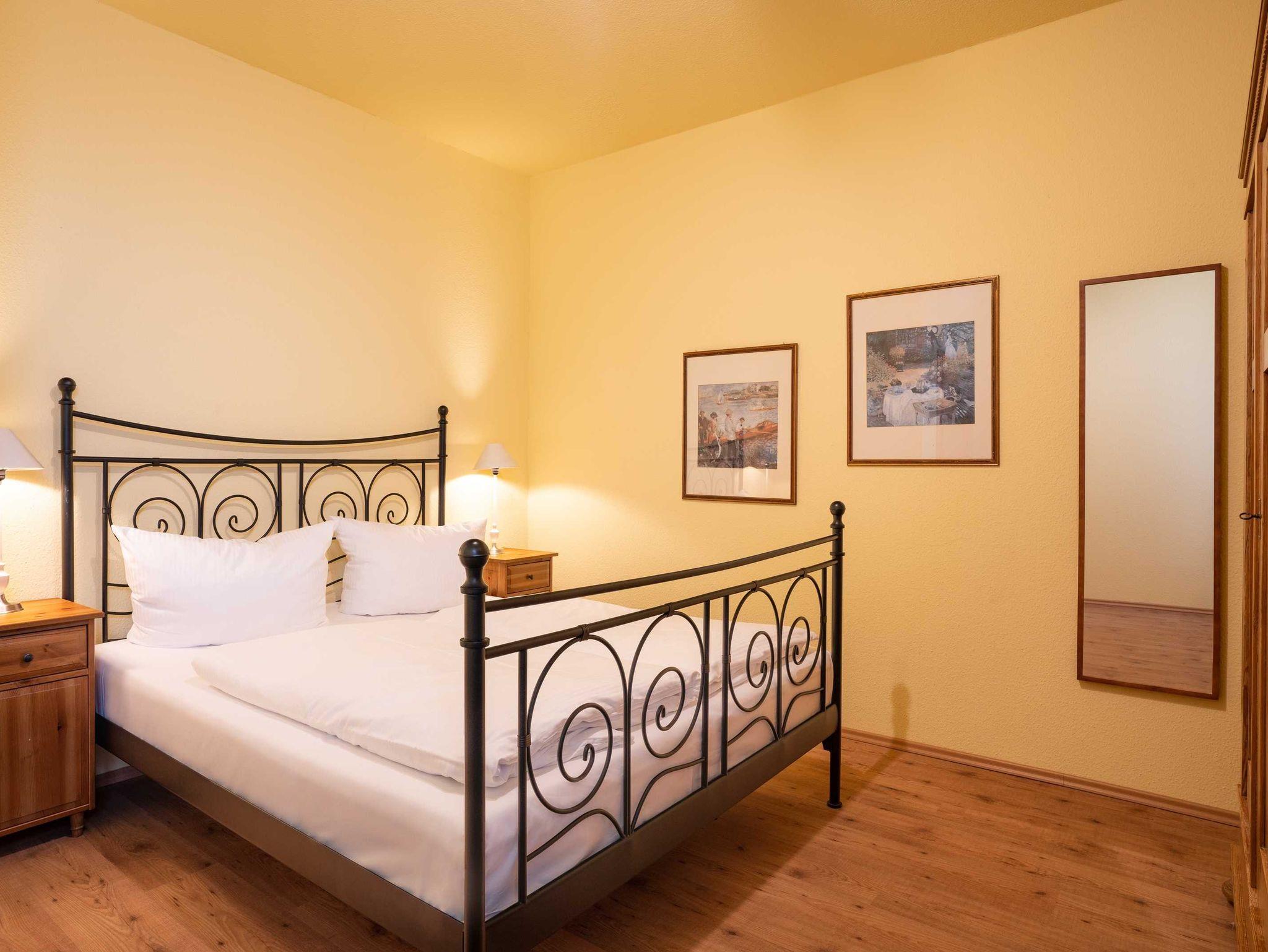 Das 60 qm große Appartement Strandliebe im Erdgeschoss verfügt über zwei Schlafzimmer (ein Doppelbett und zwei Einzelbetten) und ein schön eigerichtetes Wohnzimmer. Die offene Küche ist mit allem, was Sie für den täglichen Bedarf benötigen, ausgestattet. Die Wohnung verfügt über ein separates WC und ein Badezimmer mit Dusche.