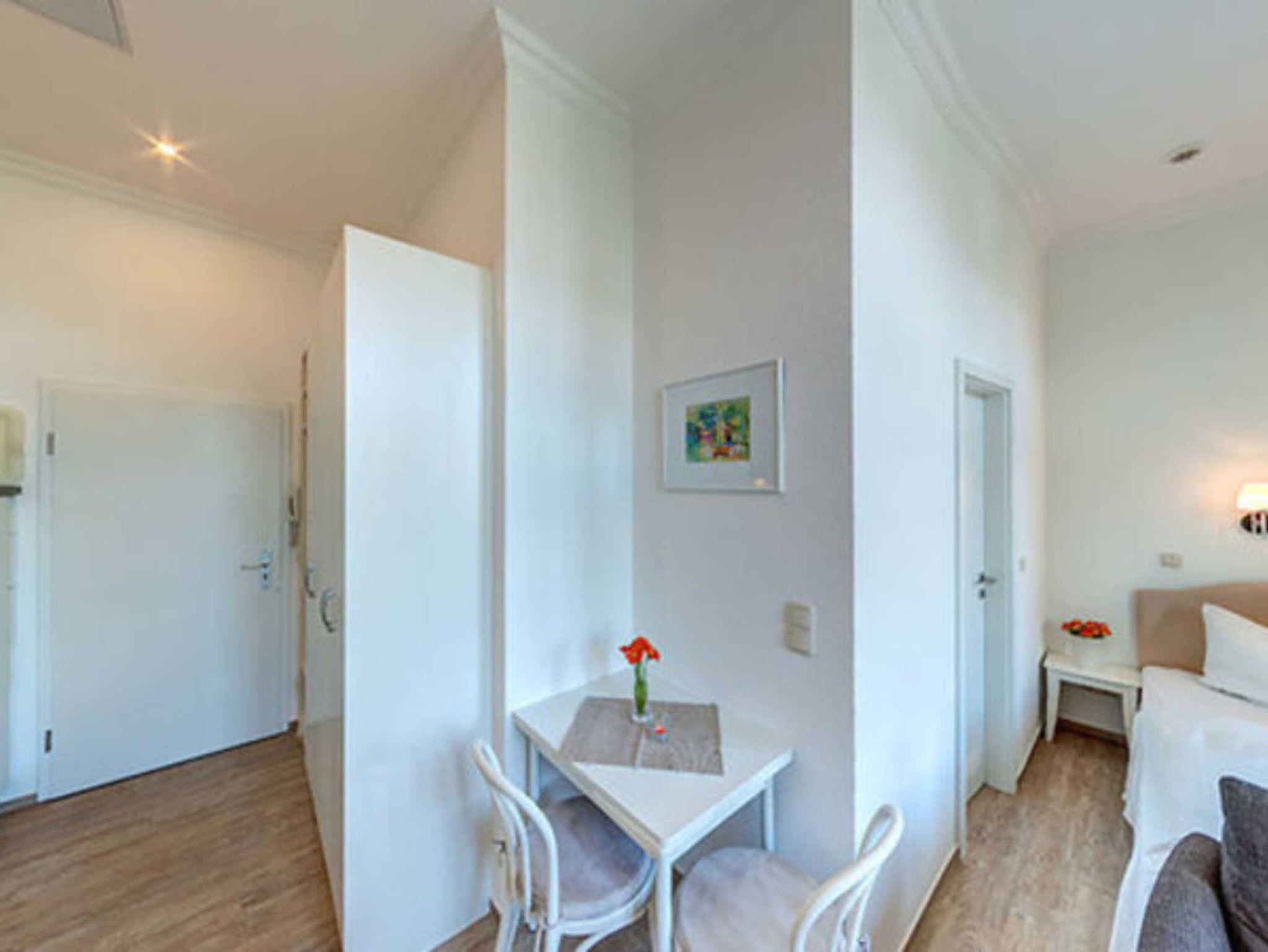 STRANDNAH! Nur ca. 100 m zur Strandpromenade mit BALKON! Gemütliches 1-Zimmer-Apartment mit guter Ausstattung. Wohn-/Schlafraum mit Doppelbett und Sitz-/Sofaecke, Küchenzeile mit Essplatz, kleines Duschbad mit großer walk-in-Dusche, Balkon. Die Wohnung verfügt über einen Pkw-Stellplatz . Abstellraum für Fahrräder und ähnliches ist vorhanden. Eine Sauna in der Villa Germania kann kostenpflichtig genutzt werden. Vom Haus aus können Sie das Ortszentrum und die bekannte Ahlbecker Seebrücke in ca. 3 bzw. 5 Minuten zu Fuß erreichen.