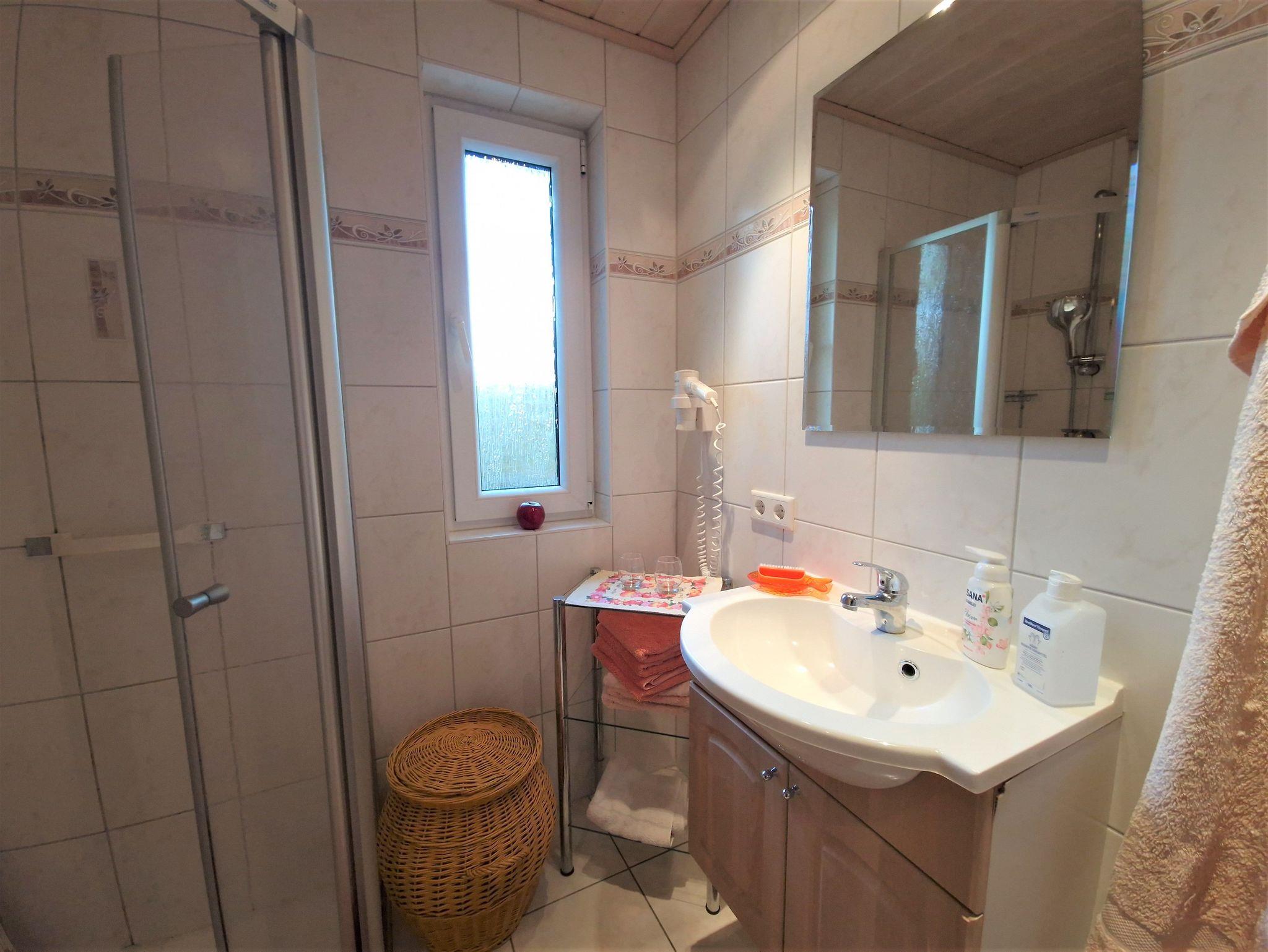 Die Ferienwohnung Veilchen, für 2 Erw. und 2 Kinder, hat eine Größe von 60 qm und verfügt über zwei separate Schlafzimmer, eine gut ausgestattete Küche, ein geräumiges Bad wie auch ein gemütlich eingerichtetes Wohnzimmer. Die Ferienwohnung befindet sich im Souterrain des Haupthauses und ist dadurch angenehm während der heißen Monate des Jahres. Sie ist über eine Treppe auf der Rückseite des Haupthauses zu erreichen.