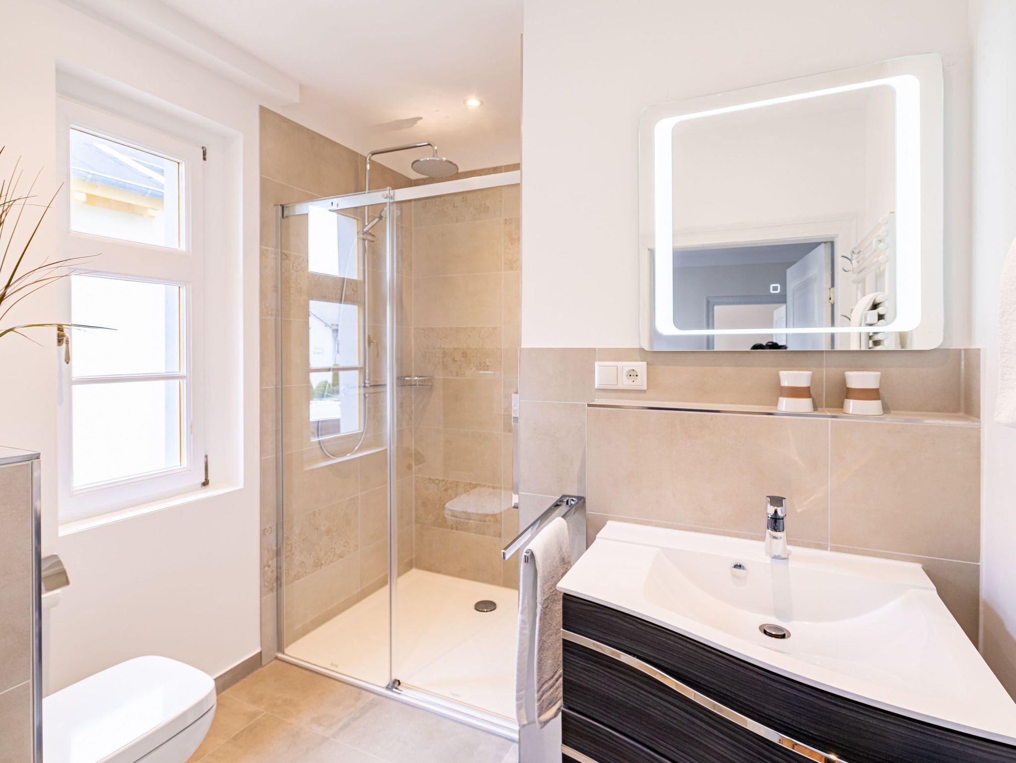 Der helle und lichtdurchflutete Wohn- und Essbereich ist mit Flat TV sowie bequemen Sofa und Sessel ausgestattet, die nach einem erlebnisreichen Tag zum Entspannen einladen. Der Esstisch bietet ausreichend Platz für bis zu 4 Personen, um seine kulinarischen Kochkünste zu genießen. Bereiten Sie in der vollausgestatteten Küche (Herd, Kühlschrank mit Tiefkühlfach, Geschirrspülmaschine, Mikrowelle, Kaffeemaschine, Toaster und Wasserkocher) gemeinsam Ihre Lieblingsspeisen zu. Das Schlafzimmer ist mit einem komfortablen Doppelbett und Flat-TV ausgestattet und lädt zu erholsamen Stunden ein. Das Sofa im Wohnbereich lässt sich im Handumdrehen zu einer gemütlichen Schlafstätte für Ihre mitreisenden Personen verwandeln. Das Bad verfügt über eine Dusche, WC und einen Haartrockner.