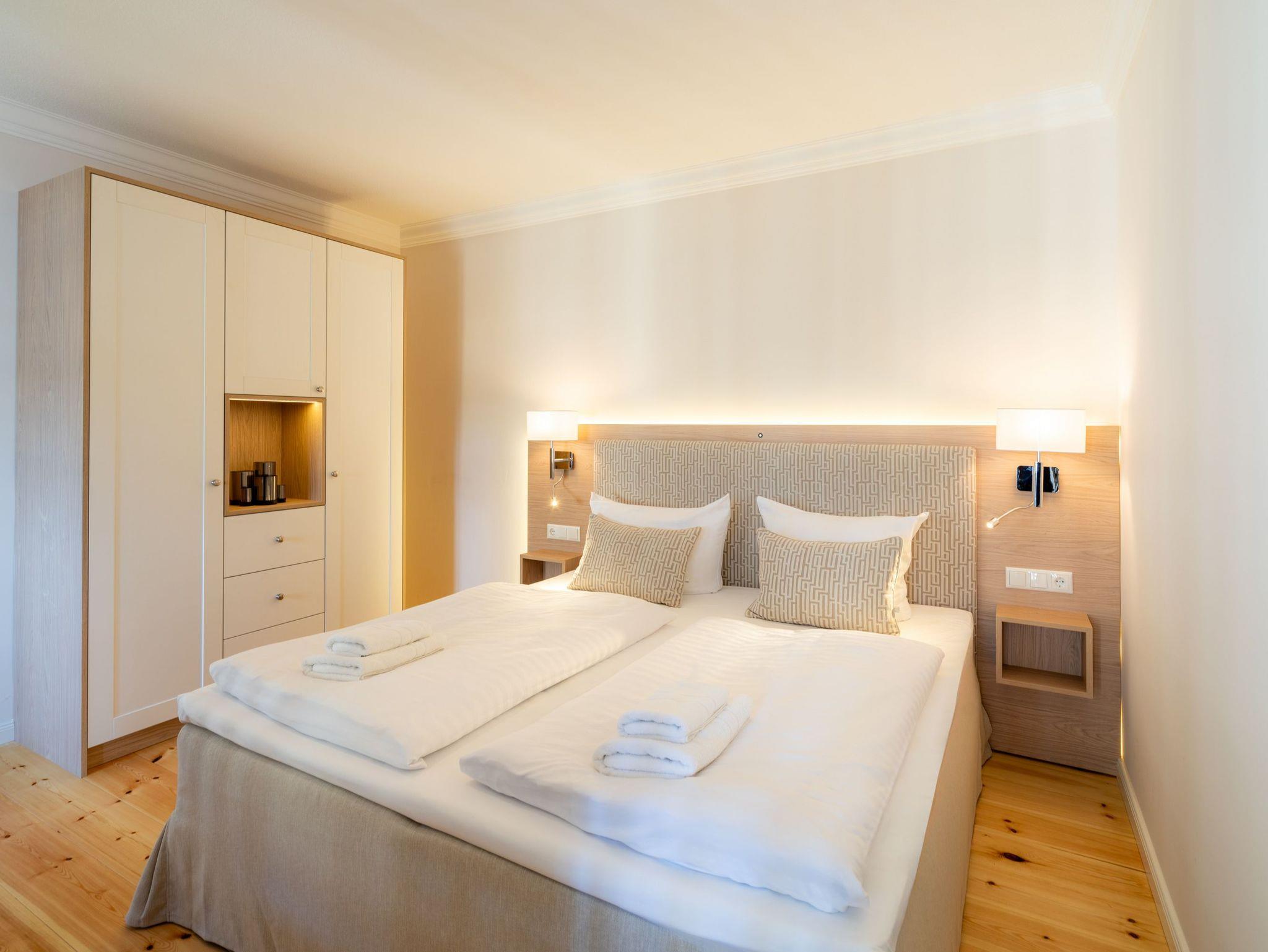 Damit Sie Ihre wohlverdiente Urlaubszeit bereits am Anreisetag in vollen Zügen genießen können, haben wir das Bett für Sie und das für Ihre lieben Mitreisenden bereits bezogen und ein Duschtuch sowie ein kleines Handtuch bereitgelegt.