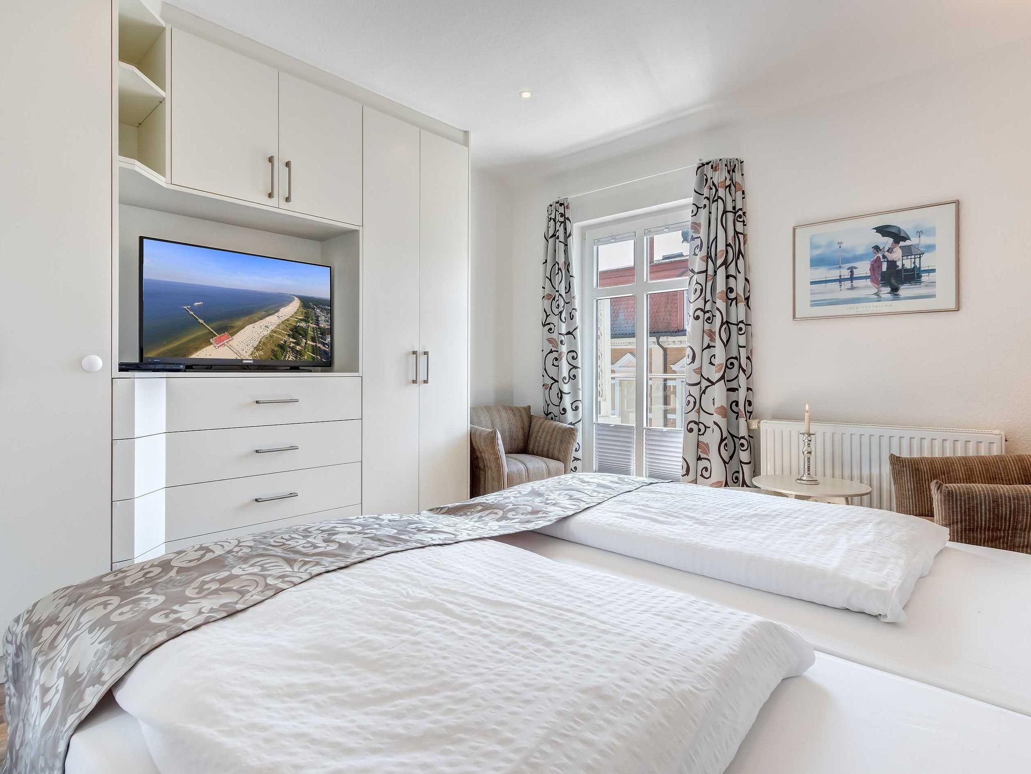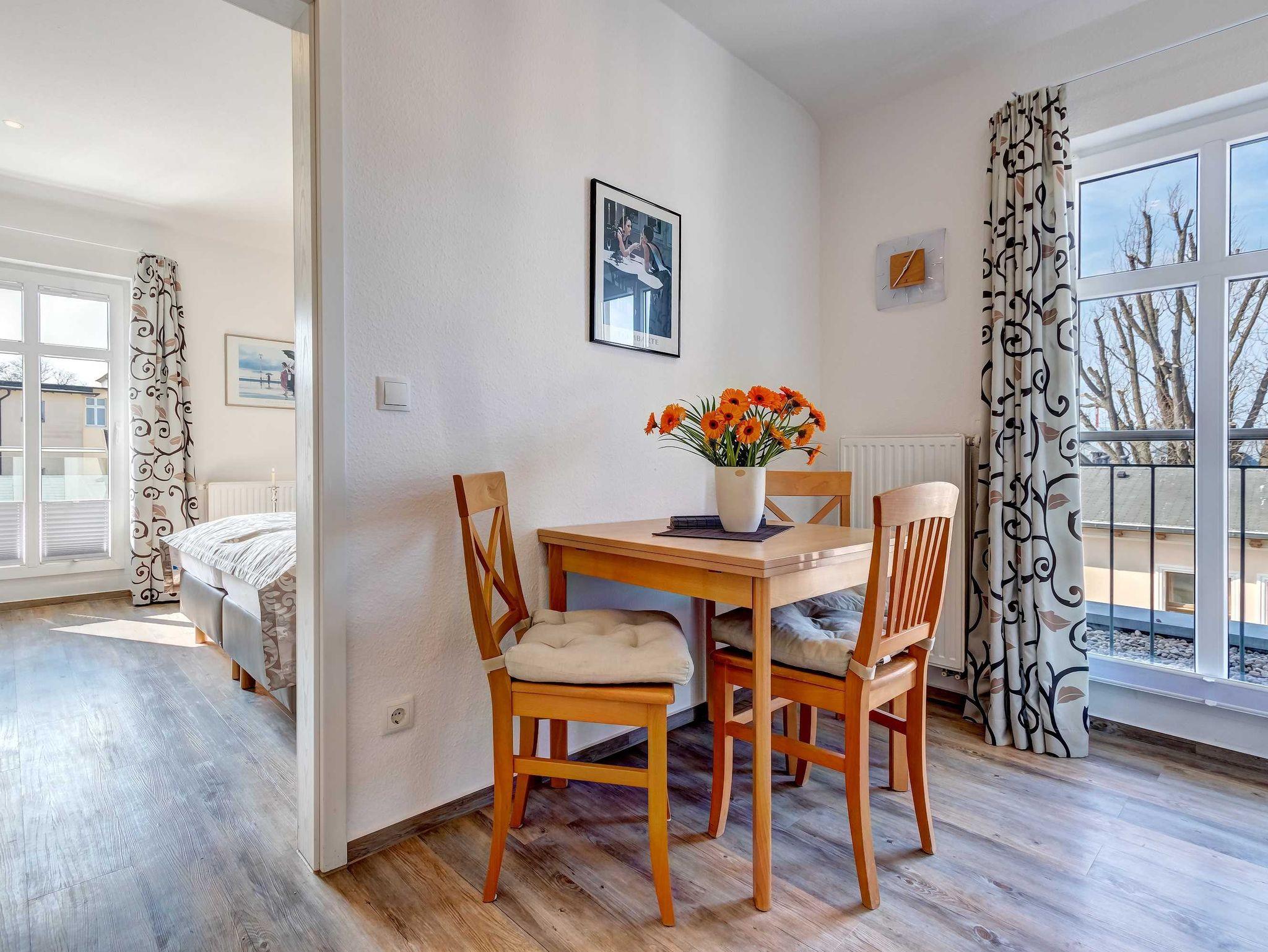 Hübsches 1-Zimmer-Appartement mit moderner guter Ausstattung. Kombinierter Wohn-/Schlafraum, separate Küche mit Essplatz, Duschbad, Dachterrasse nach Süden mit Sonne bis abends. Die Wohnung verfügt über einen Pkw-Stellplatz. Von der Villa Aquamarina sind es zum Ortszentrum und der Seebrücke ca. 3 Minuten zu Fuß. Zum Strand sind es 50 m. Die Wohnungen der Villa Aquamarina verfügen alle über passwortgeschütztes WLAN (gerätegebunden, Euro 1,50 pro Tag und pro Gerät).