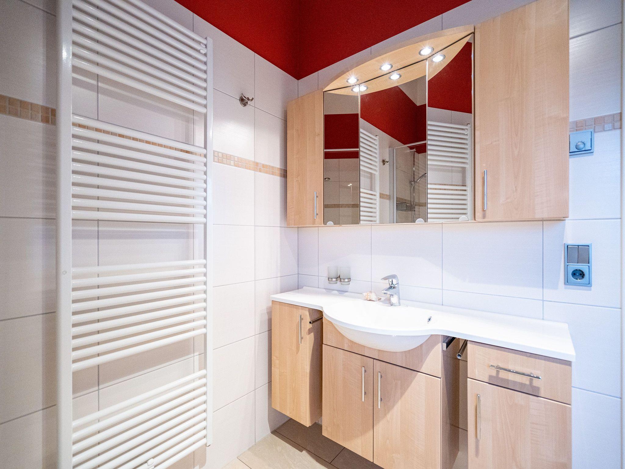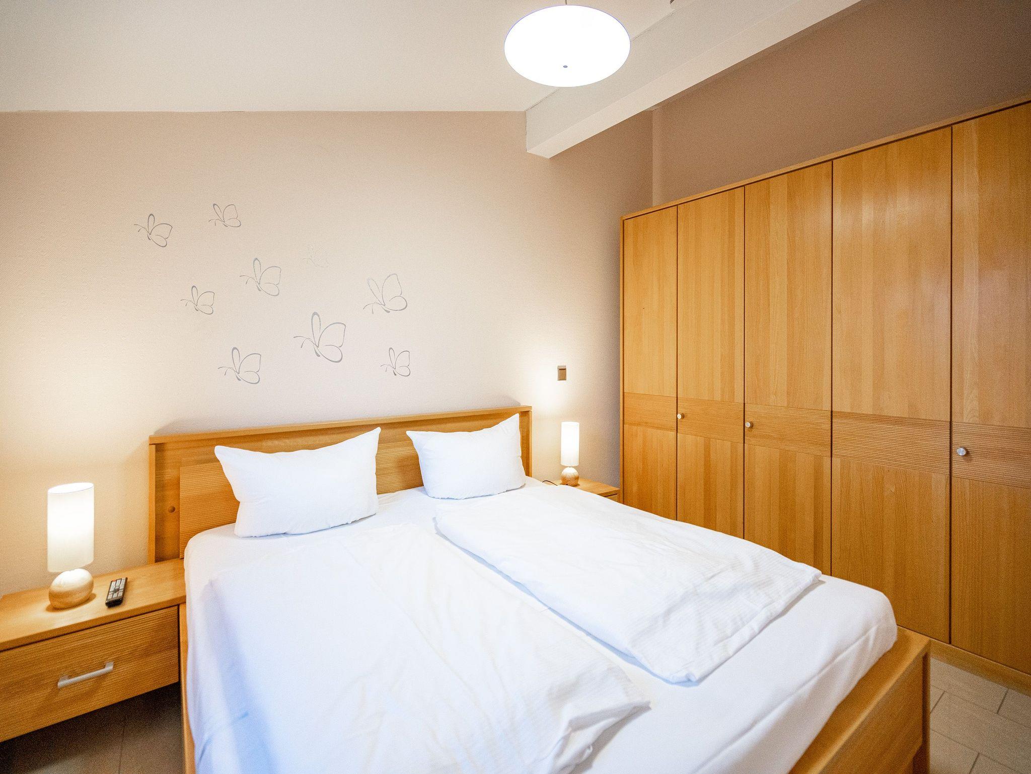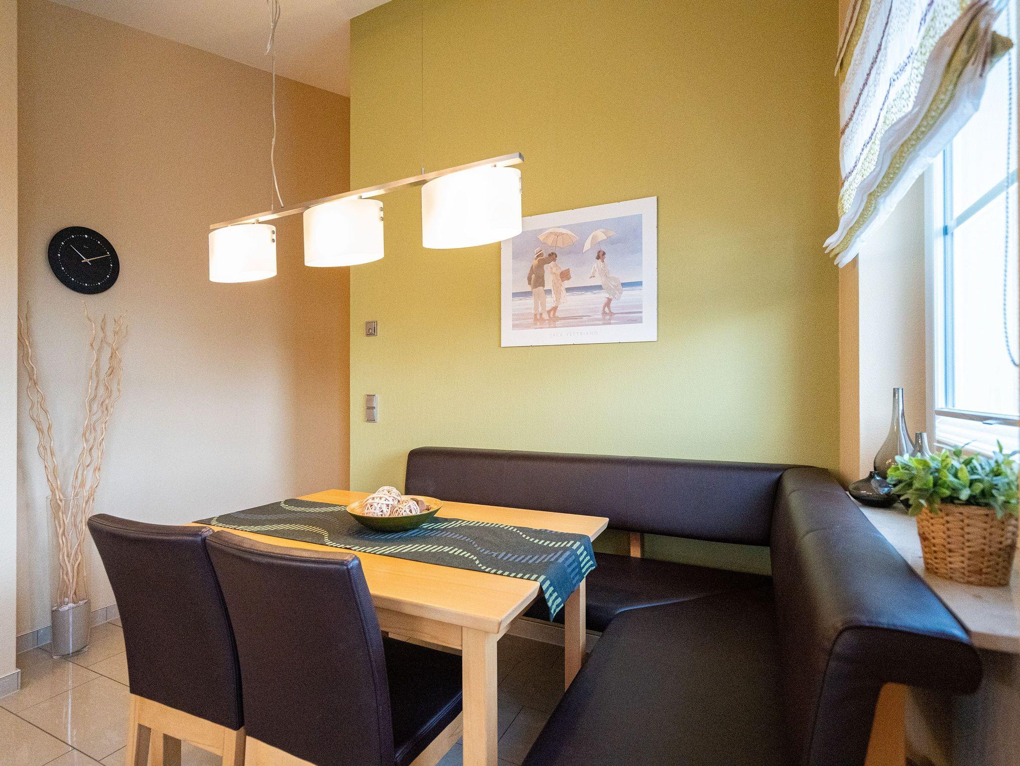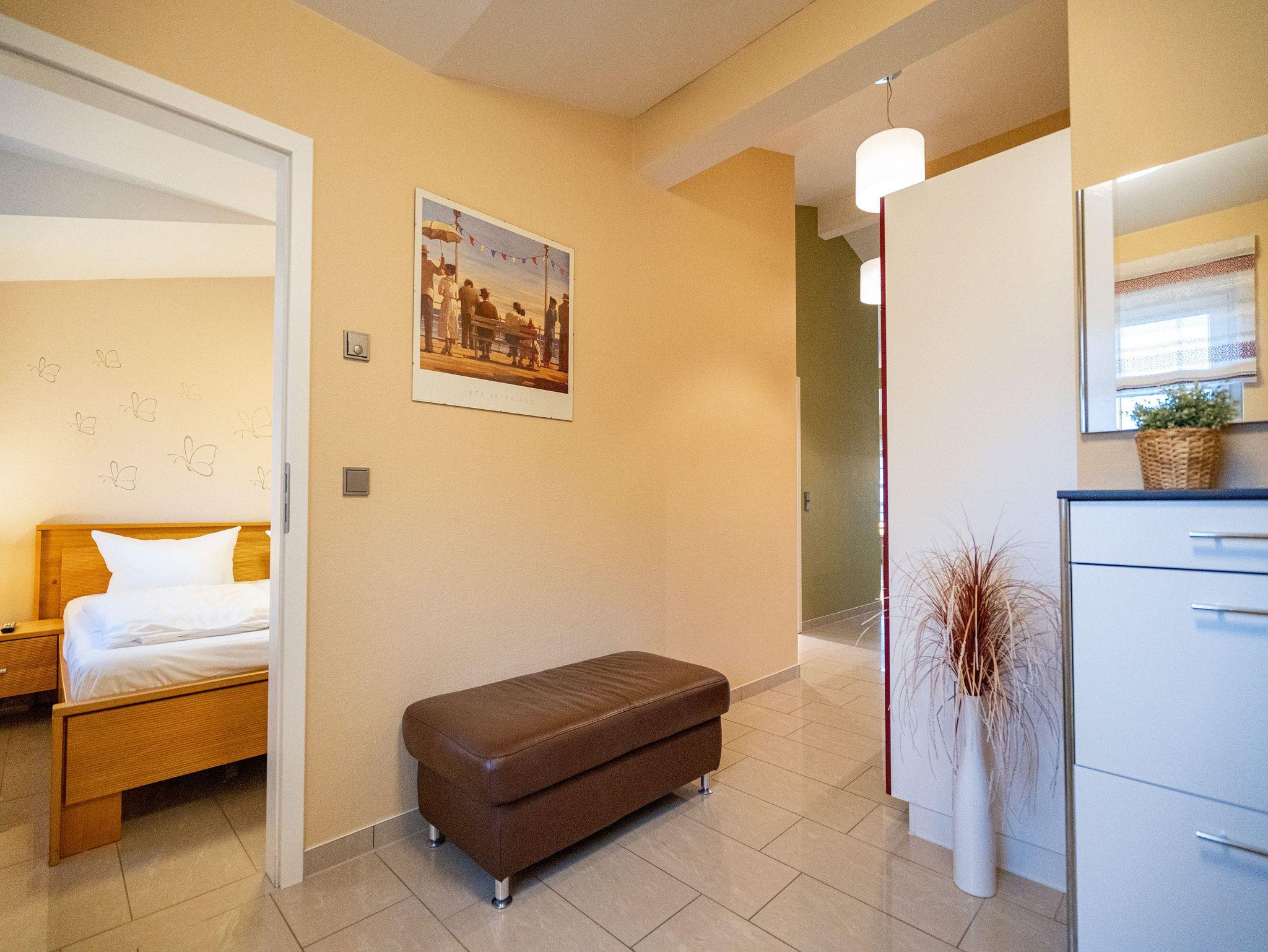 Wohnen mit Meerblick ? dieses 50?qm große Appartement im Dachgeschoss bietet Platz für 2 Personen und punktet mit moderner Ausstattung und direktem Ostseeblick. Die helle 2-Zimmer-Wohnung verfügt über einen Wohn-Essbereich mit einer Sitzgruppe inklusive Schlaffunktion (als Ausweichmöglichkeit nutzbar) sowie einem 43-Zoll Flat-TV mit Smart-TV. Eine Essecke und der Nordost-Balkon (2,5?qm) mit freiem Blick auf das Meer machen diesen Bereich besonders attraktiv. Die voll ausgestattete Küche bietet Herd, Backofen, Spülmaschine, Kühlschrank mit Gefrierfach, Mikrowelle und verschiedene Kleinküchengeräte ? ideal für Selbstversorger. Im separaten Schlafzimmer sorgt ein Doppelbett (1,80?m x 2,00?m) für erholsamen Schlaf. Ein zusätzlicher Flat-TV sowie ausreichend Stauraum für Ihre Garderobe stehen ebenfalls zur Verfügung. Das Bad ist mit Dusche, Waschtisch, WC und Fön ausgestattet. Zum Appartement gehört der Tiefgaragenstellplatz Nr. W12. Fahrräder können Sie am Fahrradständer am Haus abstellen. WLAN ist kostenfrei nutzbar. Bei Ihrer Anreise sind die Betten bezogen und Handtücher liegen bereit. Als besonderes Extra steht Ihnen von Mitte Mai bis September (je nach Witterung) ein Strandkorb am Strand kostenlos zur Verfügung.