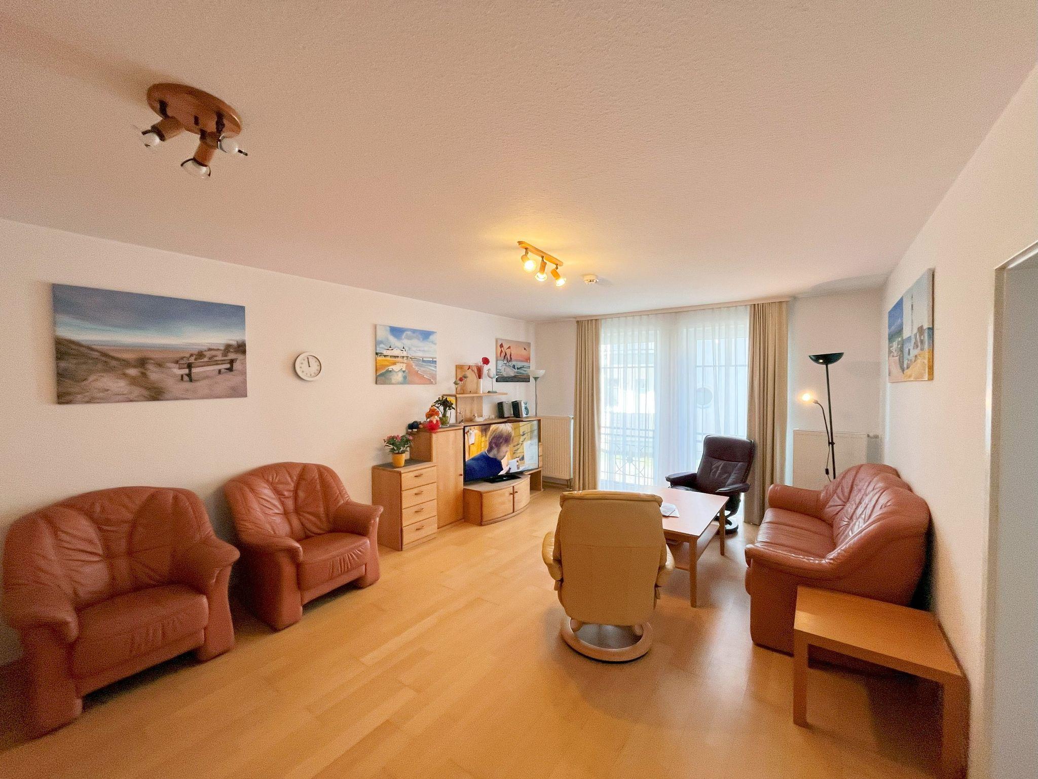 Herzlich willkommen in dieser charmanten Nichtraucher-Wohnung! Mit einer großzügigen Fläche von 66 qm bietet sie Ihnen ein helles und freundliches Ambiente, ideal für entspannte Tage. Im gemütlichen Wohnzimmer finden Sie ein praktisches Schrankbett, eine einladende Couchecke und einen Flachbild-TV, perfekt für gesellige Abende. Die separate Küche ist bestens ausgestattet mit einem Herd, Backofen, Spülmaschine, Mikrowelle, Kaffeemaschine, Wasserkocher und Toaster - hier wird das Kochen zum Vergnügen! Der große Esstisch mit Stühlen lädt zu gemeinsamen Mahlzeiten ein. Im Schlafzimmer erwartet Sie ein komfortables Doppelbett, Kleiderschrank und ein weiterer TV für entspannte Nächte. Das Tageslicht-Bad verfügt über eine ebenerdige Dusche und ein WC, sodass Sie sich rundum wohlfühlen können. Zusätzlich steht Ihnen ein separater Abstellraum zur Verfügung und die möblierte Terrasse zur Süd-Südwestseite, die von der Küche aus begehbar ist, lädt zum Verweilen im Freien ein. Ihr Auto können Sie kostenfrei direkt vor dem Haus parken und auch Ihre Fahrräder finden in einem separaten Abstellraum Platz. Und das Beste: Ihr kleiner Vierbeiner (bis 30 cm Schulterhöhe) ist herzlich willkommen! Eine kleine Gebühr fällt hierfür an. Selbstverständlich steht Ihnen das W-LAN Netz kostenfrei zur Verfügung.