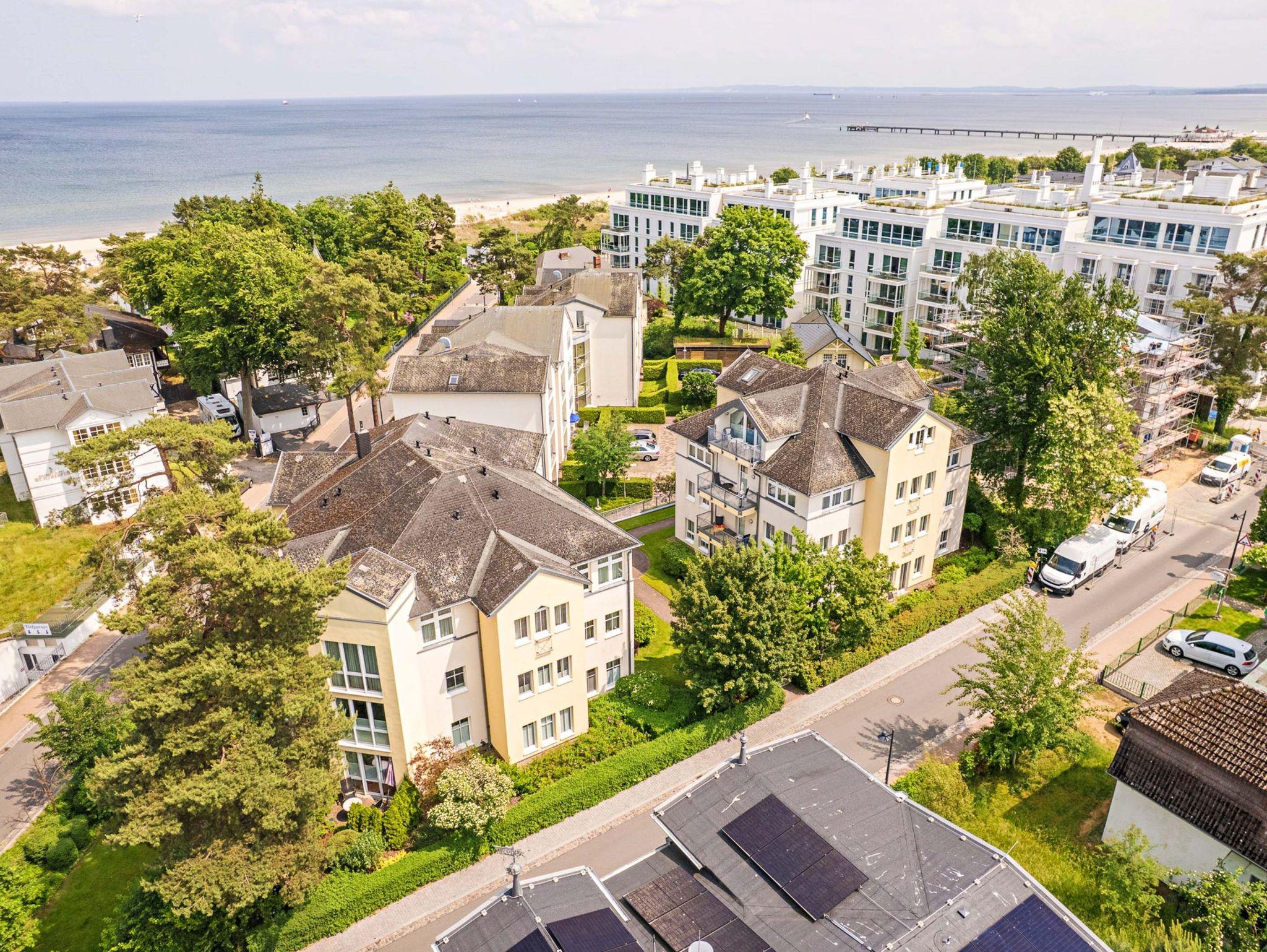 Ruhig in einer kleinen Stichstrasse nur für Anlieger gelegen und dennoch zentral zwischen den beiden Seebrücken Heringsdorf (15 Gehminuten) und Ahlbeck (10 Gehminuten), befindet sich auch das kleine Stadtzentrum von Ahlbeck mit diversen Einkaufsmöglichkeiten von Lebensmittelgeschäften bis zu exklusiven Boutiquen in unmittelbarer Nähe (10 Gehminuten).