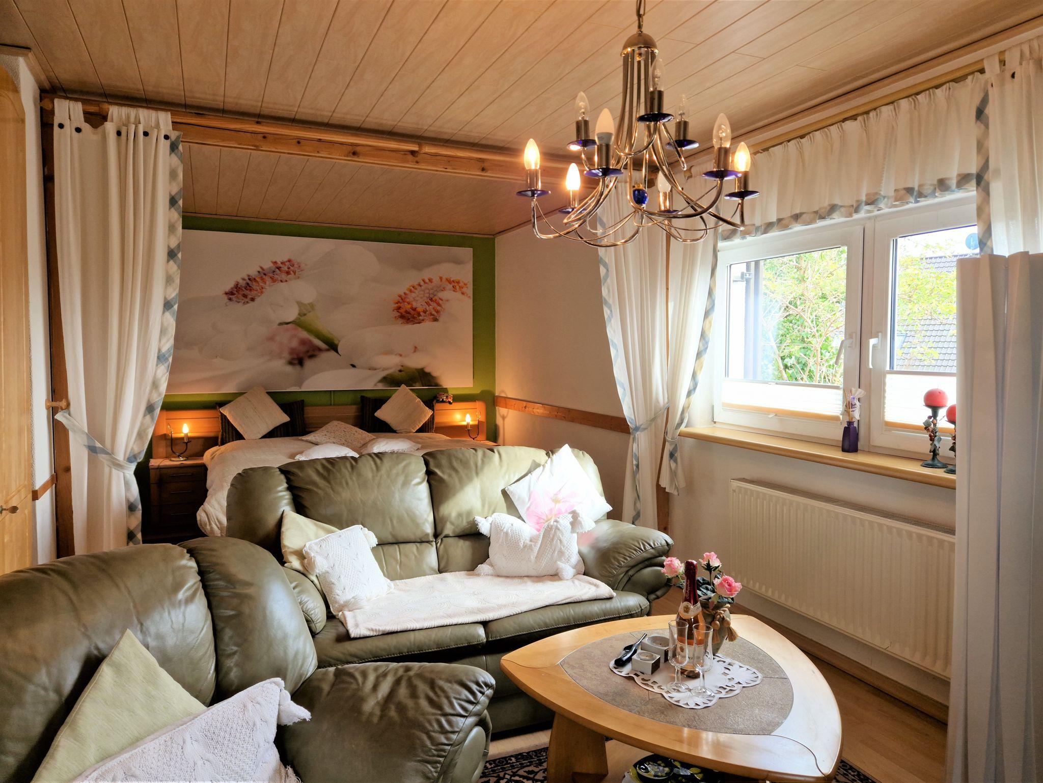 Im Ferienhaus Apfelblüte können bis zu 3 Personen nächtigen. Hier finden Sie ein separates Schlafzimmer mit einem Doppelbett wie auch einem Einzelbett vor. Die Küche ist auch hier geschmackvoll mit allem notwendigen ausgestattet. Das Bad verfügt über Dusche und WC. Das Wohnzimmer lädt zum Entspannen ein. Es ist mit einem Flachbild-TV, Satellitenempfang und WLAN ausgestattet.