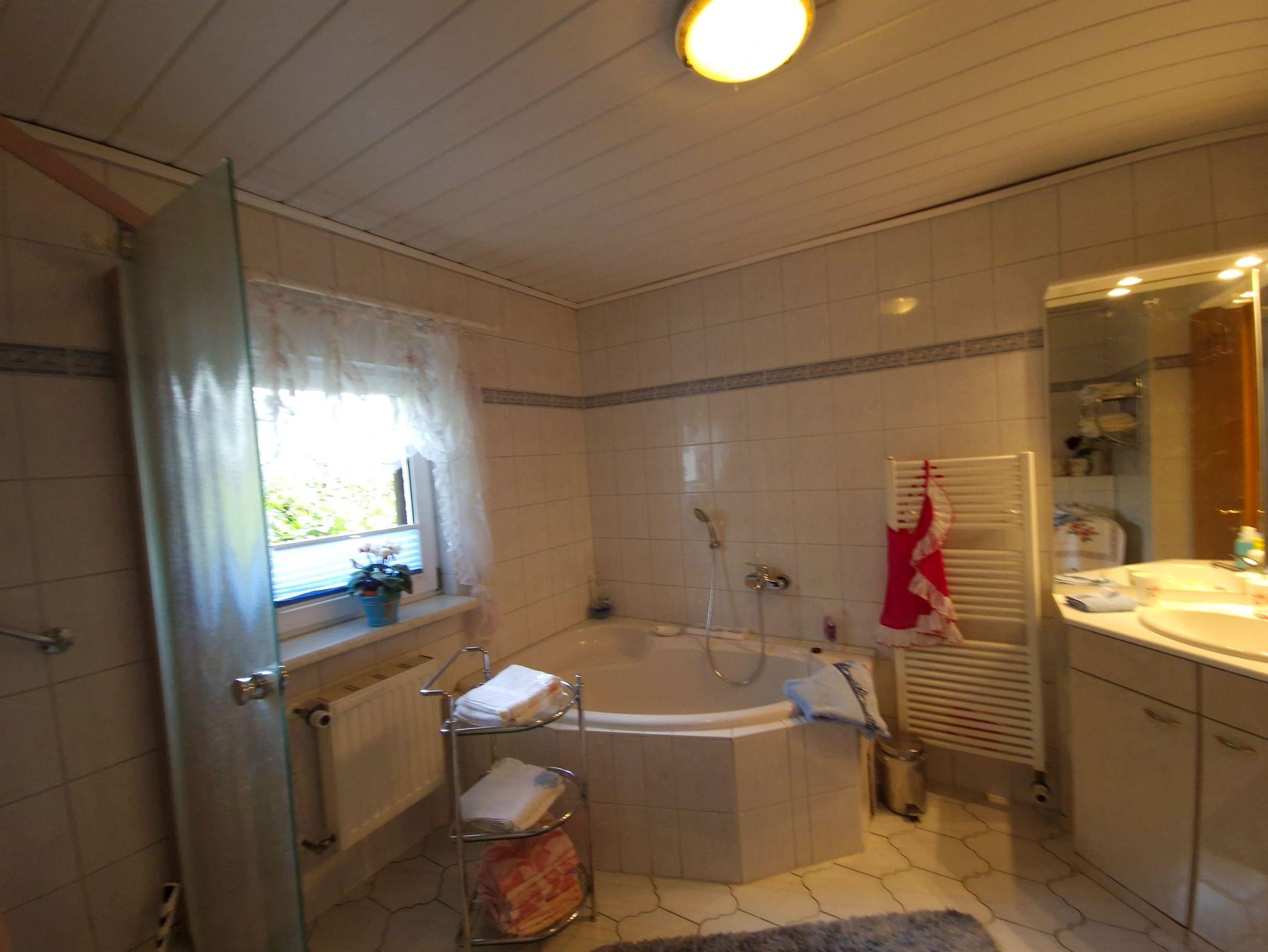 Die Ferienwohnung Veilchen, für 2 Erw. und 2 Kinder, hat eine Größe von 60 qm und verfügt über zwei separate Schlafzimmer, eine gut ausgestattete Küche, ein geräumiges Bad wie auch ein gemütlich eingerichtetes Wohnzimmer. Die Ferienwohnung befindet sich im Souterrain des Haupthauses und ist dadurch angenehm während der heißen Monate des Jahres. Sie ist über eine Treppe auf der Rückseite des Haupthauses zu erreichen.
