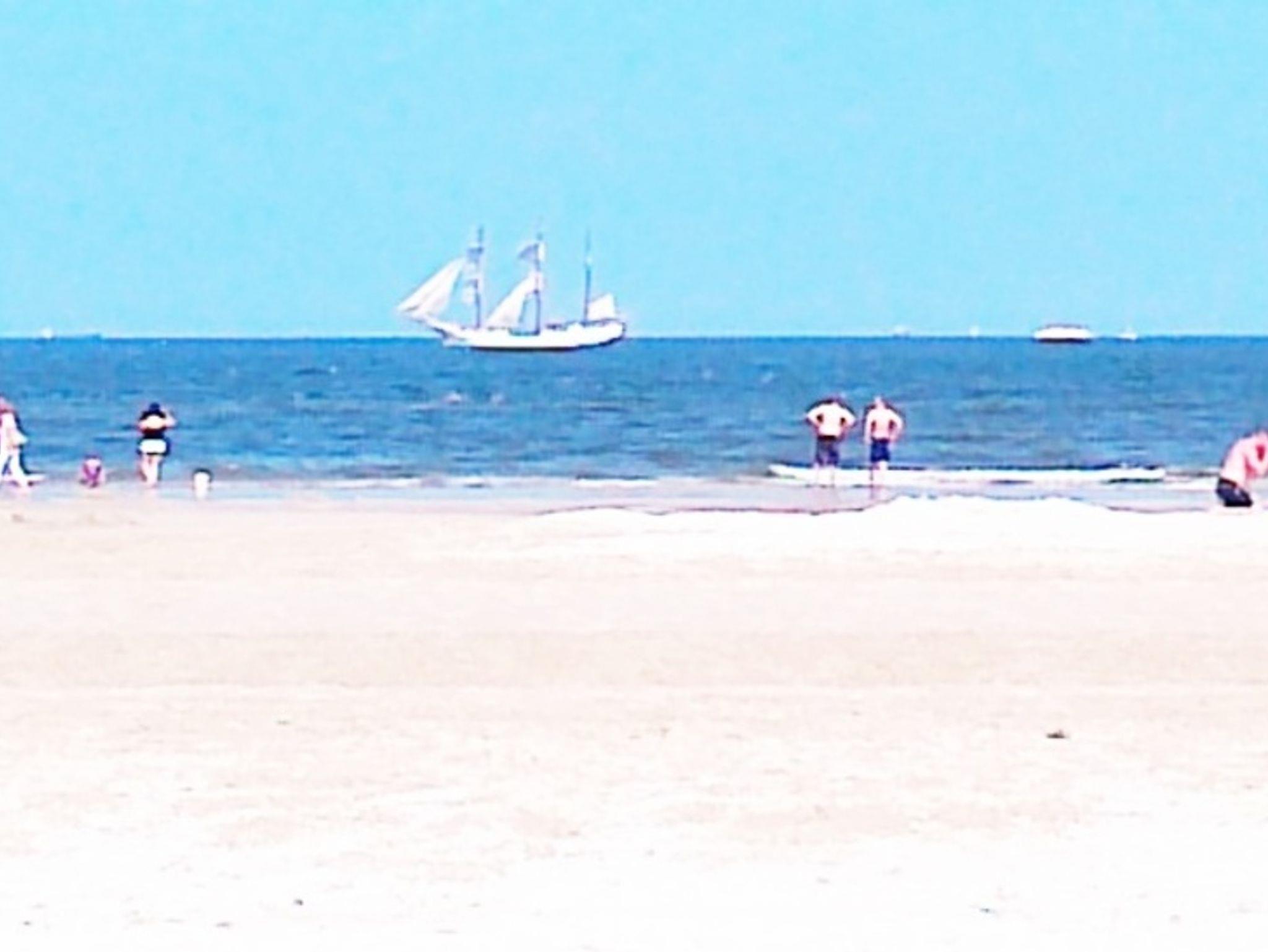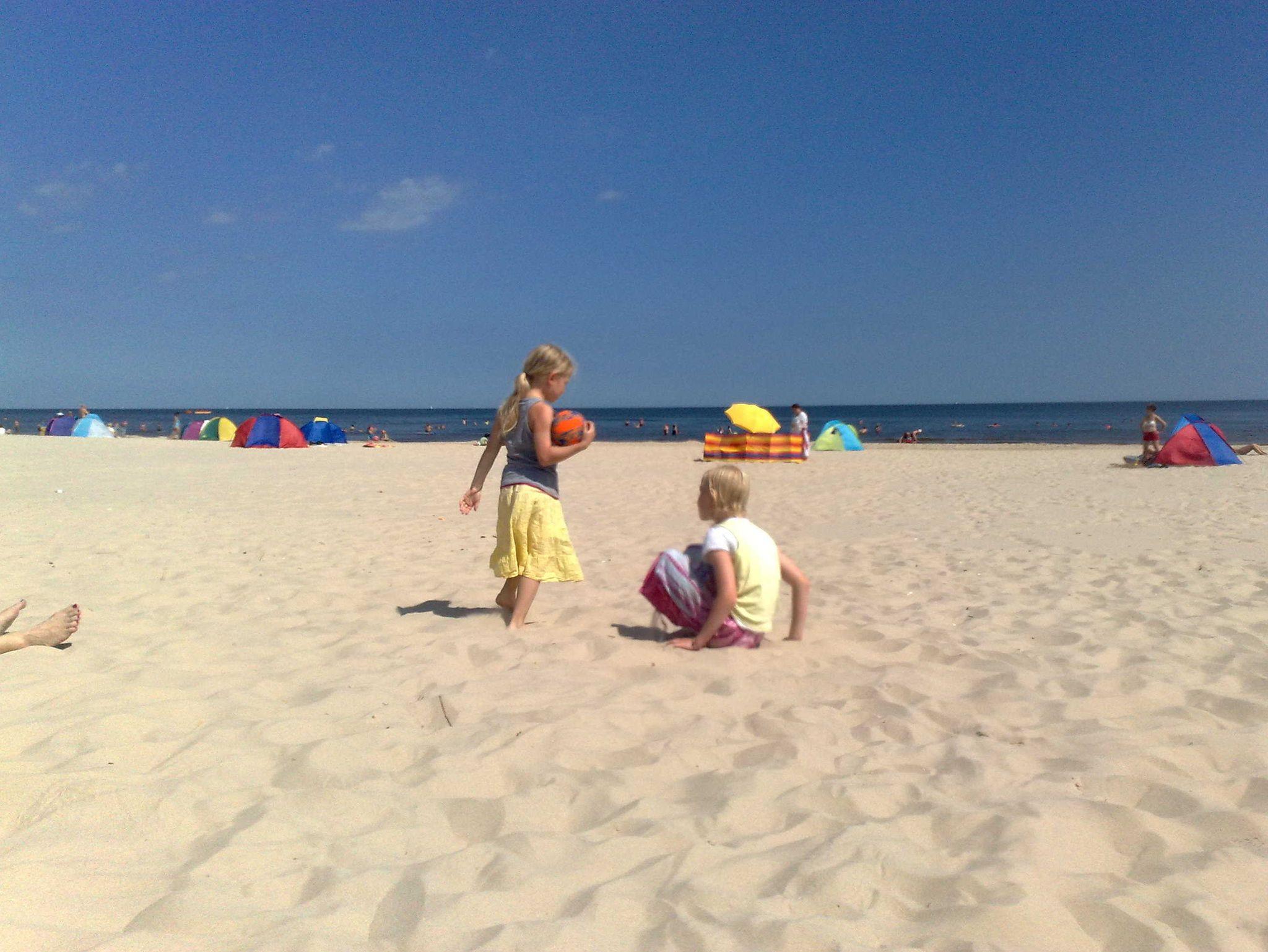 Der Strandabgang mit Spielplatz befindet sich in den Dünen direkt vor dem Haus. Der flach abfallende feinsandige Badestrand ist im Sommer bewacht, Strandkörbe werden dann angeboten.
