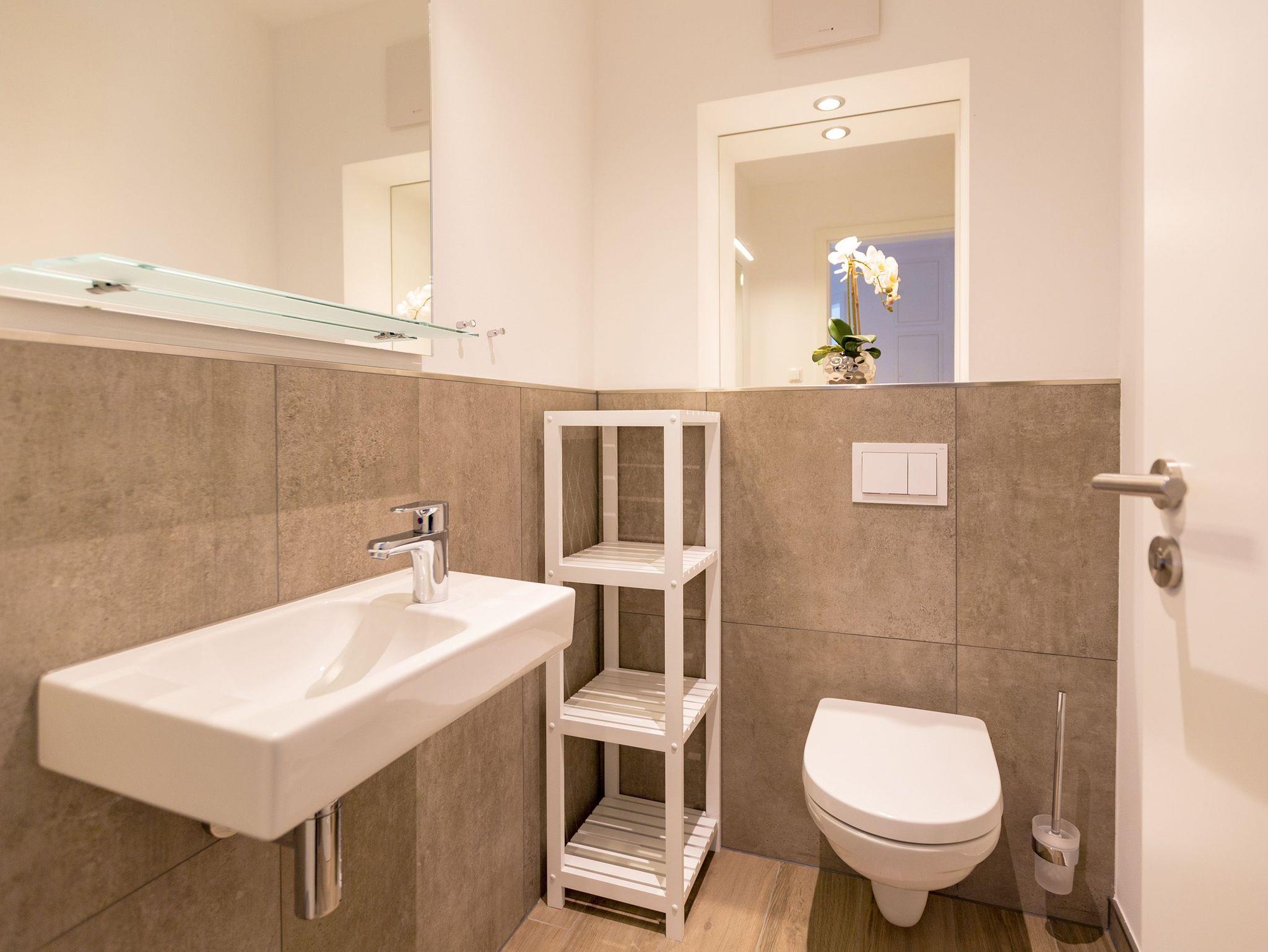 Drei Balkone ? mehr geht nicht an frischer Ostseeluft. Die liegt unmittelbar in Sichtweite. Dieses moderne und stylische Urlaubsparadies verwöhnt seine Gäste mit allem Komfort und macht den Urlaub zu einer exklusiven Ostsee-Auszeit. Meeresrauschen inklusive. Genießen Sie die Sonne und die frische Brise auf einem der Balkone (1 x 2,5 Quadratmeter Richtung Südost [&] 1 x 5,2 Quadratmeter Richtung Nord [&] 1 x 20,7 Quadratmeter Richtung Nordwest), die umlaufend miteinander verbunden sind. Relaxen Sie auf der bequemen Couch im großen, offenen und lichtdurchfluteten Wohnzimmer mit Essplatz und Highend-Küche. Hier bleiben keine Wünsche offen. Ein wunderschöner Gas-Kamin sorgt an kühlen Abenden für eine kuschelige Atmosphäre auf Knopfdruck. Der große Flat-TV ist ein echter Entertainer. In den Beetle-Ledersesseln fühlen Sie sich wie der Captain Ihres eigenen Raumschiffes. Sie bieten höchsten Sitzkomfort in Kombination mit anspruchsvollem Design. Die große Stehlampe aus Treibholz verleiht dem Appartement, in dem vier Personen und ein Kleinkind (im Kinderreisebett) wunderbar entspannen können, einen echt maritimen Charakter. Nordish by nature und ganz besonders elegant ist der schöne Essplatz mit Tisch und vier Stühlen. Die offene Küche hat viel Platz und ist mit allen nötigen Geräten und edlem Asa-Geschirr ausgestattet. Auf den 68 Quadratmetern befinden sich zwei gemütliche Schlafzimmer mit Boxspringdoppelbetten (1,80 m x 2,00 m) für höchsten Schlafkomfort, großen und geräumigen Schränken und jeweils einem Flat-TV. Lieben Sie das wunderbar entspannende Gefühl nach einer Sauna? Dann können Sie sich in dieser Wohnung auf Ihre eigene kleine Wellness-Oase freuen. Denn das Badezimmer wartet mit einer Finnischen Sauna auf. Erfrischen Sie sich anschließend unter der tropischen Regendusche. Im Bad gibt es außerdem einen Waschtisch und ein WC. Ein separates Gäste-WC geht vom Wohnungsflur ab. Alles, was stresst können Sie hier getrost draußen lassen. Darum haben wir für Sie die Betten bereits bei Anreise bezogen und Handtücher liegen bereit. Das WLAN ist kostenfrei. Am Haus gibt es einen überdachten (max. Höhe 2,10 m) Pkw-Stellplatz. Zur Wohnung gehört zudem ein eigener Fahrradabstellraum.