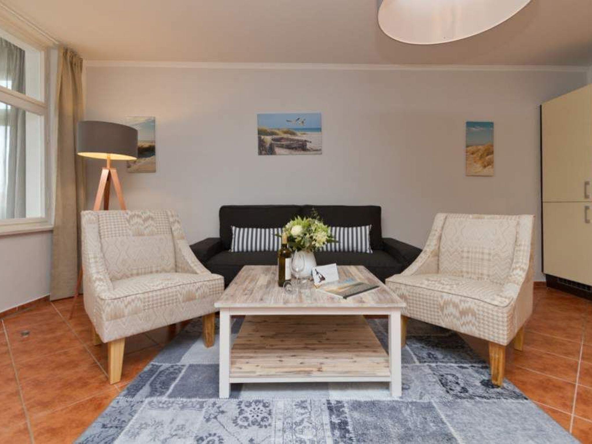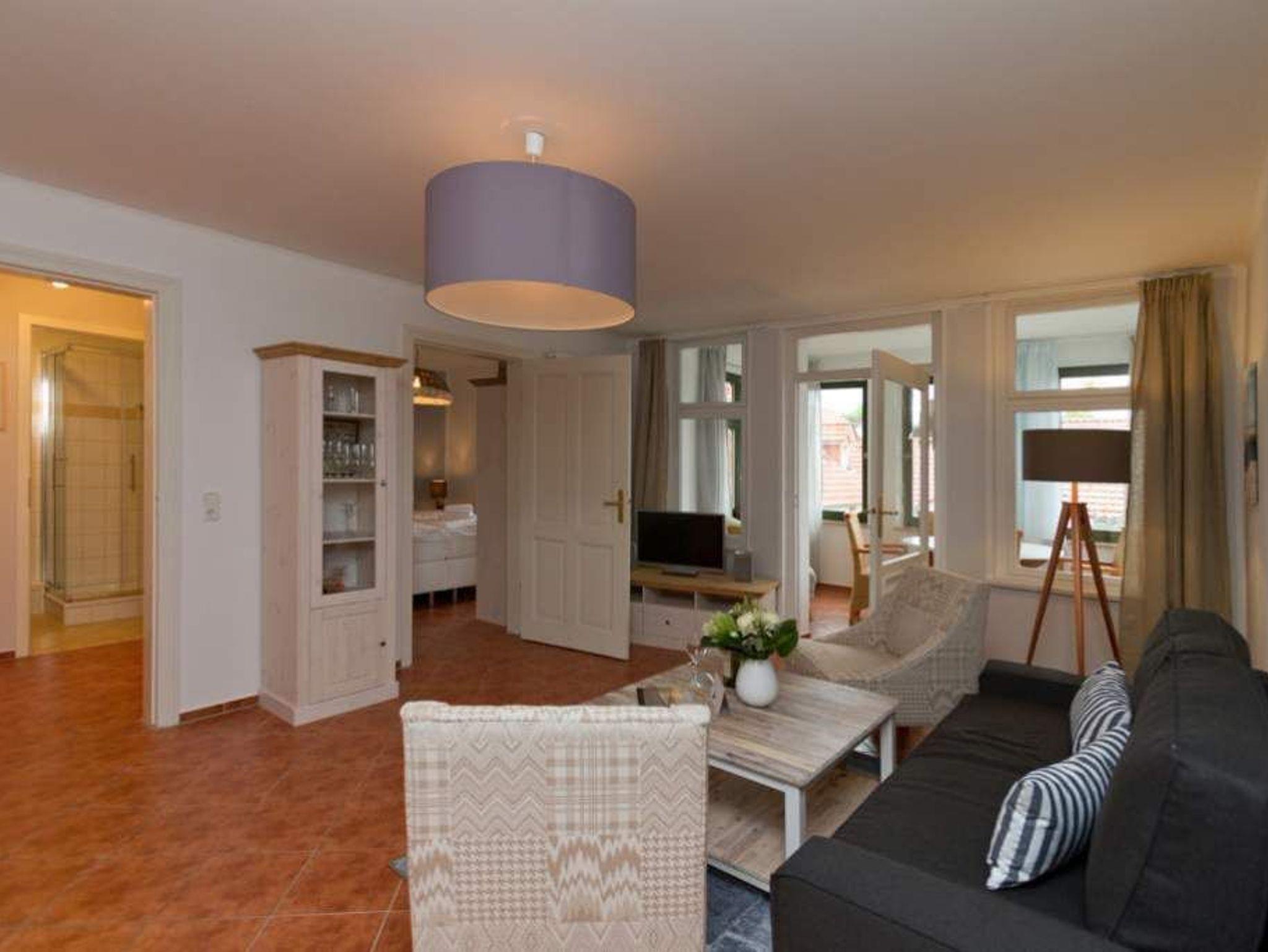 Die helle freundliche 2-Raum-Ferienwohnung (47 qm) befindet sich im 2. Obergeschoss der Villa Goodewind und ist ein ideales Ziel wenn man Ruhe und Erholung sucht. Das Appartement verfügt über ein Wohnzimmer mit Schlafcouch ( als Aufbettung für die 3. Person nutzbar) [&] Flat-TV sowie eine voll ausgestattete Küchenzeile. In der verglasten Veranda mit seitlichem Meerblick lässt es sich gemütlich frühstücken. Das schöne Schlafzimmer ist mit einem Doppelboxspringbett (1,80m x 2,00m) [&] Flat-TV ausgestattet. Das Bad mit Dusche [&] WC verfügt über eine Fußbodenheizung. Ein PKW-Stellplatz befindet sich auf dem Hof.
