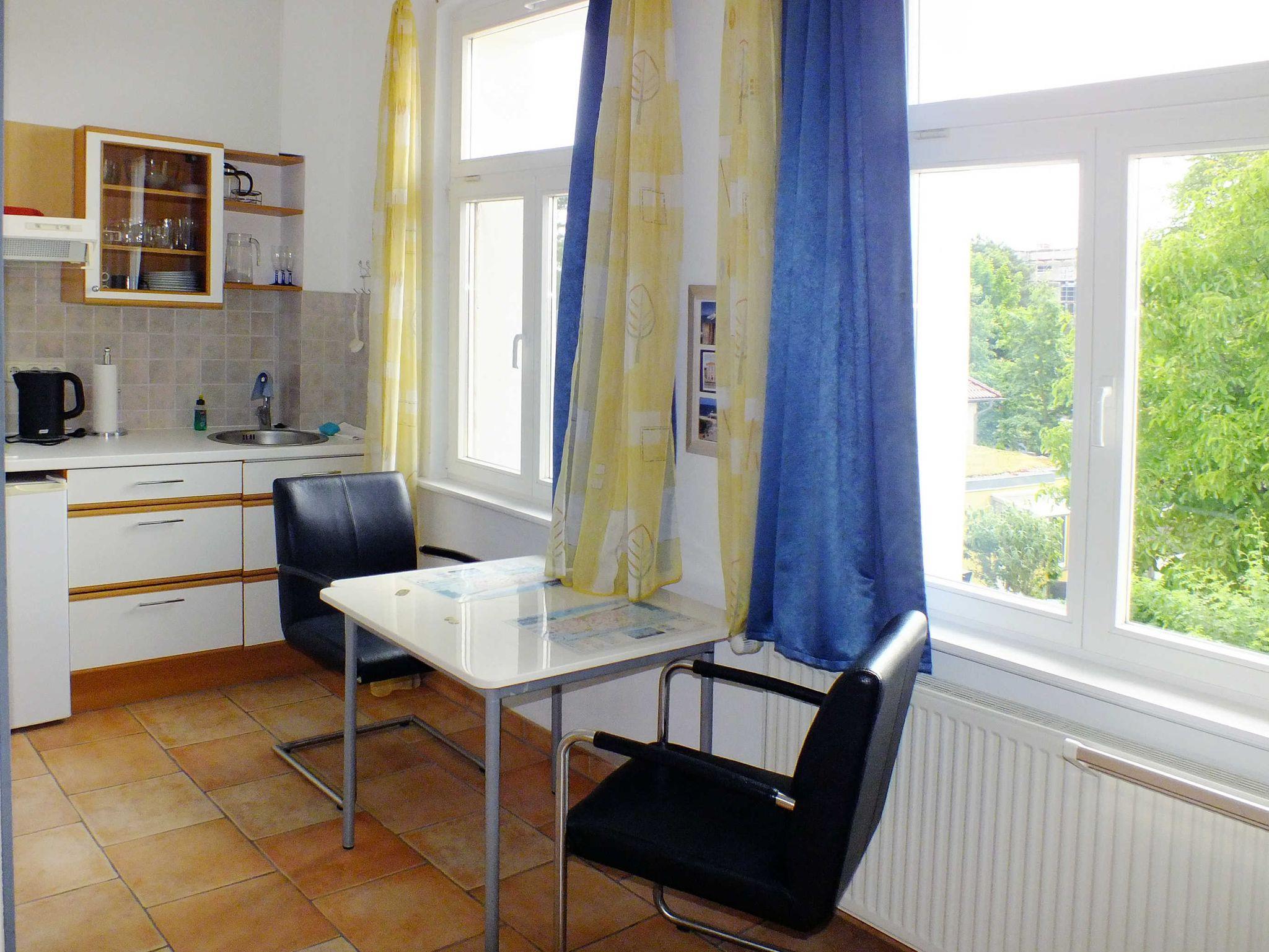 Bitte beachten Sie, dass alle Wohnungen Nichtraucher-Wohnungen sind. Das Rauchen ist ausschließlich außerhalb des Hauses möglich. Auf der Hofseite befinden sich eine Gemeinschaftsterrasse mit Tischen und Liegestühlen sowie eine kleine Grünfläche mit einer Schaukel und Sandkasten für die kleinen Gäste. Auf Anfrage sind Kinderbett und Kinderhochstuhl, in eingeschränkter Anzahl, kostenlos vorhanden.