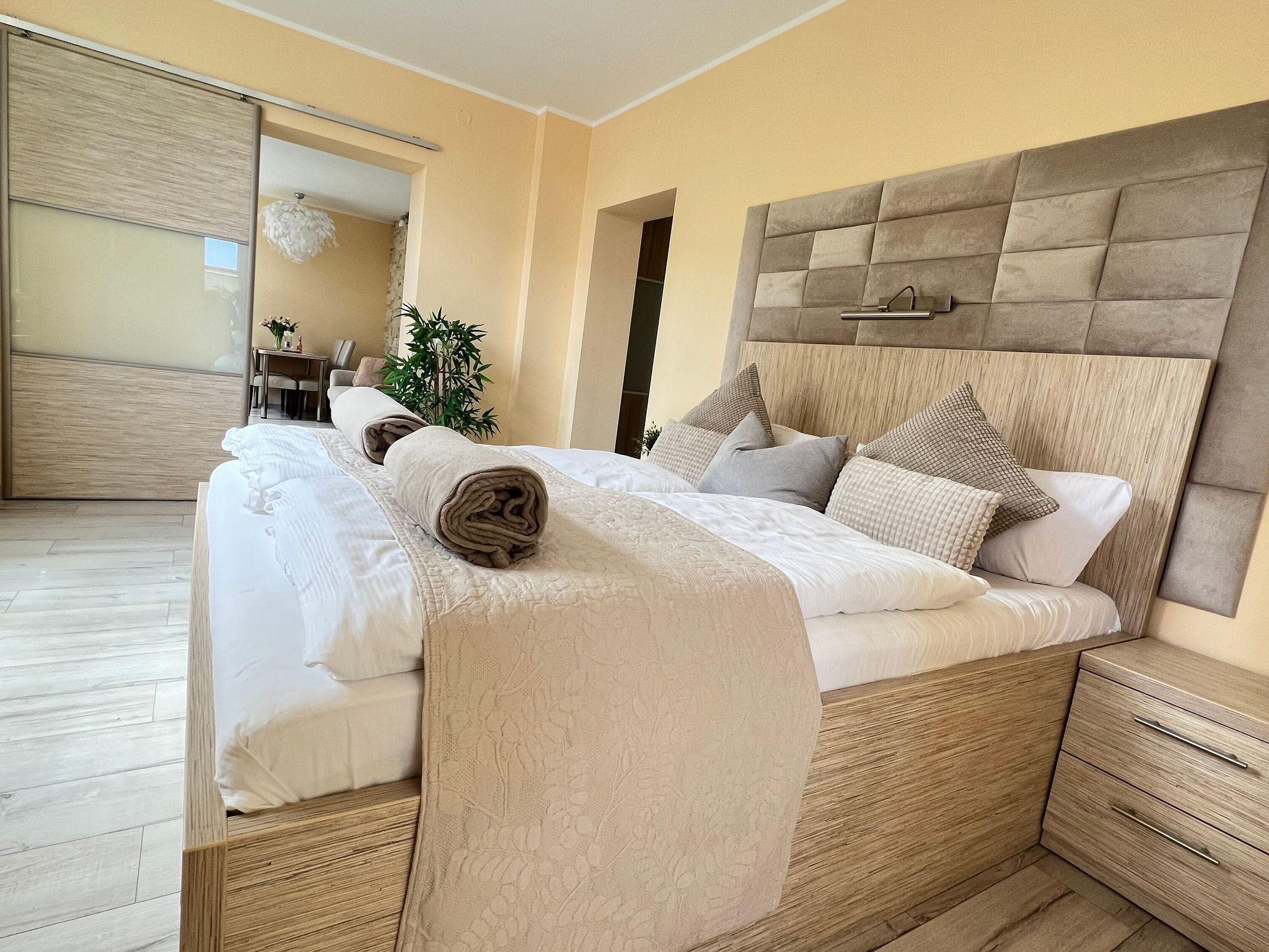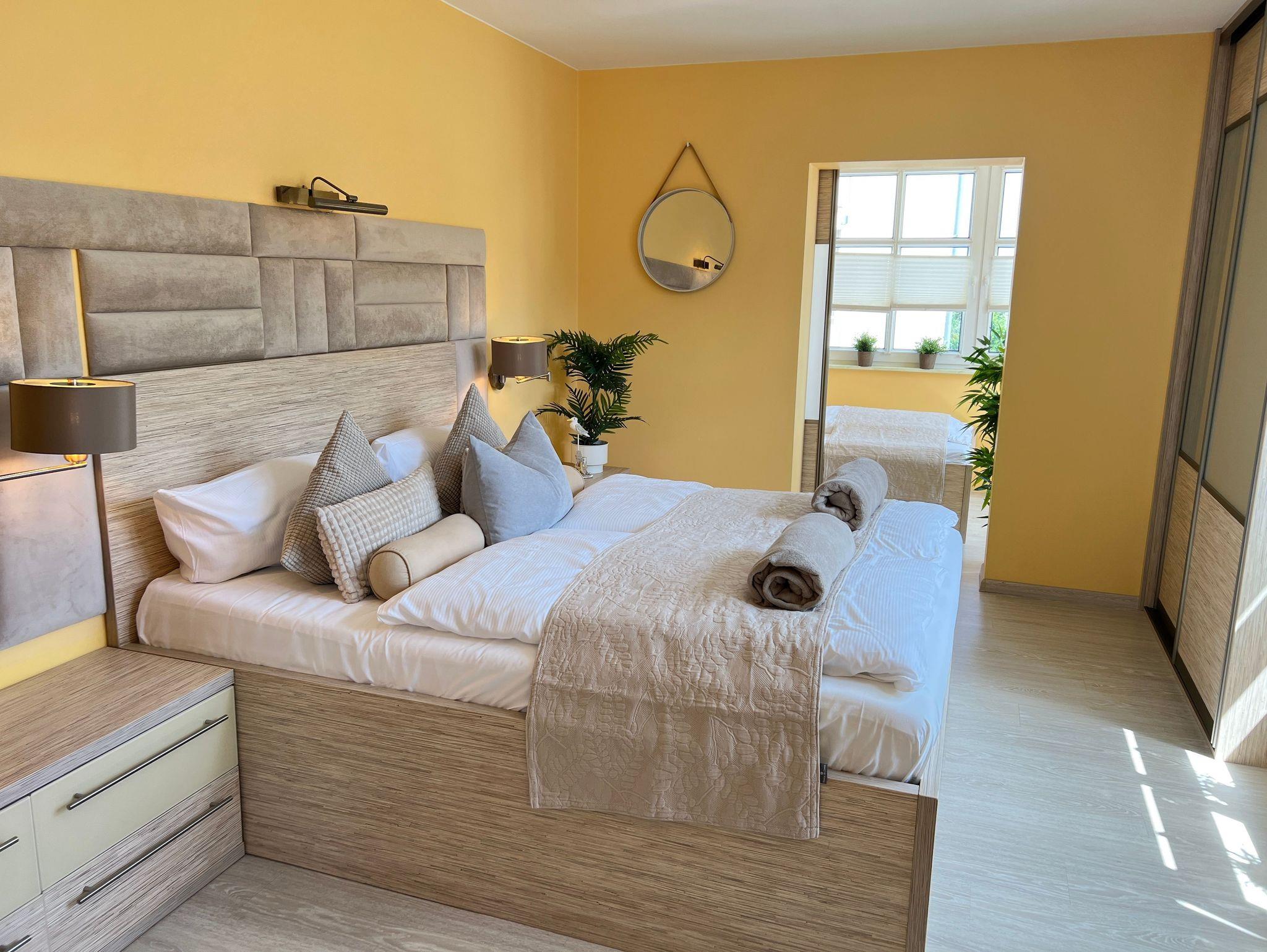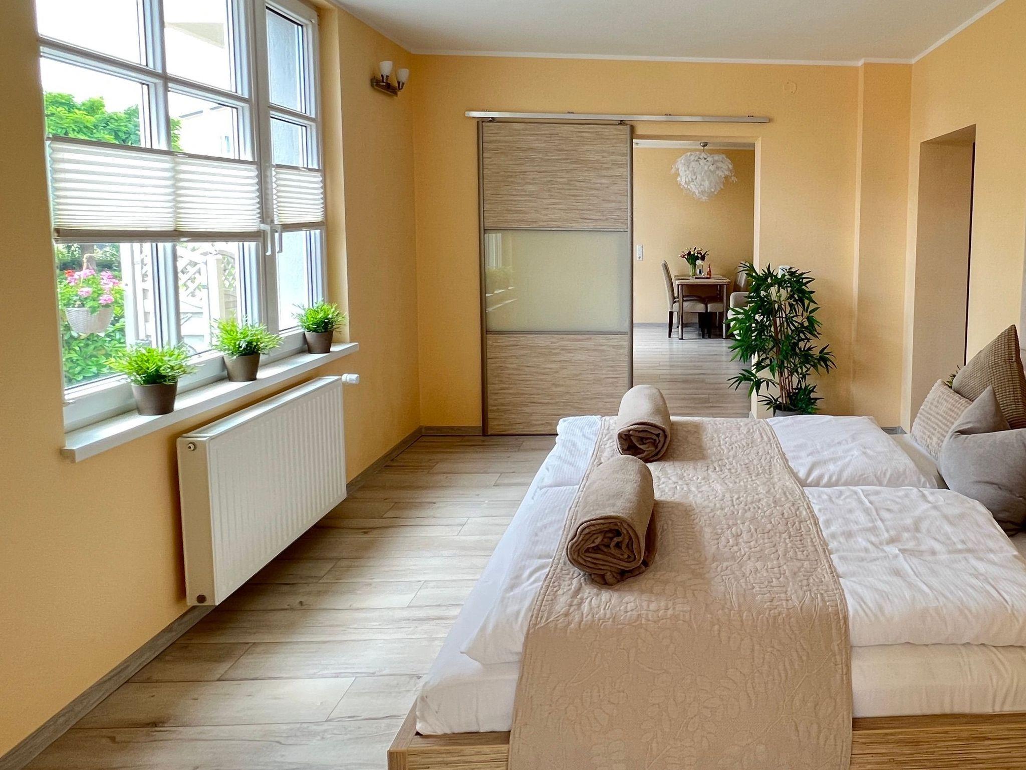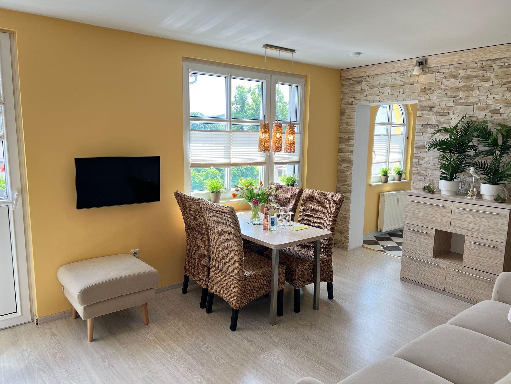 Die nur 80 Meter vom Strand entfernte Obergeschosswohnung mit Meerblick ist wundervoll lichtdurchflutet. Selbst ein kleiner Balkon lädt Sie zum Frühstücken oder auf ein Glas Wein abends ein. Viele Fenster mit speziell beschichteten Plissees sorgen für ein individuelles Raumklima. Ein großzügiger Schlafraum sowie ein zweites, separates Schlafzimmer dienen Familien mit ausreichend Platz. Zwei groß, extrahohe Betten (160cm und 140cm) und ein separater Wohnraum mit einem farblich abgestimmten Sofa lassen Ihrer Ruhe keine Wünsche offen. Eine moderne, grundausgestattete Einbauküche, LED-SMART-TV, HiFi-Anlage und Internetzugang lassen Sie bei uns alle Sorgen vergessen. Ihr Appartement ist so wohl Allergiker wie Nichtraucher freundlich. Weiße, kräftige Baumwollbettwäsche und weiche Handtücher werden Ihnen schmeicheln. Geschirrtücher und Duschvorleger sind vorhanden. Interessant für junge Familien sind die Unterbringungsmöglichkeiten mitgebrachten Eigentums (entweder im Haus Ihres Appartements Parterre oder im Fahrradschuppen). Auf dem Hof finden Sie Wäscheständer für Ihre nasse Wäsche. Ihrem Fahrzeug ist ein Parkplatz direkt am Ferienhaus reserviert. Für eventuell benötigte Hochstühle oder Kinderreisebetten entstehen Ihnen nach Rücksprache keine zusätzlichen Kosten. Bitte informieren Sie uns über Ihre Wünsche rechtzeitig.