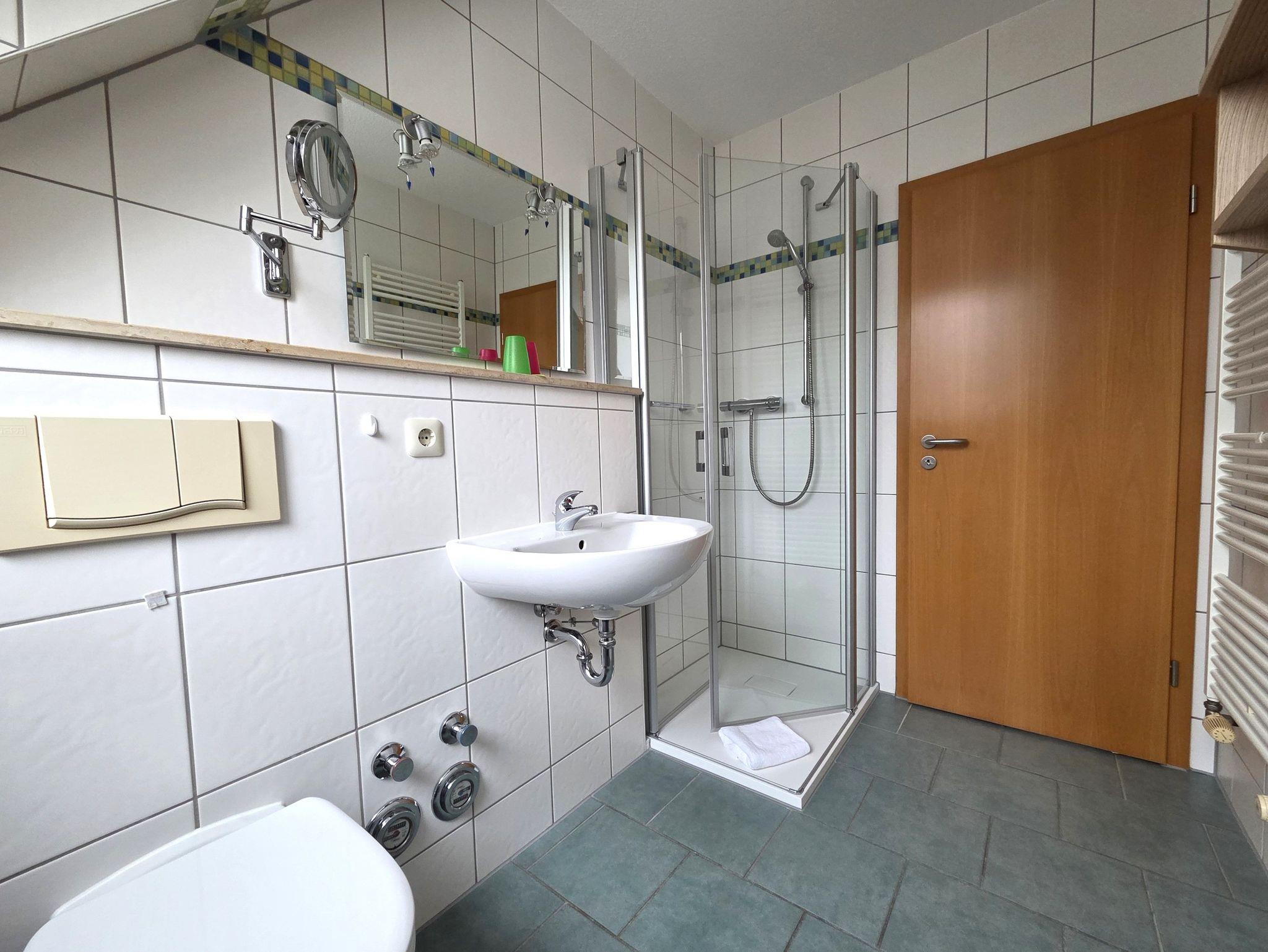 Die Ferienwohnung ?Delia? befindet sich im 2. Obergeschoss mit Blick in den Garten und ist ca. 72m² groß. Im gemütlichen Wohnbereich befinden sich neben der Couch und dem Flachbildfernseher auch die offene Küchenzeile mit Backofen, Herd, Kühl-/Gefrierschrank, Mikrowelle, Kaffeemaschine, Toaster, Wasser- und Eierkocher, sowie der Essbereich. Vom Wohnzimmer aus erreichen Sie den möblierten Balkon. Im Schlafzimmer befinden sich ein Doppelbett und ein Kleiderschrank mit Tresor für Ihre Wertsachen. Über eine Raumspartreppe erreichen Sie das 2. Schlafzimmer mit Doppelbett, einem Kleiderschrank sowie einen kleinen Tisch mit 2 Stühlen. Das Badezimmer ist mit einer Dusche, einem Fön und einem Kosmetikspiegel ausgestattet, die Fußbodenheizung sorgt für angenehme Wärme. Die Erstausstattung Bettwäsche und Handtücher sind bereits im Preis enthalten. Die Ferienwohnung verfügt über Internetzugang via W-LAN ist kostenfrei nutzbar.