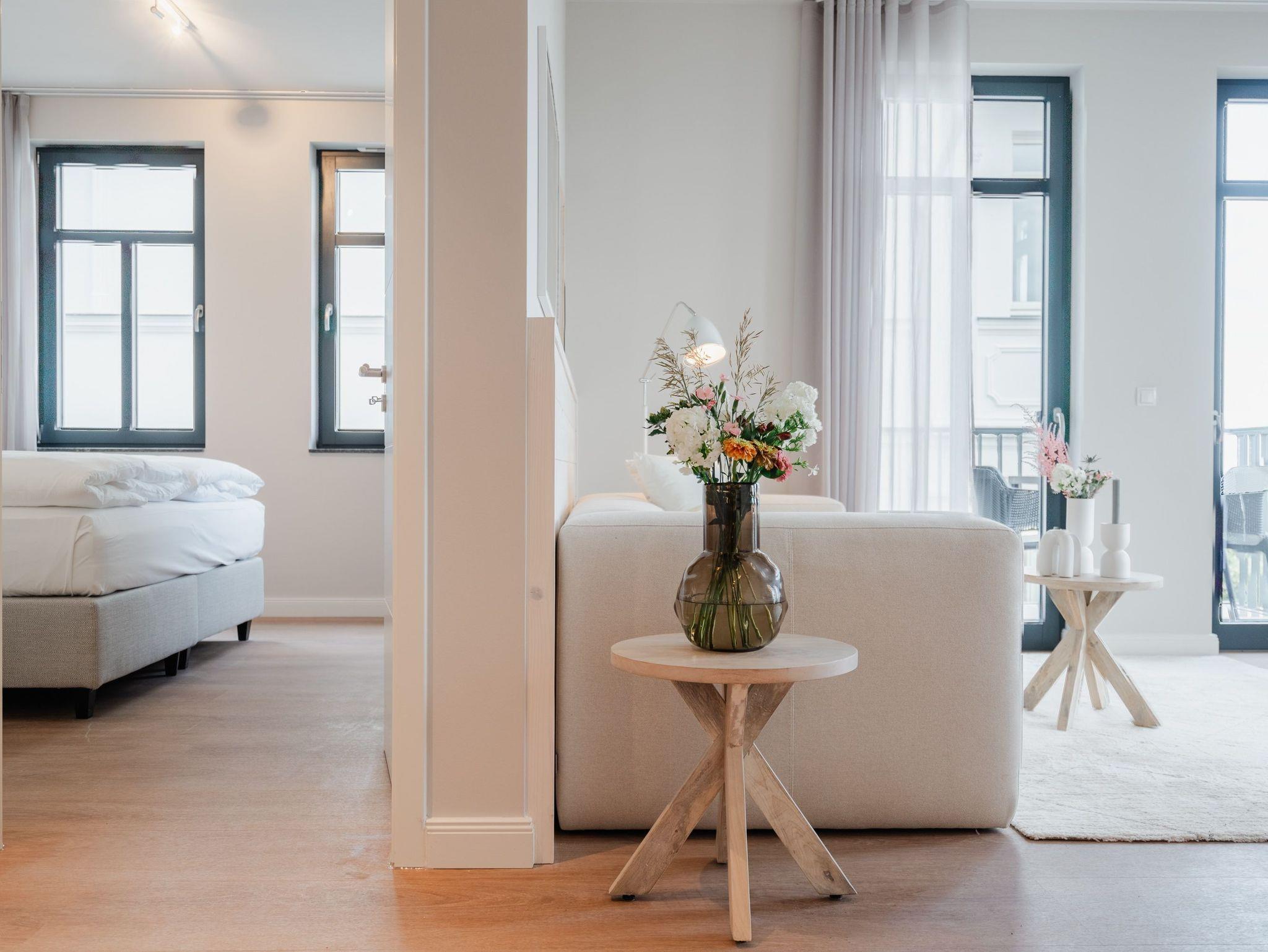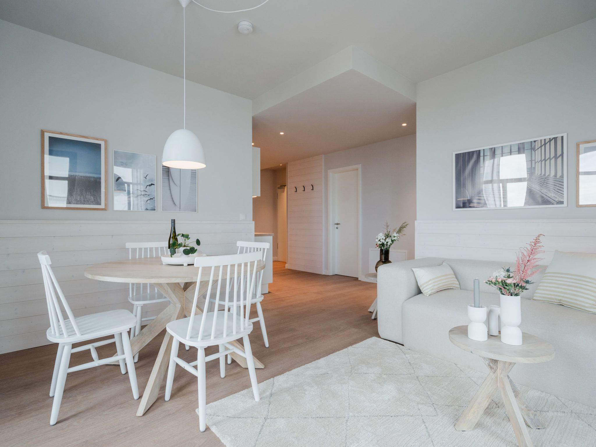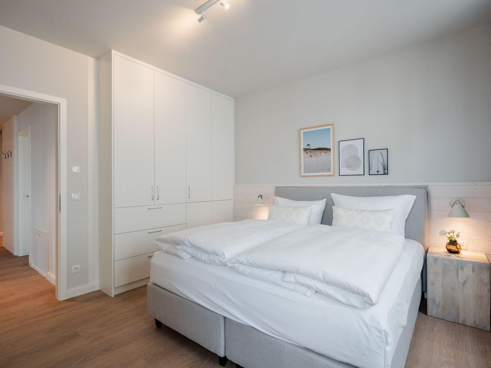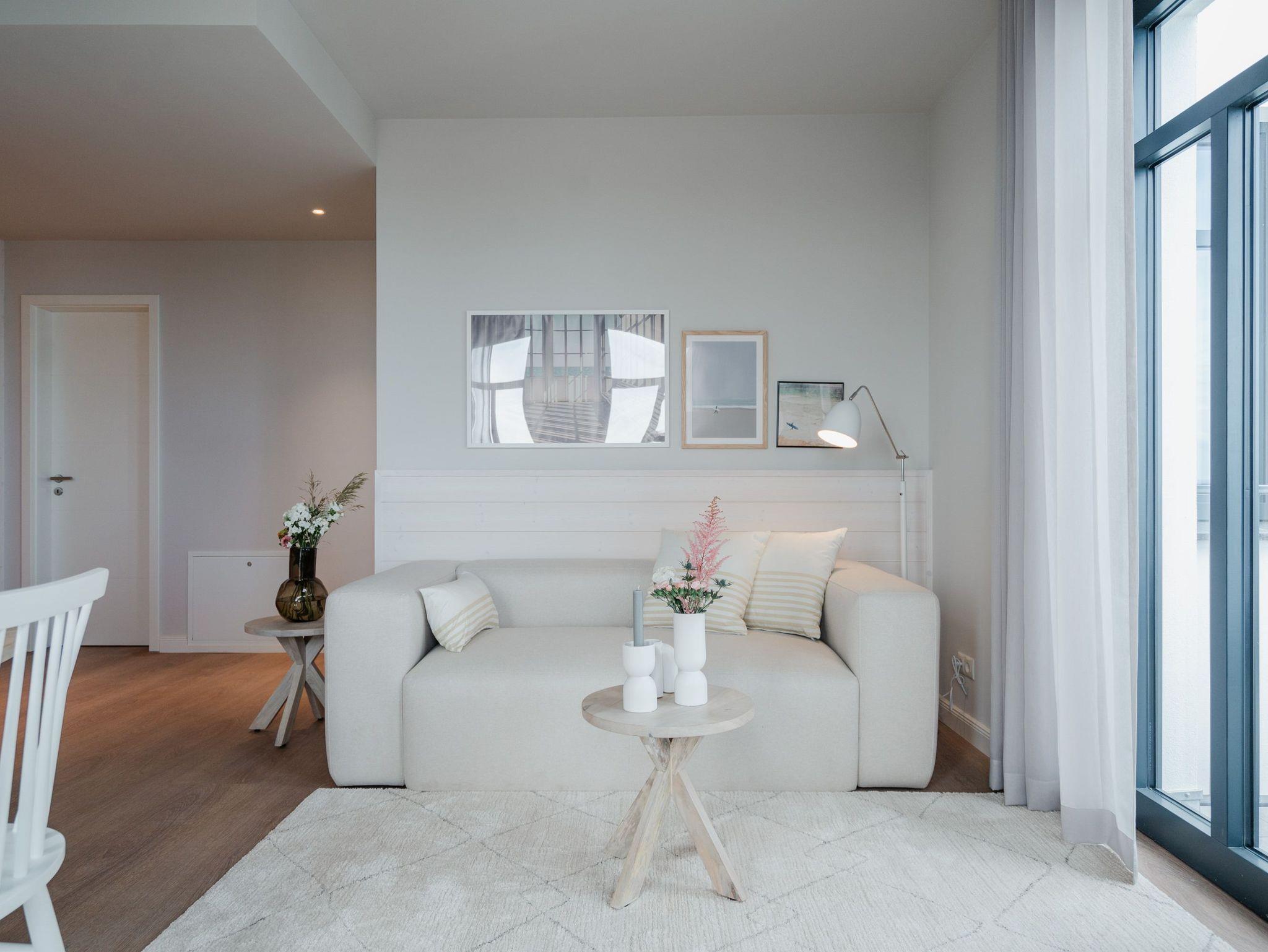 Willkommen in der Strandterrasse (Haus A) und in unserem wundervollen 2-Raum-Appartement A2.3 für zwei Personen im zweiten Obergeschoss. In diesem Appartement wird Ihr Urlaub zu einem ganz besonderen Auszeiterlebnis, denn mehr Meer geht nicht. Vis-à-vis der Ahlbecker Seebrücke können Sie sich aus den beiden Räumen dieses 57 Quadratmeter großen Appartements an der Ostsee gar nicht satt sehen. Ob morgens, wenn die Sonne aus der glitzernden Wasseroberfläche aufsteigt oder nachmittags mit Schäfchenwolken über dem endlosen Blau oder abends, wenn sich der Himmel rosarot einfärbt; ob bei Sonnenschein oder stürmischem Wellengang ? die Tage in dieser mit viel Liebe und einem Händchen für Farben und Formen eingerichteten Unterkunft werden unvergesslich schön. Neben dem Meerblick, den Sie gleich von zwei Balkonen aus (mit Ausrichtung Nord-Ost und Nord-West) genießen können, hat das Appartement eine wundervolle Einrichtung zu bieten, die mit allem erdenklichen Komfort aufwartet. Der offene Wohn- und Essbereich ist zur Seeseite hin ausgerichtet und bietet sowohl beim Essen als auch von der gemütlichen Couch aus, einen atemberaubenden Blick auf die Ahlbecker Seebrücke. Die voll ausgestattete Küchenzeile mit hochwertigen Siemens-Elektrogeräten, darunter ein Backofen, eine Spülmaschine und ein 3-Zonen-Induktionsherd, ist ein Garant für ein entspanntes Kochen. Der 50-Zoll-Flachbildfernseher ist internetfähig und bietet spannende Unterhaltung an kuscheligen Tagen und Abenden. Das Schlafzimmer ist mit einem komfortablen Boxspringdoppelbett (1,80m x 2,00m) und einem großen Kleiderschrank ausgestattet. Auch hier befindet sich ein 43-Zoll-Flachbildfernseher. Dusche, WC, Waschtisch und sogar eine Infrarotsauna zum Entspannen und Abschalten ? das innenliegende Bad ist Ihre ganz persönliche Wellnessoase. Ihr Auto können Sie auf dem zur Wohnung gehörenden PKW-Stellplatz in der Tiefgarage parken. So dass Sie nur noch anzukommen brauchen und der Urlaub mit Meerblick kann beginnen.