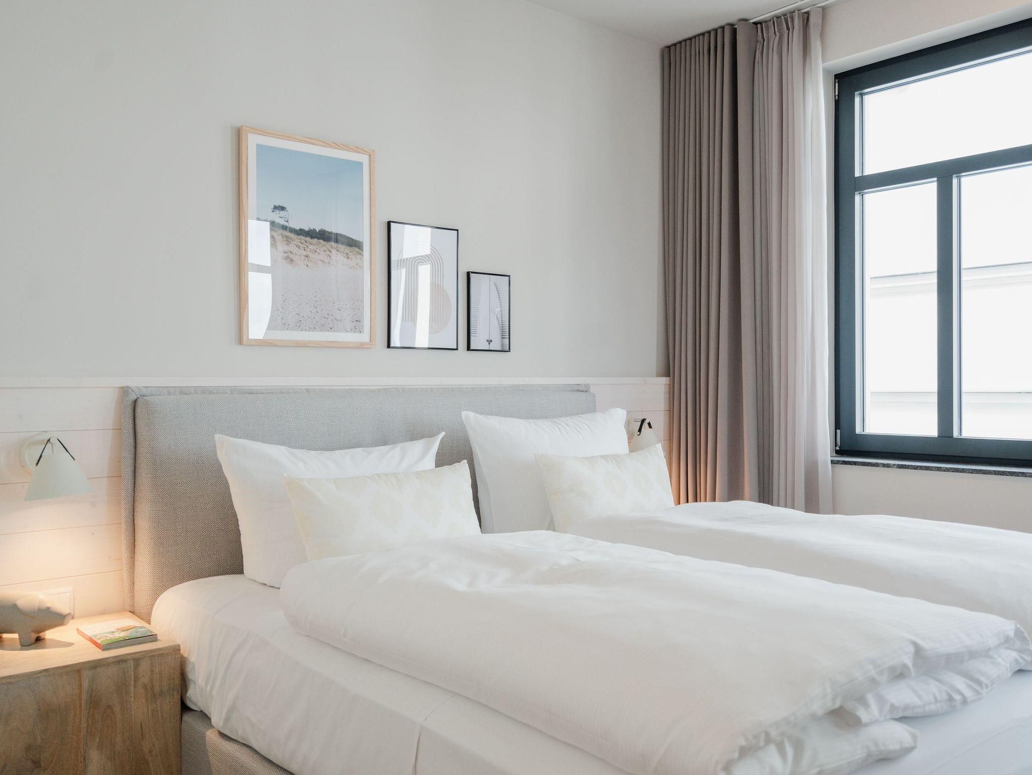 Die 2024 fertig gestellte Strandterrasse liegt direkt an der belebten Strandpromenade und bietet einen einzigartigen Ausblick auf die Grand Dame der historischen Seebrücken sowie die historische Konzertmuschel, einem beliebten Treffpunkt für Kunst und Kultur. Dahinter liegt die Ostsee ? ein Panorama, das zu den schönsten in den Kaiserbädern gehört. Es ist wie das Abtauchen in eine andere Zeit. In eine Zeit, in der man mit Stock, Sonnenschirm und Hut fürs „Sehen und gesehen werden“ über die Promenade schlenderte; aber auch in eine Zeit, in der ? damals wie heute ? Zeit einmal für eine kurze Weile keine Rolle spielt. Weil man angekommen ist im Loslassen, Entspannen und Genießen. Es ist dieser besondere Geruch nach Meeresluft und Freiheit, der in Erinnerung bleibt. Dazu die Bilder, die man mitnimmt. Von langen Strandspaziergängen, vom Lachen in fröhlich schäumenden Ostseewellen, von der Zeit in einem wunderschönen Urlaubsdomizil. Denn genau das ist die Strandterrasse mit ihren 56 modernen und exklusiven Ferienappartements direkt gegenüber der Ahlbecker Seebrücke. Die Ein-, Zwei- oder Dreizimmerwohnungen ? zwischen 40 und 70 Quadratmeter groß ? sind von einer Innenarchitektin gemeinsam mit unserem Erfahrungsschatz an Gästewünschen mit viel Liebe zum Detail und ganz individuell konzipiert worden. Entspannung und Wohlfühlen stehen an erster Stelle. Alles ist aufeinander abgestimmt und sorgt für eine gemütliche Atmosphäre. Wählen Sie zwischen einem Domizil in einem hellen, sandfarbenen Designkonzept oder einem Appartement mit anthrazitfarbenen Farbakzenten. Alle Appartements verfügen gleichermaßen über eine stilvolle und komfortable Einrichtung, die passgenau angefertigt worden ist, sowie über moderne Küchen und Bäder. Jedem Schlafzimmer ist ein eigenes Bad mit Dusche zugeordnet (außer App. B4.5). Die Appartements besitzen fast alle einen Balkon ? viele schauen sogar zur Ostsee hinaus. Die meisten Feriendomizile haben einen Elektrokamin und Infrarotsaunen. Im Erdgeschoss befindet sich ein separater Gemeinschaftsraum für Fahrräder. Außerdem besteht die Möglichkeit, im Gemeinschaftswaschraum 2 Waschmaschinen [&] Trockner zu nutzen. Ergänzt wird das Angebot durch eine Gemeinschaftssauna, die täglich von 11:00 bis 22:00 Uhr nutzbar ist. In der Tiefgarage (Einfahrtshöhe 2,03 Meter) steht für jede Wohnung 1 Pkw-Stellplatz zur Verfügung. Ist alles zur Zufriedenheit untergebracht? Dann kann der Urlaub ja beginnen. Und beim Blick vom Balkon über die Ostsee treffen sich zum Sonnenaufgang das Heute und das Damals. Gelassenheit legt sich beim Gang hinunter an den Strand auf die Seele. Jetzt darf die Zeit stehenbleiben.