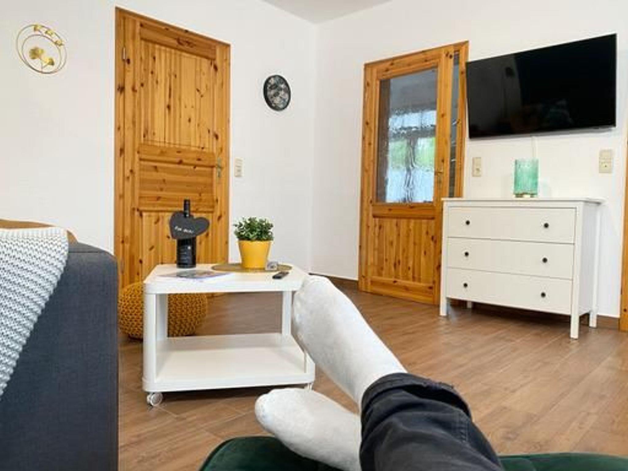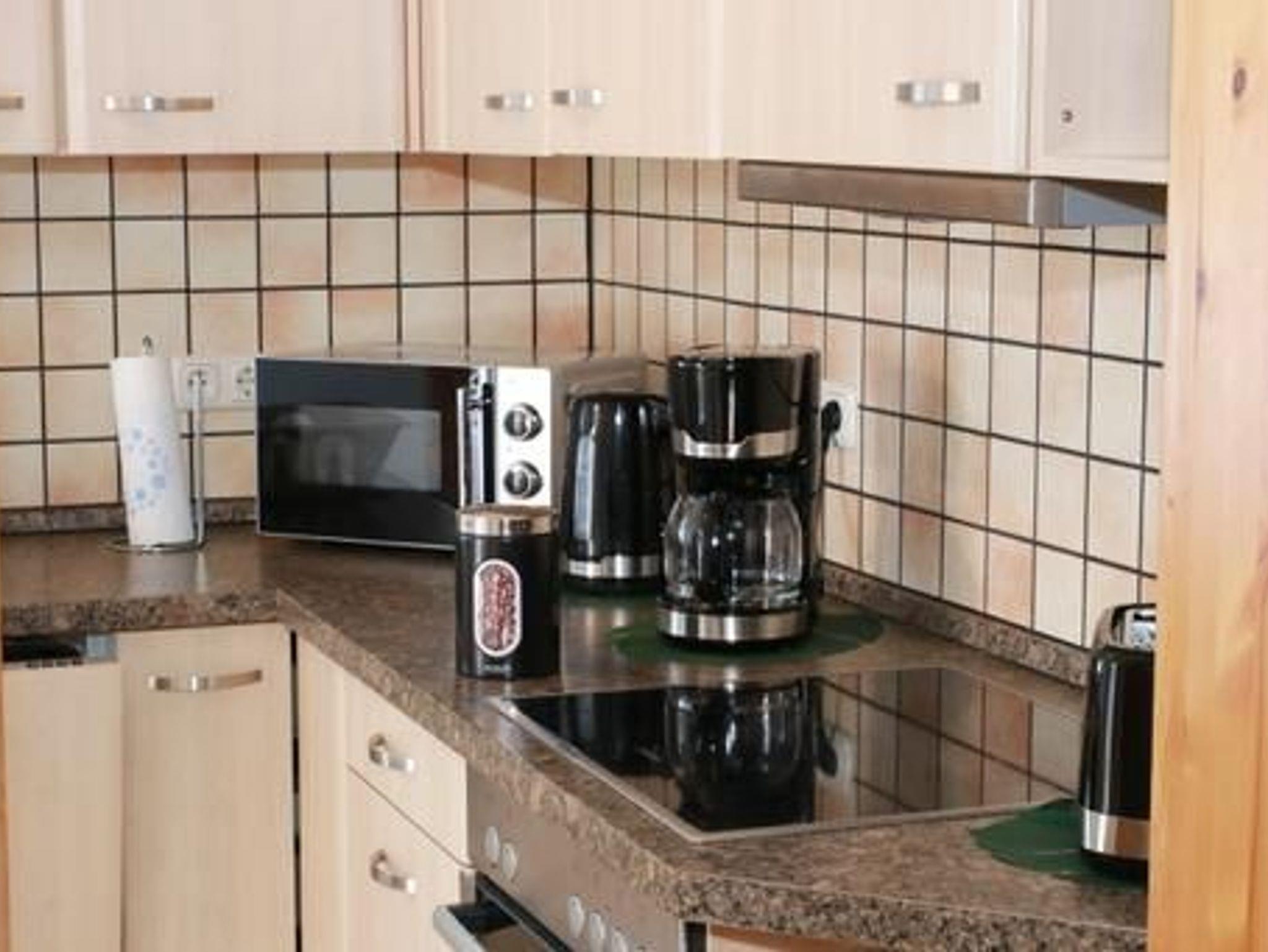 • Offener, hell gestalteter Wohnraum mit Küche mit Fenster, Kühlschrank mit Eisfach, Mikrowelle, Kaffeemaschine, Wasserkocher, Toaster, Eierkocher, Mixer, Herd mit 4 Platten, Essecke, Flachbildfernseher/Kabelanschluss, HiFi/CD Player, Schlafsofa für 2 Personen