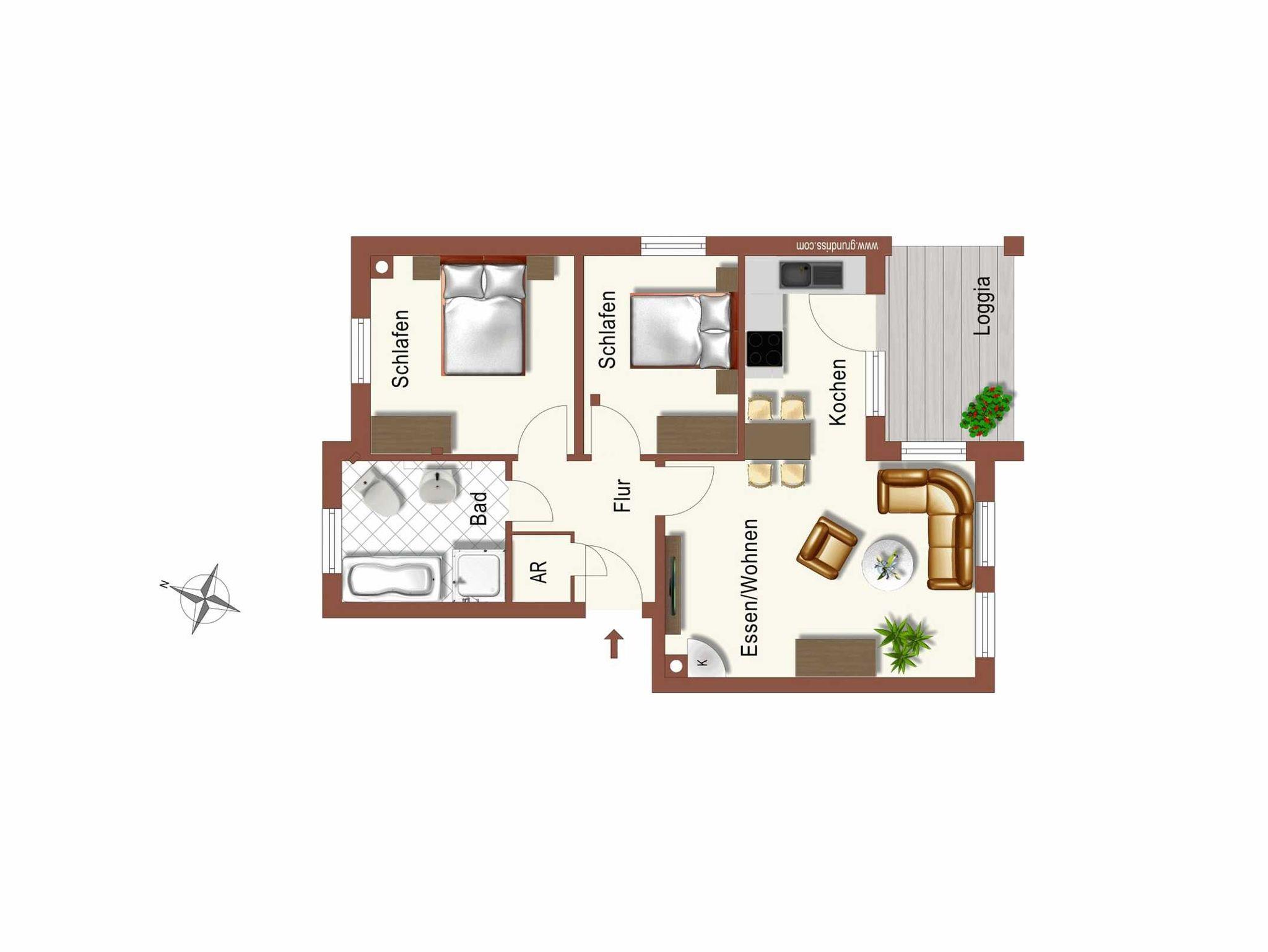 Diese Wohnung befindet sich im Obergeschoß. Sie bietet auf 69m² Platz für 4 bis max. 5 Personen* (Aufbettung). Der Wohnbereich mit Essplatz und Eck-Sofa lässt keine Wünsche offen. Eine gut ausgestattete Küche steht zur Verfügung. Die Wohnung verfügt über 2 Schlafzimmer mit Doppelbett, Bad und eine Loggia. In einem Schlafzimmer gibt es einen zusätzlichen Fernseher.