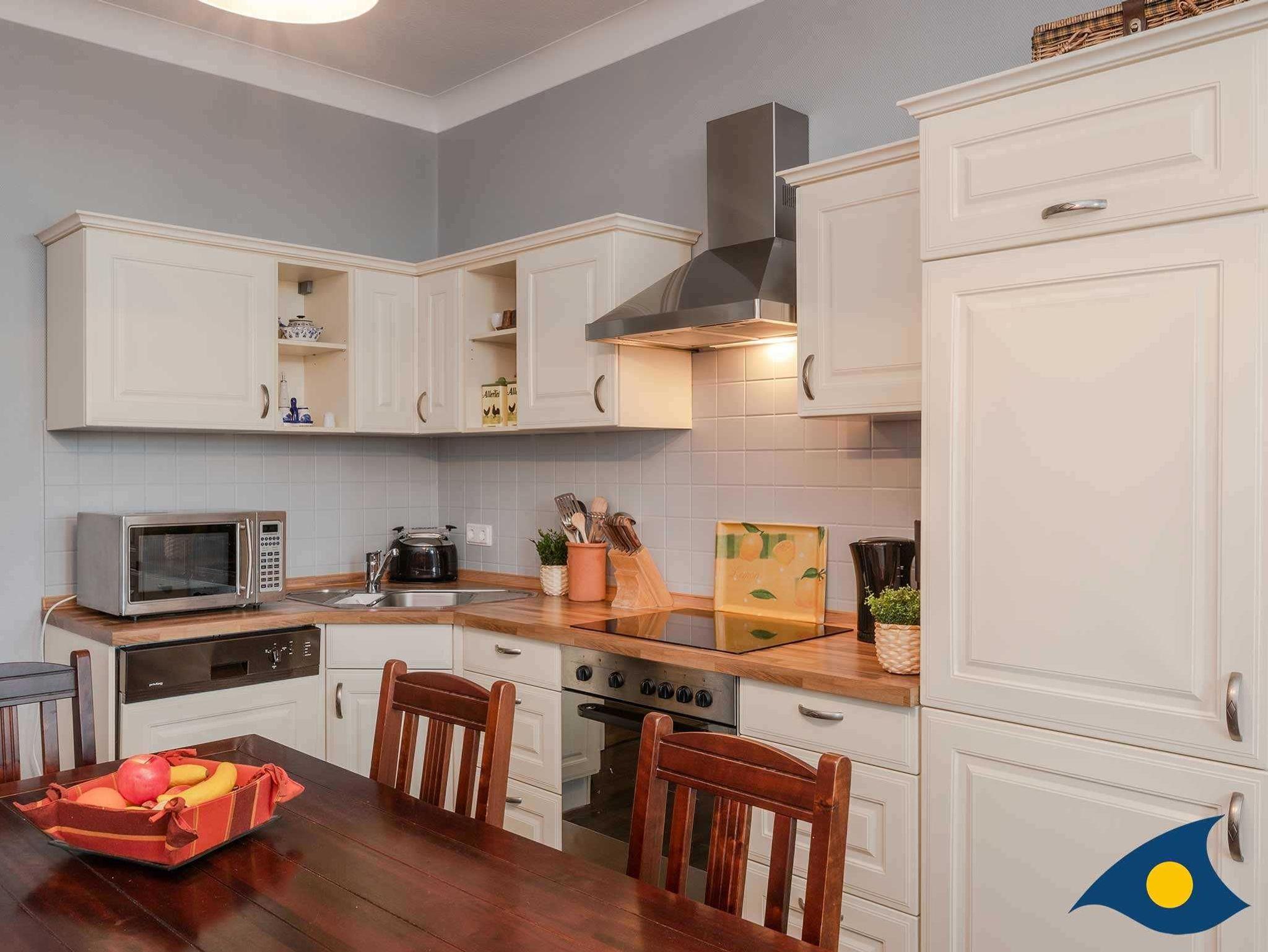 Das Appartement 2 im Haus Meerblick ist sehr exklusiv ausgestattet und liegt in der 1. Reihe mit Blick auf die Ahlbecker Promenade und auf die Dünen. Auf 55 qm² stehen Ihnen hier ein Wohnzimmer mit komplett ausgestatteter Küchenzeile, ein Badezimmer mit WC und Dusche, ein Schlafzimmer mit einem gemütlichen Doppelbett und eine separate Loggia mit Schlafcouch zur Verfügung. Für Regentage finden Sie im Appartement eine kleine Auswahl an Büchern, DVD´s und Gesellschaftsspielen. Ein PKW-Stellplatz am Haus steht Ihnen auf dem Grundstück kostenfrei zur Verfügung. Der erste Satz Bettwäsche und Handtücher (ein großes und ein kleines, ein Duschvorleger und 2 Geschirrtücher) ist bereits im Preis enthalten.