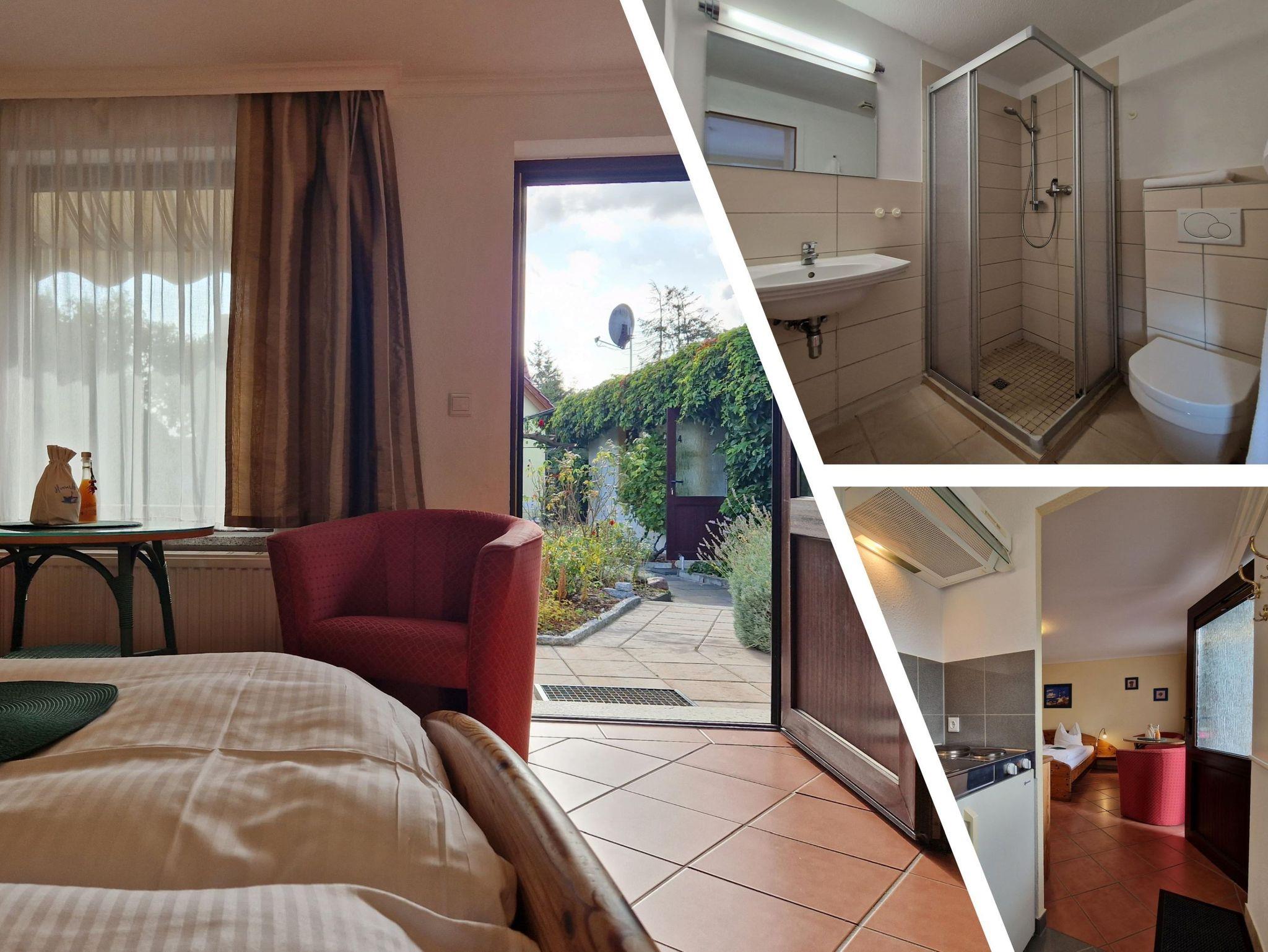 Die gemütliche 1-Raum-Wohnung im Erdgeschoss ist perfekt für 2 Personen und bietet Ihnen alles, was Sie für einen entspannten Urlaub benötigen. Das kombinierte Wohn-/Schlafzimmer ist einladend und komfortabel eingerichtet und verfügt über eine kleine Küchenzeile mit 2-Plattenherd, Kaffeemaschine sowie einem Kühlschrank mit kleinem Frostfach - ideal für die Zubereitung von kleinen Mahlzeiten und Snacks.