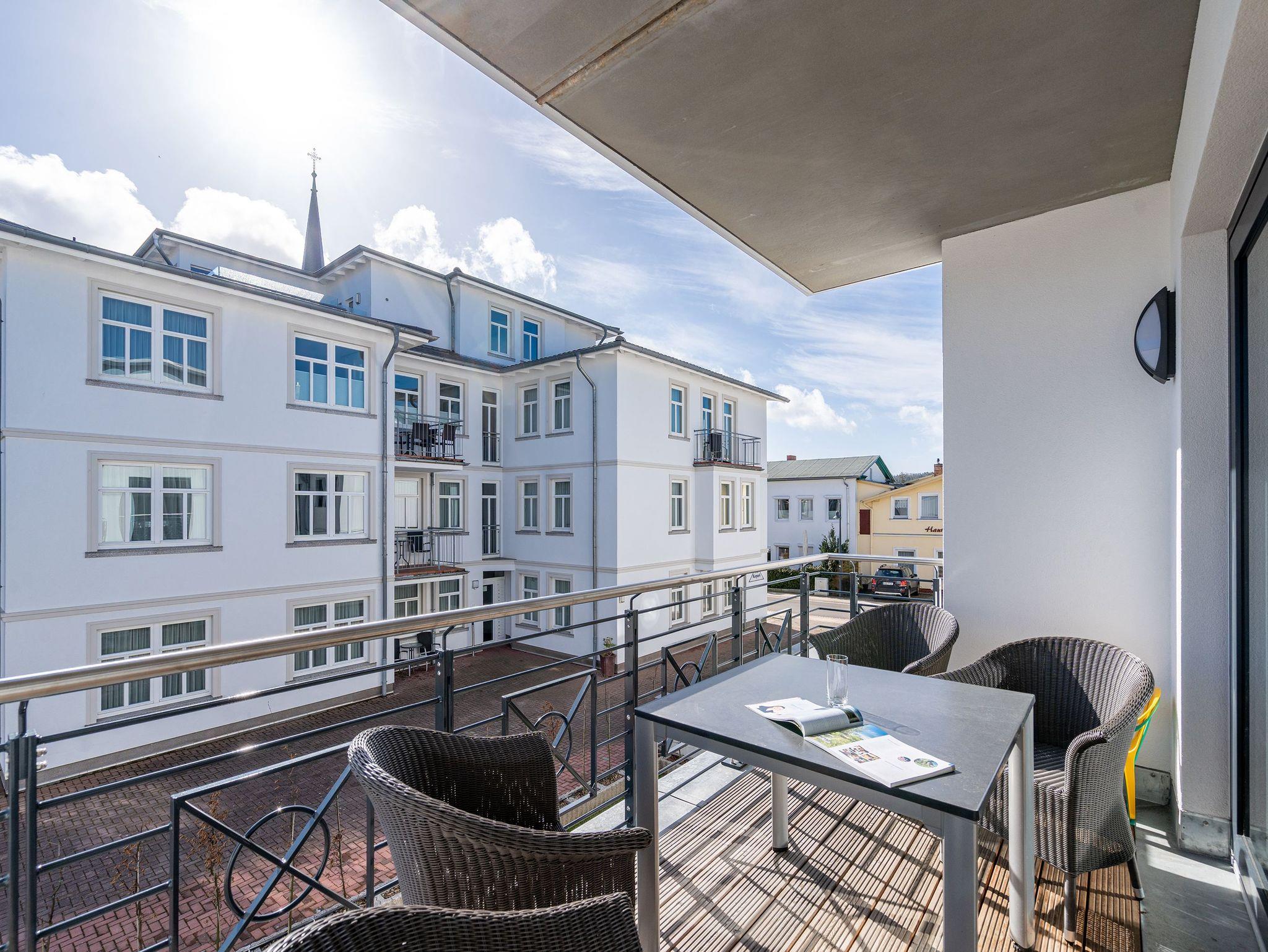Das zeitgemäß erbaute Quartier Frohsinn besticht nicht nur durch seine zentrale und strandnahe ( 250 m) Lage im Seebad Ahlbeck, auch die moderne, geschmackvolle Einrichtung der 2- bis 4-Raum-Appartements wird Sie überzeugen. Das Haus verfügt über eine Tiefgarage und einen Aufzug. Bitte beachten Sie, dass sich neben der Annehmlichkeit des Fahrstuhls, auf den Wegen im öffentlichen Bereich und teilweise in den Wohnungen Stufen befinden (nicht barrierefrei). Für jede Wohnung steht im Haus ein PkW-Stellplatz in der Tiefgarage (außer App. 4 b ein Außenstellplatz) zur Verfügung. In wohnungseigenen Kellerräumen können Sie Ihre Fahrräder abstellen. Ebenso steht kostenfreies WLAN zur Verfügung.