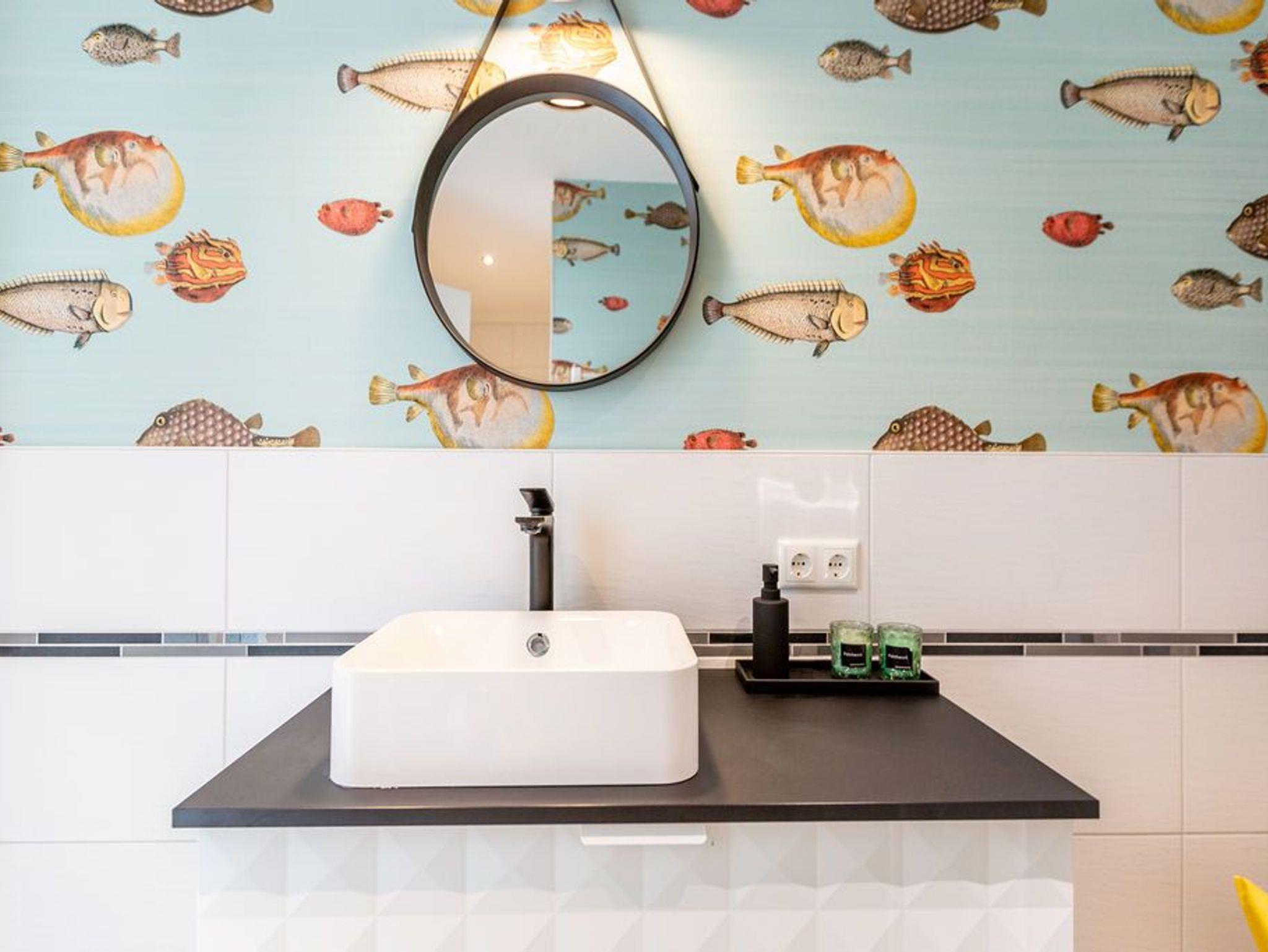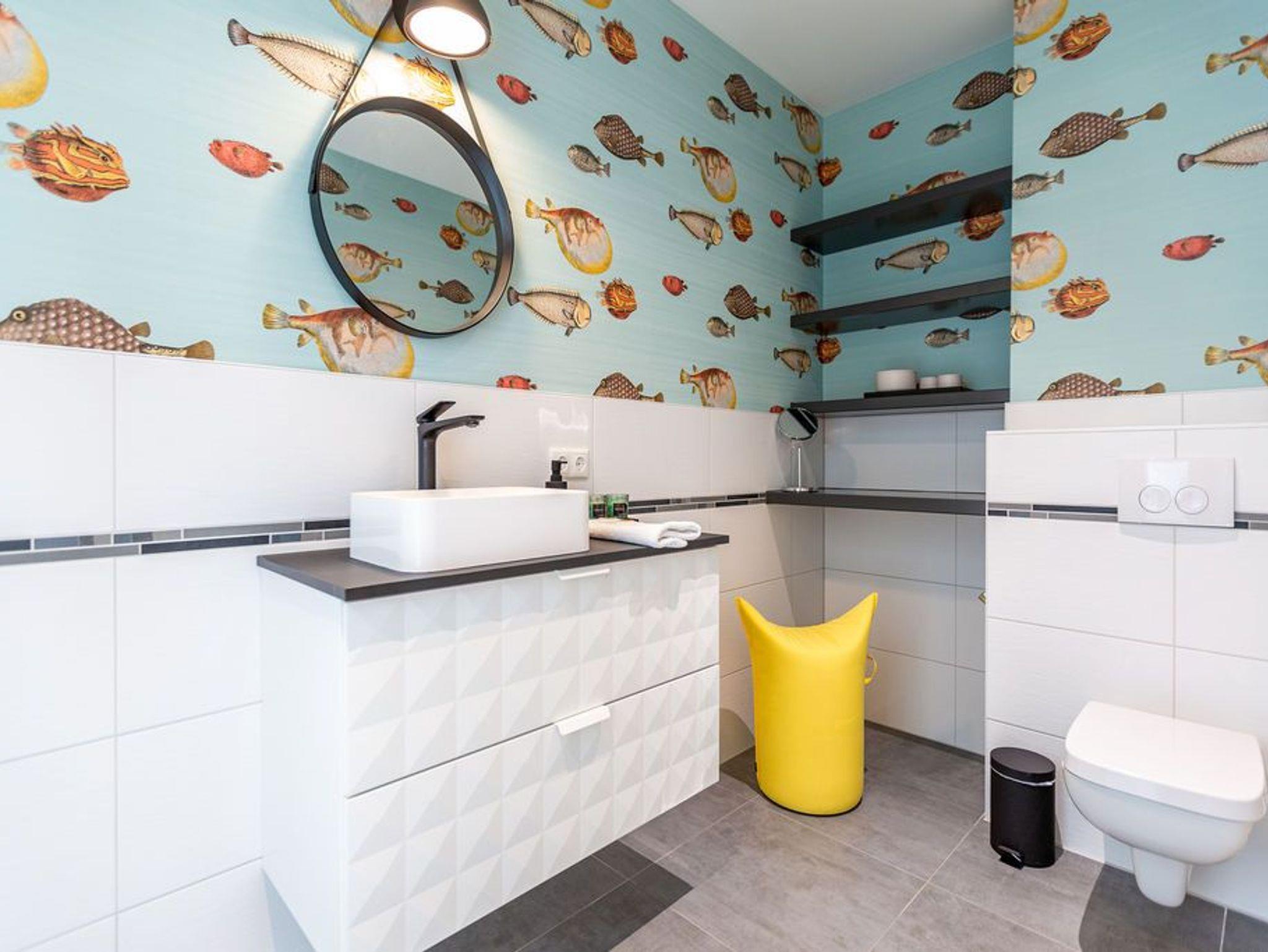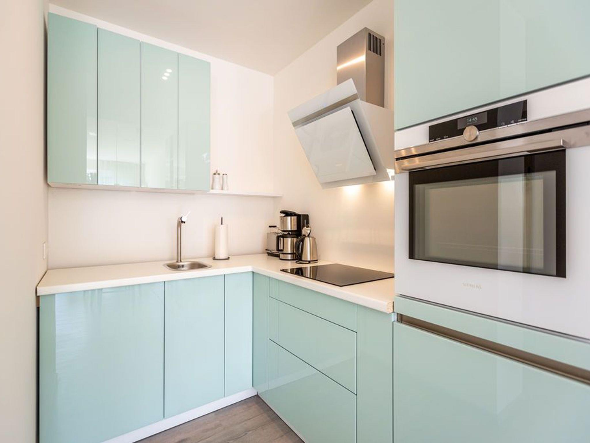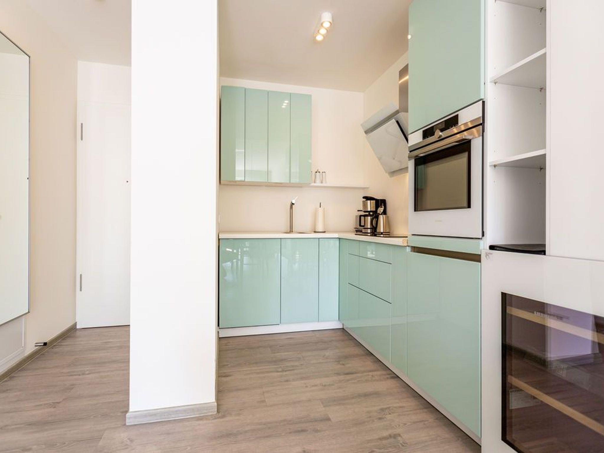 Dichter am Meer ist nur noch im Wasser. In diesem kuscheligen Appartement in der 3. Etage finden Sie Entspannung und Ruhe für Körper und Seele. Meeresrauschen ist hier inklusive. Bis zu drei Personen nebst geliebtem Haustier können es sich in den 53 Quadratmetern gut gehen lassen. Für die dritte Person besteht eine Aufbettungsmöglichkeit auf einem Schlafsofa im Wohnzimmer. Keine Sorge, Sie müssen keine Treppen bis in Ihr Urlaubsdomizil steigen. Es sei denn, Sie möchten es. Ansonsten trägt der Fahrstuhl Sie bis fast vor die Wohnungstür. Ab da heißt es nur noch licht- und luftige Leichtigkeit atmen und Hektik und Stress einfach hinter sich lassen. Die relaxte Urlaubsatmosphäre des Appartements hilft Ihnen ganz sicher dabei abzuschalten. Die Farben der Ostsee mit ihrem feinen Strandsand und dem hellen Dünengras durchziehen das gesamte Appartement. Eine komplette Glasfront erhellt das große und geschmackvoll eingerichtete Wohn-Esszimmer. Durch die bodentiefen Fenster können Sie auf den sonnenüberfluteten Süd-Balkon (7 Quadratmeter) hinaustreten. Ob Sonnenbad oder Freiluftessen ? wenn der Strand nicht rufen würde, käme man hier gar nicht wieder weg. Das Wohnzimmer wartet mit einem großen Flat-TV und bequemen Sitzmöglichkeiten mit Schlaffunktion auf. Das WLAN ist kostenfrei nutzbar. Genießen Sie die Mahlzeiten am schönen Esstisch. Zubereiten können Sie sie auf dem Induktionsherd oder im Backofen mit Mikrowellenfunktion in der offenen Wohnküche. Die Küche ist mit allen nötigen Geräten in Markenqualität ausgestattet. Auch ein komplettes Geschirr-Set befindet sich in den Schränken. Den Abwasch übernimmt anschließend der Geschirrspüler. Für Liebhaber erlesener Tropfen birgt die Küche noch ein kleines Highlight. In einem Extra-Weinkühlschrank können Sie die edlen Rebensäfte auf der richtigen Trinktemperatur halten. Das Appartement verfügt über ein separates Schlafzimmer mit einem Doppelbett (1,80 m x 2,00 m), einem geräumigen Einbaukleiderschrank und ebenfalls einem Flat-TV. Auch das Schlafzimmer hat einen Zugang zum Balkon. Unter dem Meer ? so könnte das Motto des Badezimmers lauten. Langweilig wird es dank der außergewöhnlichen Wanddekoration hier garantiert nicht. Darüber hinaus ist das Bad auch mit allem, was ein Bad ebenso braucht, ausgestattet: Dusche, Waschtisch und WC. Auch Handtücher liegen schon bereit. Die Betten sind bei Ihrer Anreise bezogen. In der Garage ist im Doppelparker (oben) die Nummer 37 für Sie reserviert (Fahrzeughöhe max. 1,90 m).