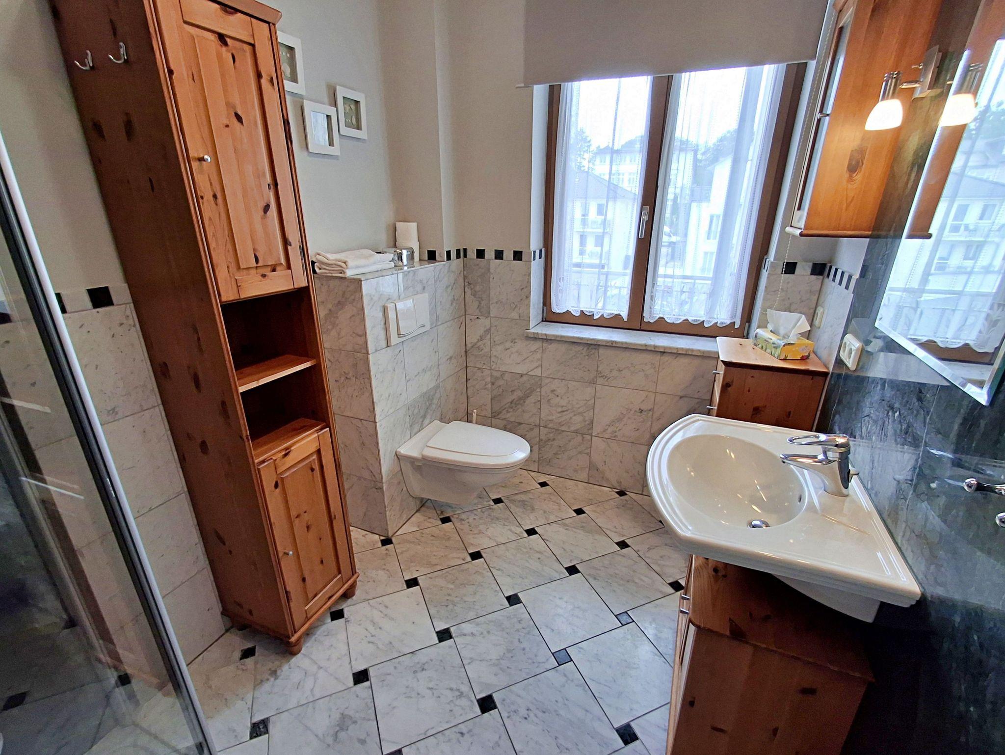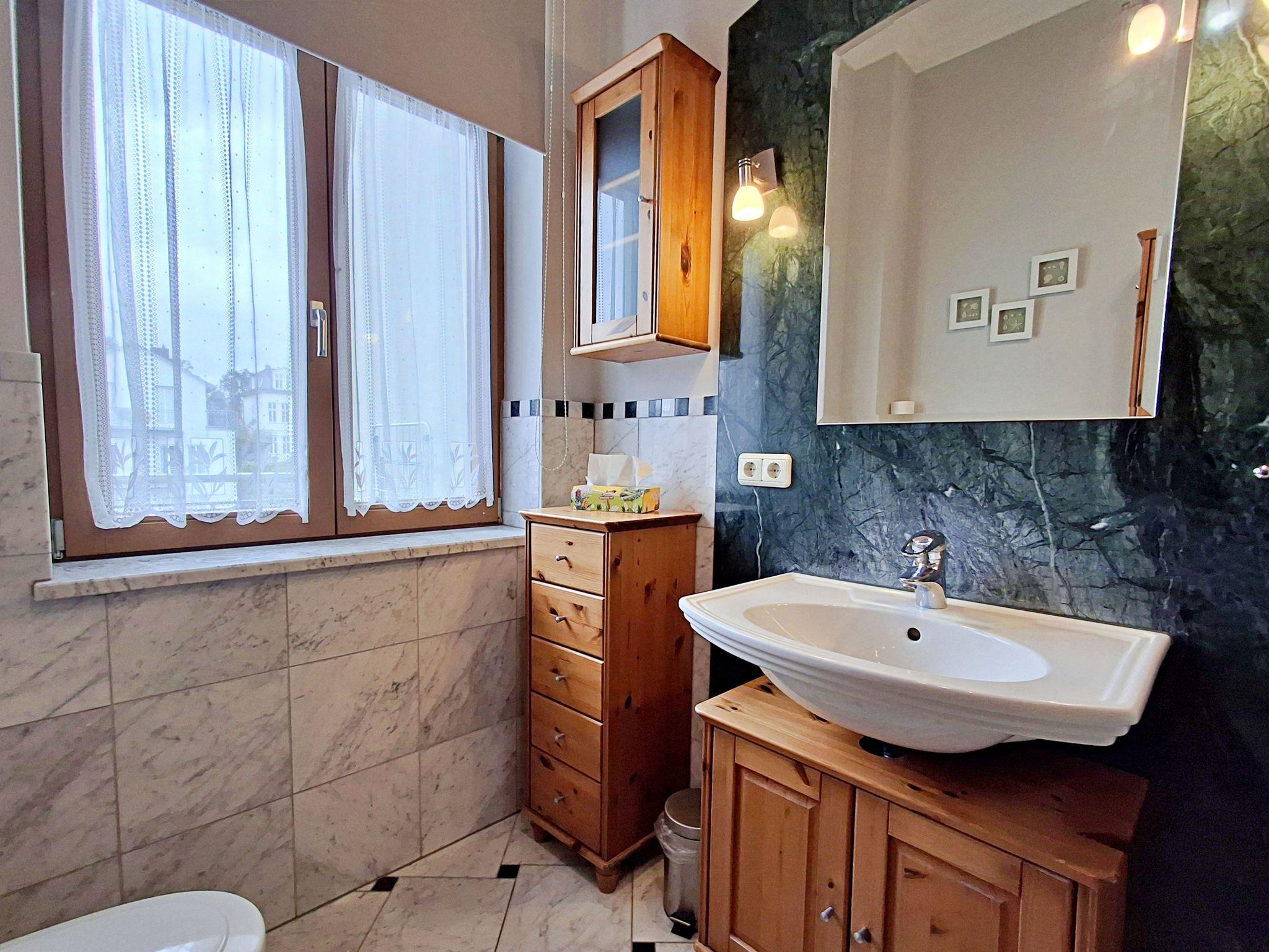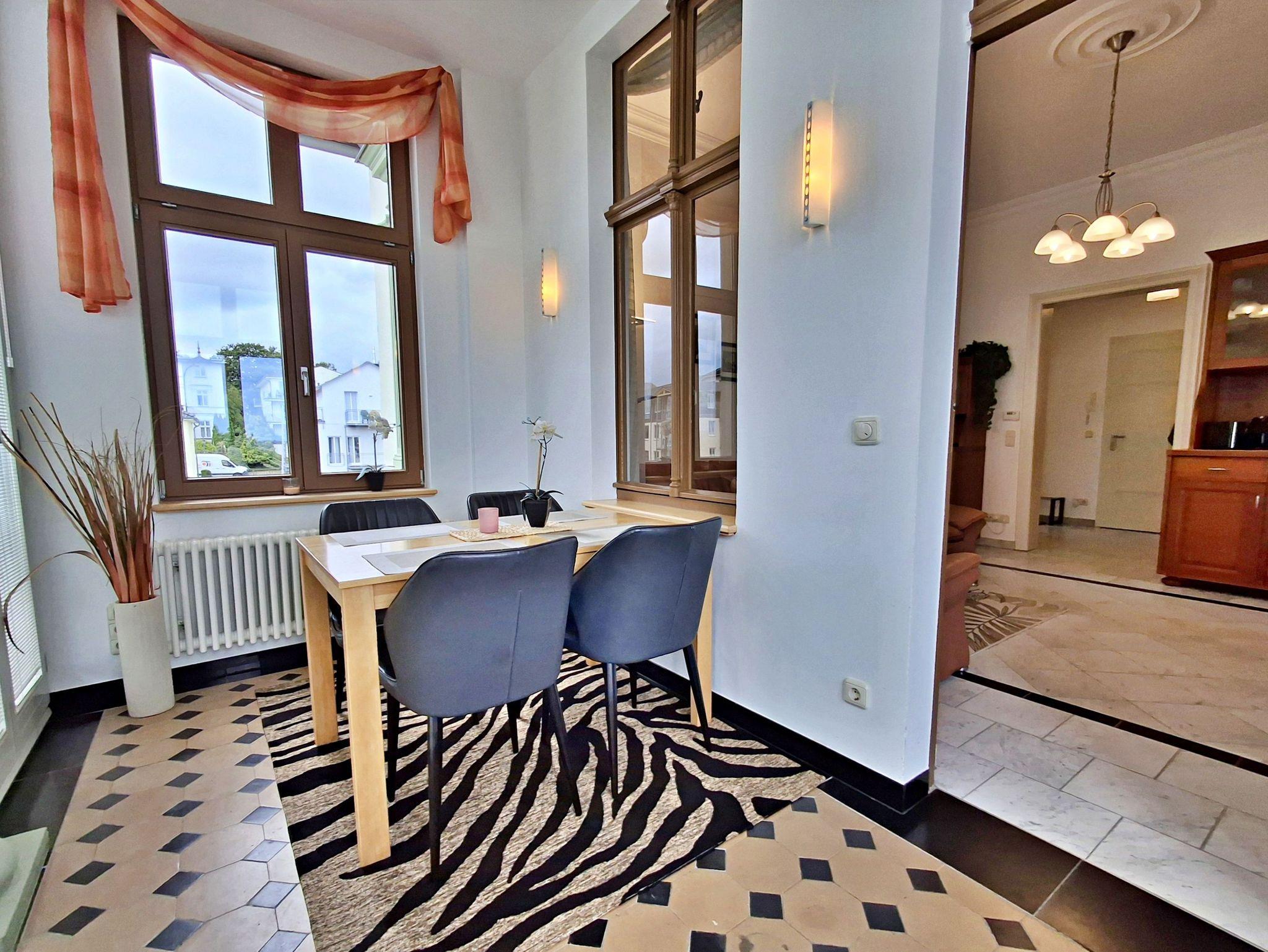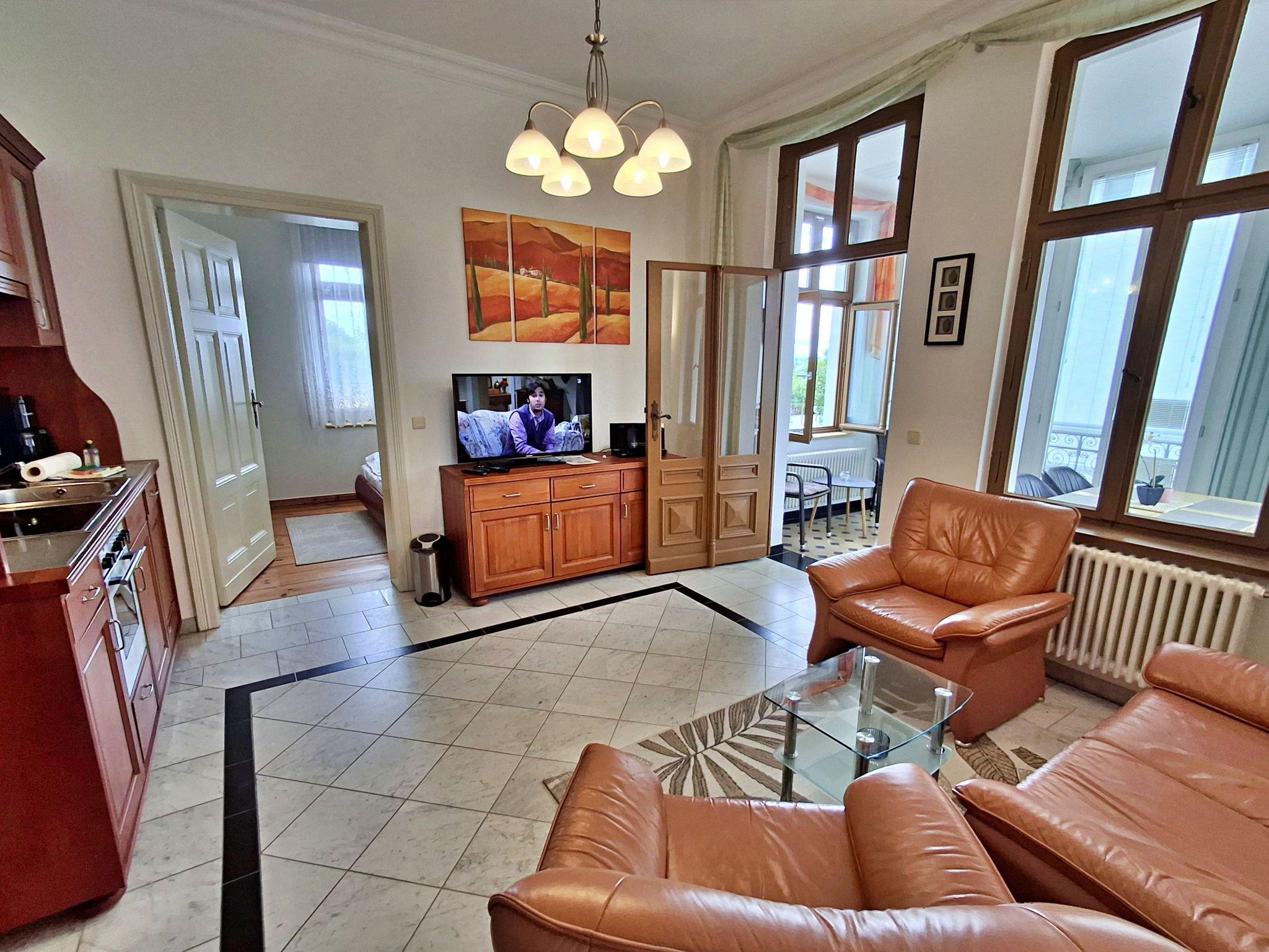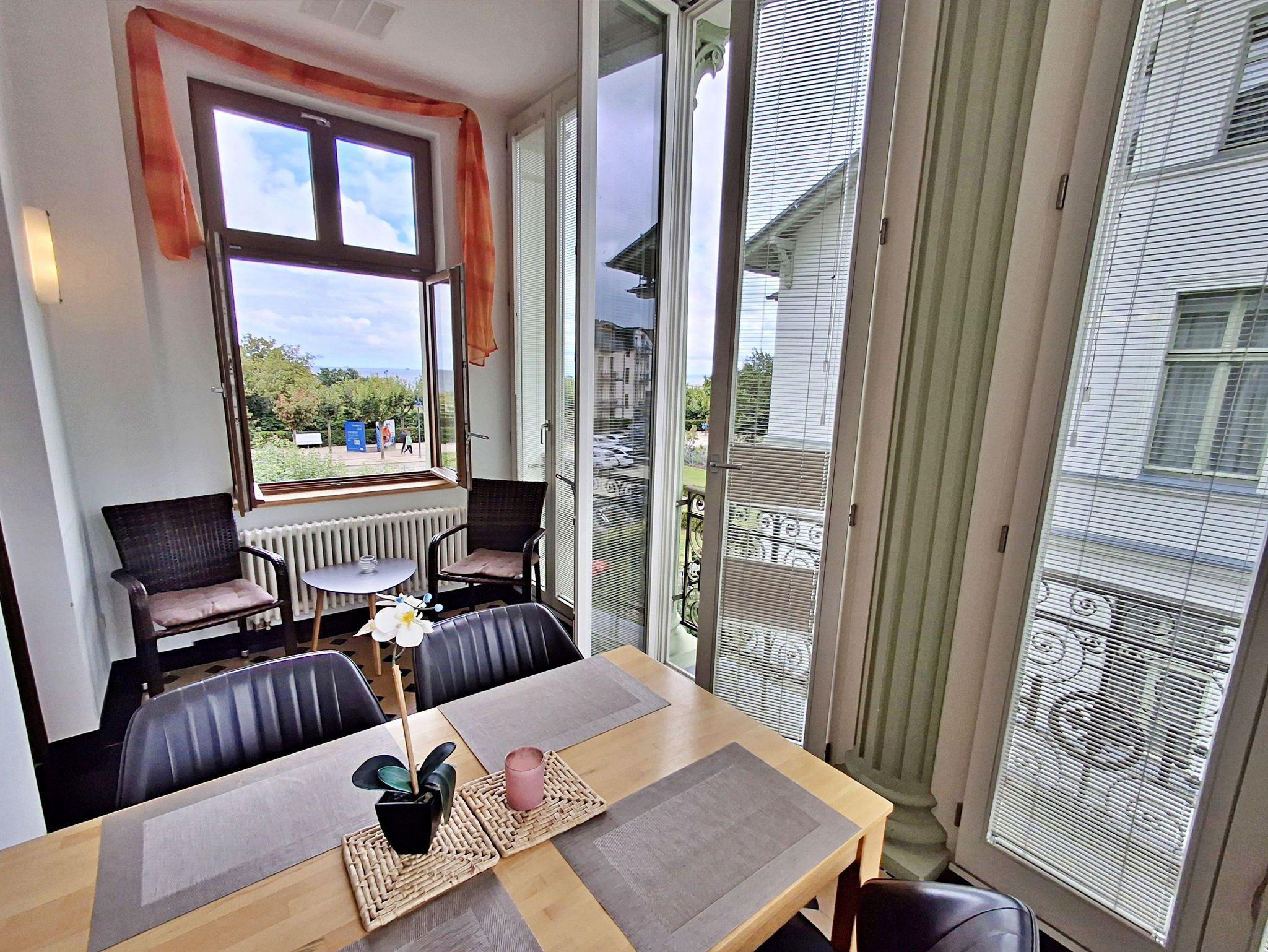 Herzlich willkommen in der Wohnung Nr. 4 der Villa Bella! Diese charmante Unterkunft befindet sich im 1. Obergeschoss des Hauptgebäudes und ist bequem über 1,5 Treppen erreichbar. Mit einer großzügigen Fläche von 64 m² bietet die Wohnung Platz für bis zu 4 Personen, um einen angenehmen Aufenthalt zu verbringen. Der kombinierte Wohn- und Küchenbereich ist komfortabel eingerichtet und lädt zum Verweilen ein. Die speziell angefertigte Küchenzeile fügt sich harmonisch in das geschmackvolle Ambiente ein und ist mit allen notwendigen Einbaugeräten ausgestattet. Genießen Sie Ihre Mahlzeiten in der Loggia, wo Sie einen tollen Blick auf die Promenade und die Ostsee haben. Die Wohnung verfügt über zwei separate Schlafzimmer, die beide mit gemütlichen Doppelbetten ausgestattet sind und entweder einen Blick auf das Meer oder zur Südseite mit Balkon bieten. Das stilvolle Bad ist mit grün-weißem Marmor gestaltet und bietet eine Dusche sowie WC. Für Ihre Wäsche stehen Ihnen Waschmaschine und Wäschetrockner in einem separaten Raum der Villa zur Verfügung, die gegen Gebühr genutzt werden können. Zudem haben Sie auf dem Grundstück einen eigenen Pkw-Stellplatz sowie einen verschließbaren Abstellraum für Fahrräder oder Zweiradfahrzeuge. Selbstverständlich ist das WLAN Netz kostenfrei, sodass Sie Ihre Urlaubserlebnisse mit der Familie zuhause oder Freunden teilen können. Bitte beachten Sie, dass eine Kaution in Höhe von 100 Euro für die Funk-Fernbedienung zum Befahren der Promenade erhoben wird.