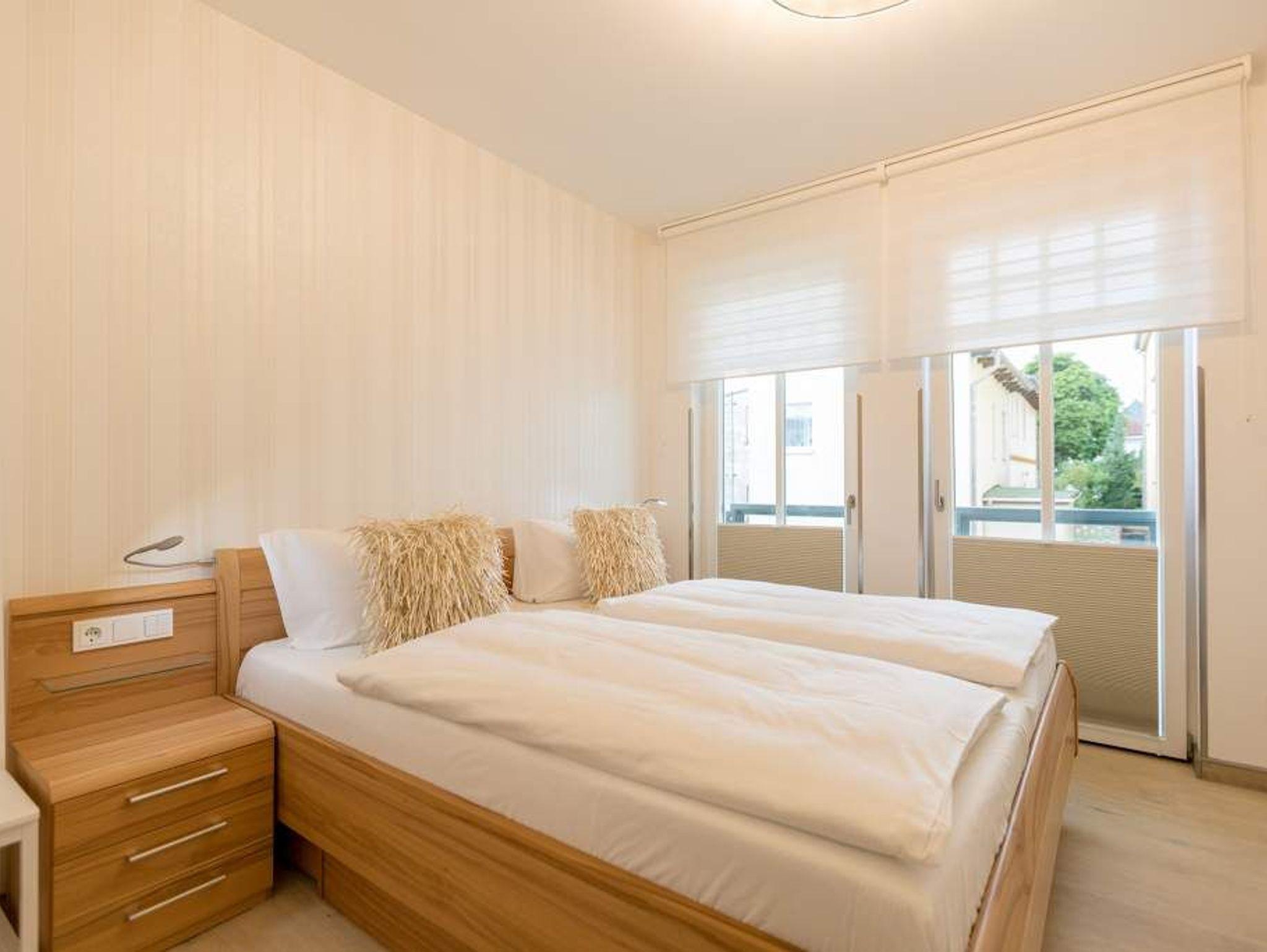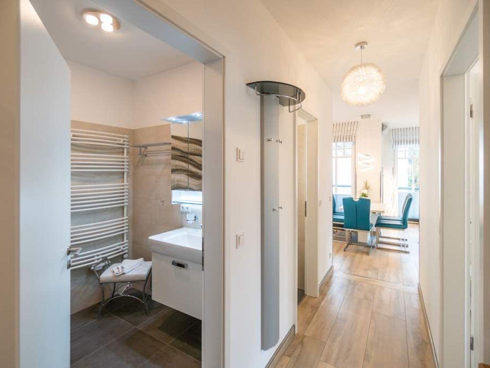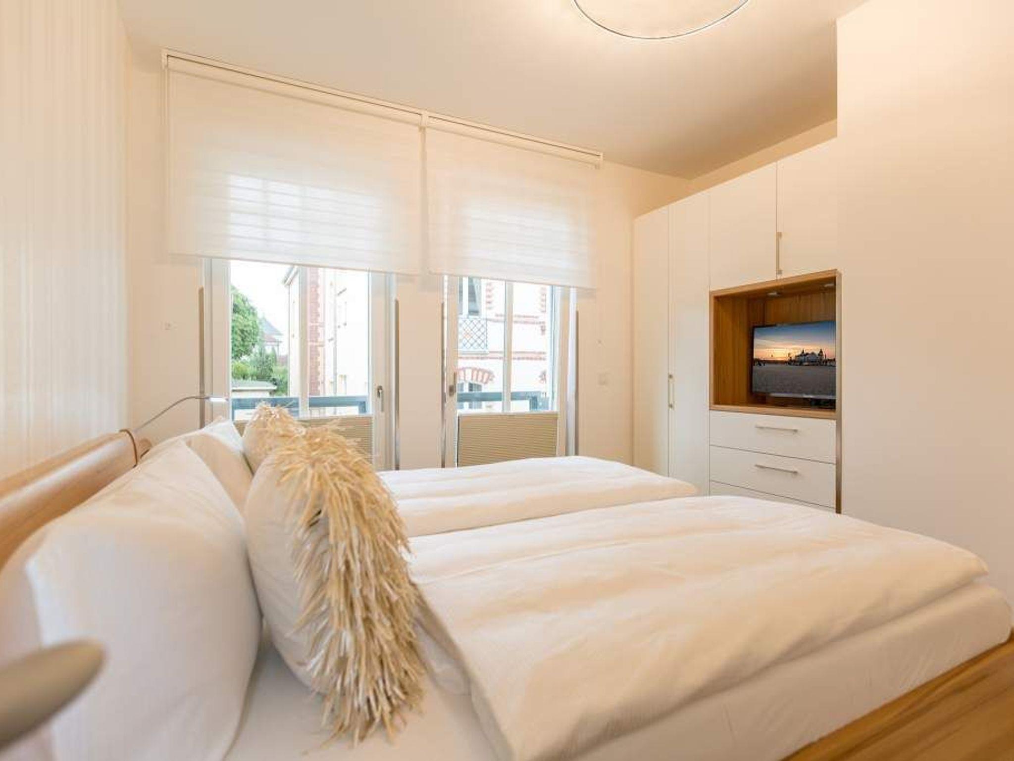 Stylisch ? von der Farbauswahl über die Wandgestaltung und das Lampendesign bis zur Einrichtung. In diesem Feriendomizil Nummer 12 in der dritten Etage des Westendpalais erwartet Sie exklusives und geschmackvolles Wohndesign. Doch ist das längst nicht alles, was die 70 Quadratmeter Wohntraum zu bieten haben. Schon in der Früh begrüßt sie die Sonne beim Frühstück auf dem Balkon. Und die Ostsee gibt Ihren unvergleichlichen Sound dazu. Lockt das Wetter nicht zum Entdecken der Inselschönheiten, bietet der Elektro-Kamin auf Knopfdruck eine gemütliche Atmosphäre. Dazu laden der große Flat-TV, ein Sony Personal Audio System (Radio, CD-Player), die CD Boombox mit USB Playback und ein Samsung Blu-ray Disc Player/DVD Player mit HDMI Kabel zum Entspannen auf der bequemen Leder-Sofalandschaft ein. Zum großzügigen, offenen Wohnzimmer gehört auch ein schöner Essplatz mit sechs Lederstühlen und einem Tisch. In der ebenfalls offenen Küchenzeile finden Sie alle notwendigen Küchengeräte und edles Designgeschirr. Von hier aus haben Sie Zugang zum Balkon. Vier Personen können in diesem schönen Domizil gemeinsam Urlauben. Denn die Wohnung verfügt über zwei Schlafzimmer mit jeweils einem Doppelbett (1,80 m 2,00 m), geräumigen Einbauschränken und Flat-TV. Das moderne Badezimmer ist mit einer Regen-Dusche, Waschtisch und WC ausgestattet. Ein Gäste-WC gibt es on top. Und in diesem Appartement können Sie sich noch auf ein ganz besonderes Highlight freuen: eine Finnische Sauna, die Sie kostenfrei benutzen können. Zur weiteren Wohnungsausstattung gehören ein Babybett sowie ein Picknick-Korb mit Strandgeschirr. Da steht dem entspannten Tag am Meer doch nichts mehr im Weg. Wollen Sie ein wenig die Insel erkunden, können Sie das mit den beiden Holländer-Fahrrädern, die zu der Wohnung dazu gehören. Also: Kommen Sie einfach an, stellen Sie Ihr Auto in der Tiefgarage ab und legen Sie los mit der Entspannung. Am Tiefgaragenstellplatz steht eine E Ladesäule zur Verfügung. Die Nutzung erfolgt bequem über handelsübliche Karten. Die Betten haben wir für Sie bereits bezogen und Handtücher liegen bereit.