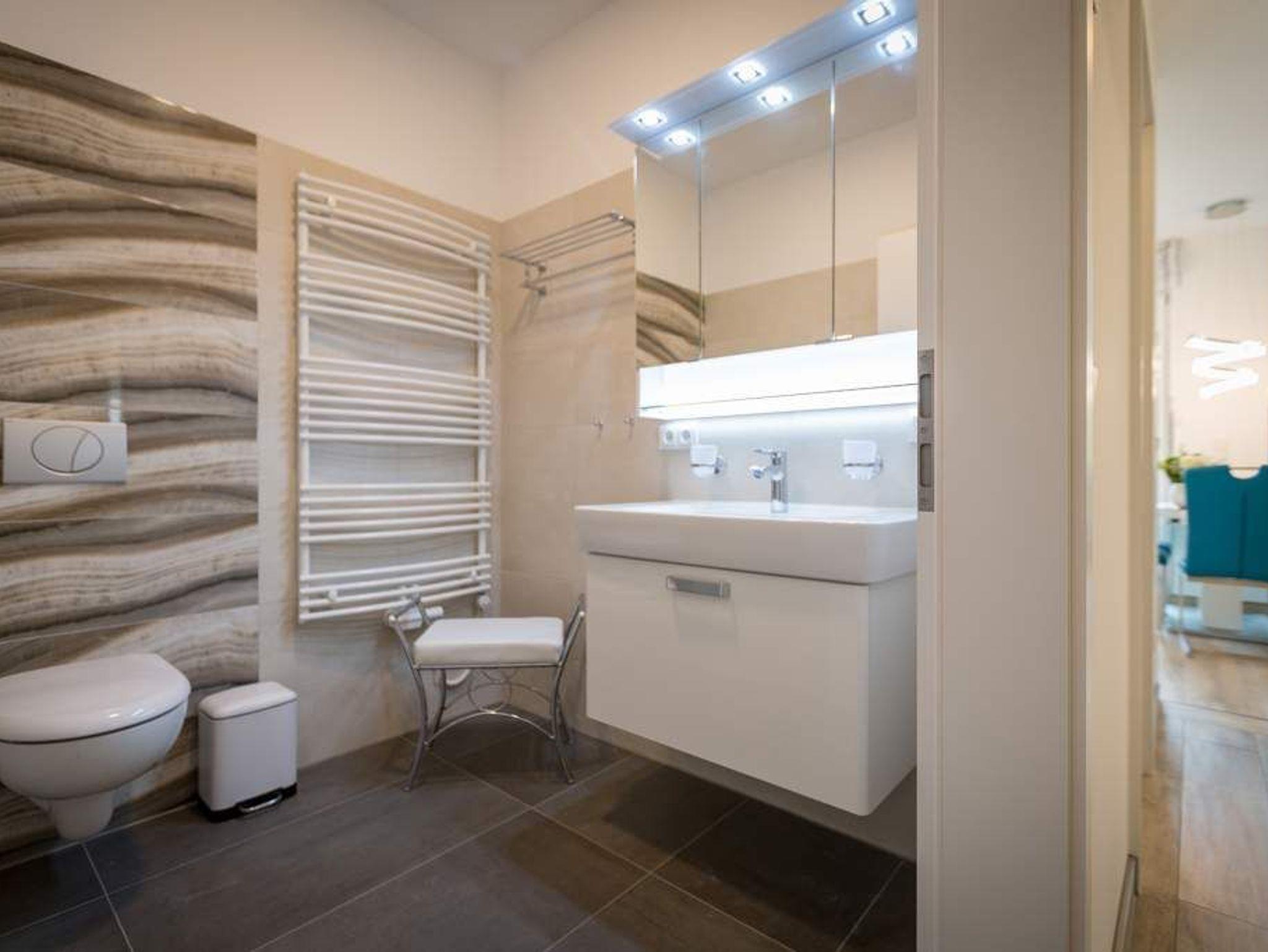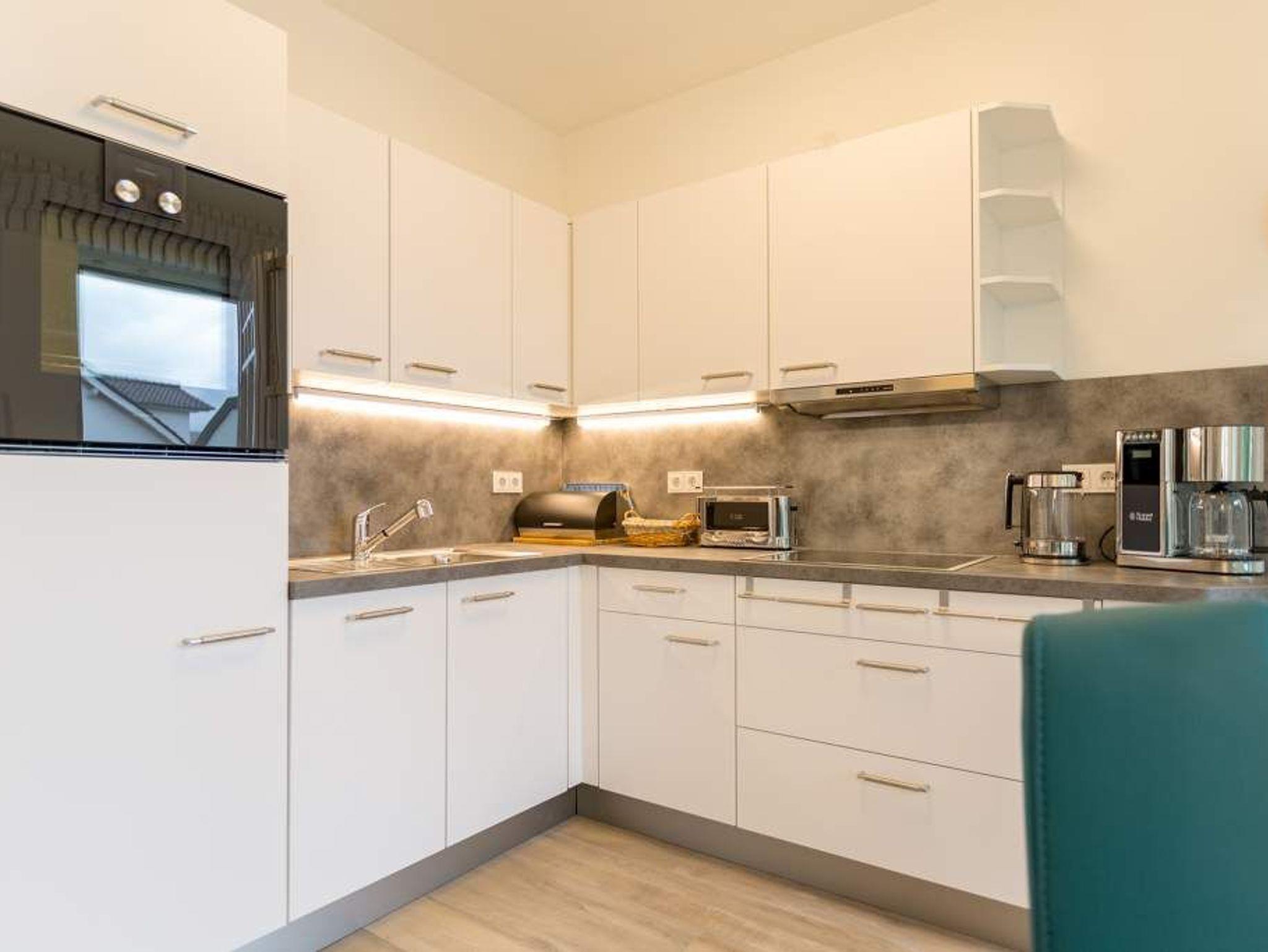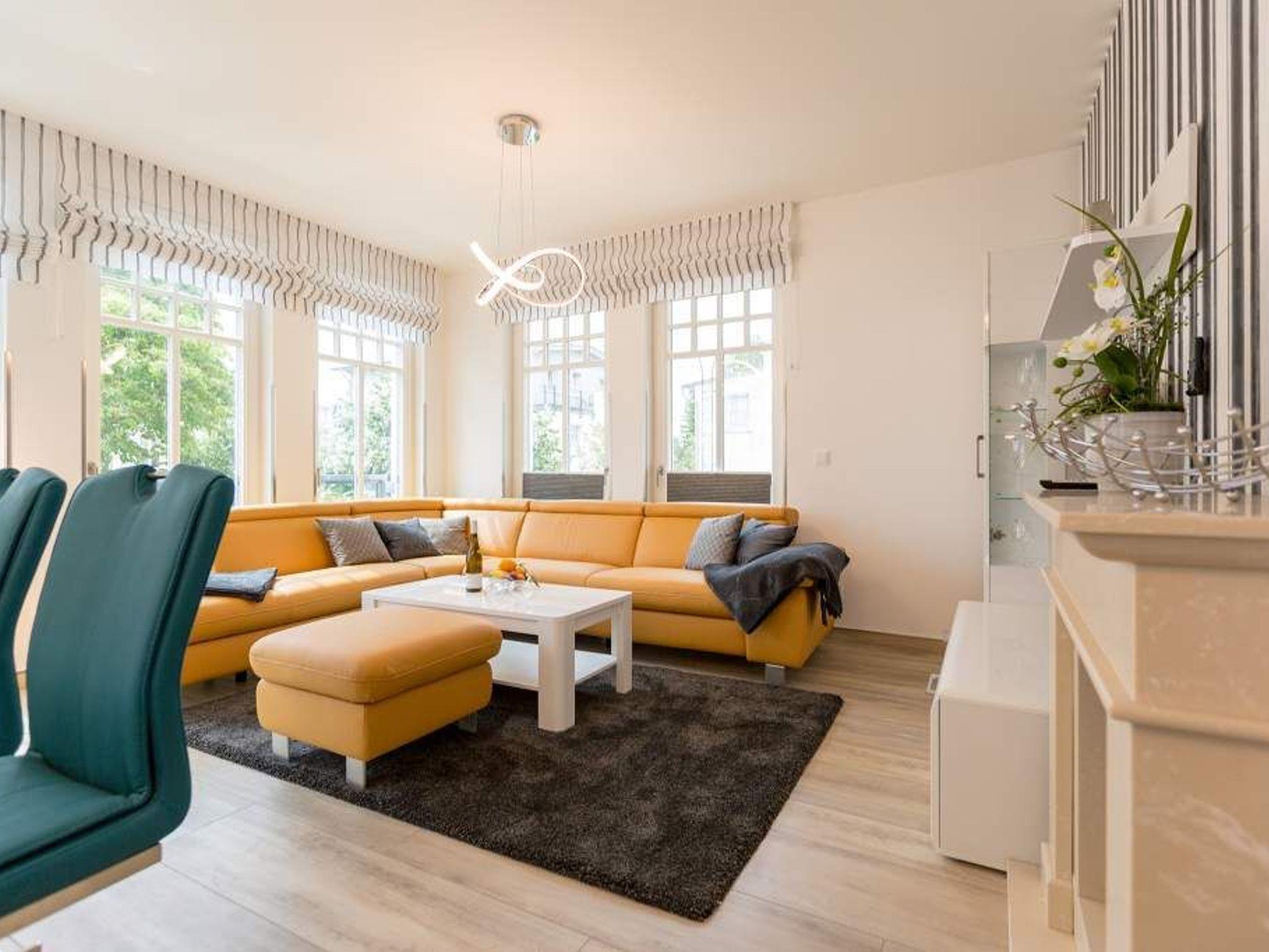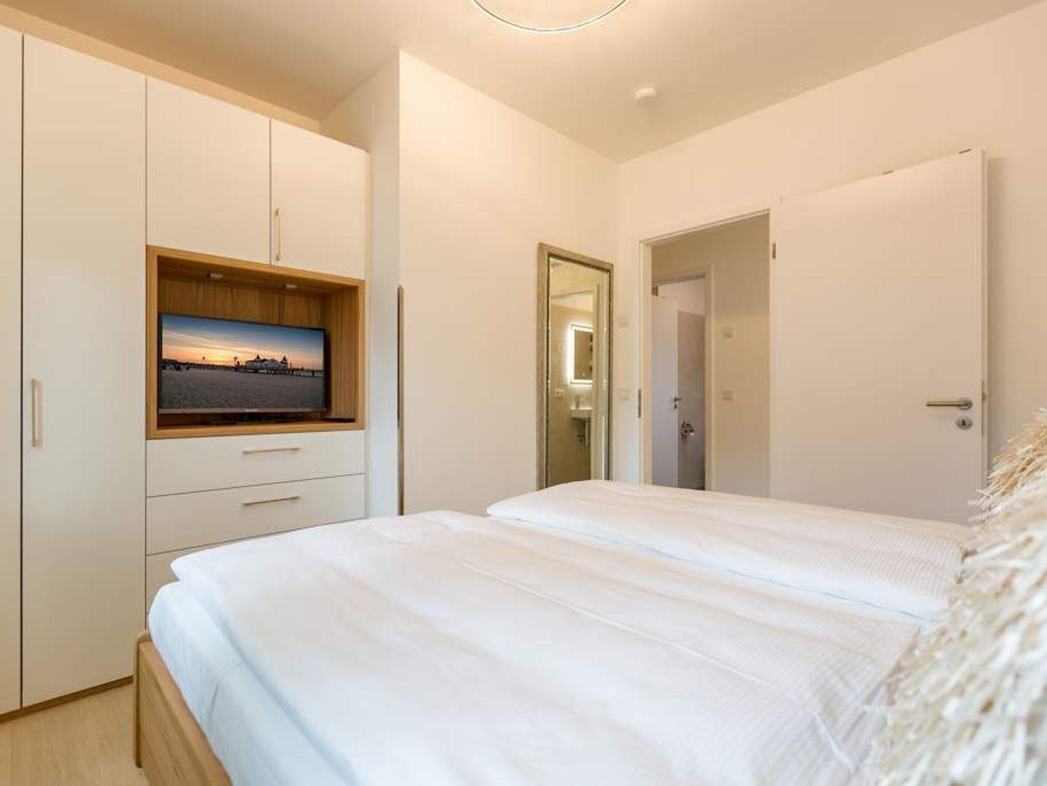 Stylisch ? von der Farbauswahl über die Wandgestaltung und das Lampendesign bis zur Einrichtung. In diesem Feriendomizil Nummer 12 in der dritten Etage des Westendpalais erwartet Sie exklusives und geschmackvolles Wohndesign. Doch ist das längst nicht alles, was die 70 Quadratmeter Wohntraum zu bieten haben. Schon in der Früh begrüßt sie die Sonne beim Frühstück auf dem Balkon. Und die Ostsee gibt Ihren unvergleichlichen Sound dazu. Lockt das Wetter nicht zum Entdecken der Inselschönheiten, bietet der Elektro-Kamin auf Knopfdruck eine gemütliche Atmosphäre. Dazu laden der große Flat-TV, ein Sony Personal Audio System (Radio, CD-Player), die CD Boombox mit USB Playback und ein Samsung Blu-ray Disc Player/DVD Player mit HDMI Kabel zum Entspannen auf der bequemen Leder-Sofalandschaft ein. Zum großzügigen, offenen Wohnzimmer gehört auch ein schöner Essplatz mit sechs Lederstühlen und einem Tisch. In der ebenfalls offenen Küchenzeile finden Sie alle notwendigen Küchengeräte und edles Designgeschirr. Von hier aus haben Sie Zugang zum Balkon. Vier Personen können in diesem schönen Domizil gemeinsam Urlauben. Denn die Wohnung verfügt über zwei Schlafzimmer mit jeweils einem Doppelbett (1,80 m 2,00 m), geräumigen Einbauschränken und Flat-TV. Das moderne Badezimmer ist mit einer Regen-Dusche, Waschtisch und WC ausgestattet. Ein Gäste-WC gibt es on top. Und in diesem Appartement können Sie sich noch auf ein ganz besonderes Highlight freuen: eine Finnische Sauna, die Sie kostenfrei benutzen können. Zur weiteren Wohnungsausstattung gehören ein Babybett sowie ein Picknick-Korb mit Strandgeschirr. Da steht dem entspannten Tag am Meer doch nichts mehr im Weg. Wollen Sie ein wenig die Insel erkunden, können Sie das mit den beiden Holländer-Fahrrädern, die zu der Wohnung dazu gehören. Also: Kommen Sie einfach an, stellen Sie Ihr Auto in der Tiefgarage ab und legen Sie los mit der Entspannung. Am Tiefgaragenstellplatz steht eine E Ladesäule zur Verfügung. Die Nutzung erfolgt bequem über handelsübliche Karten. Die Betten haben wir für Sie bereits bezogen und Handtücher liegen bereit.