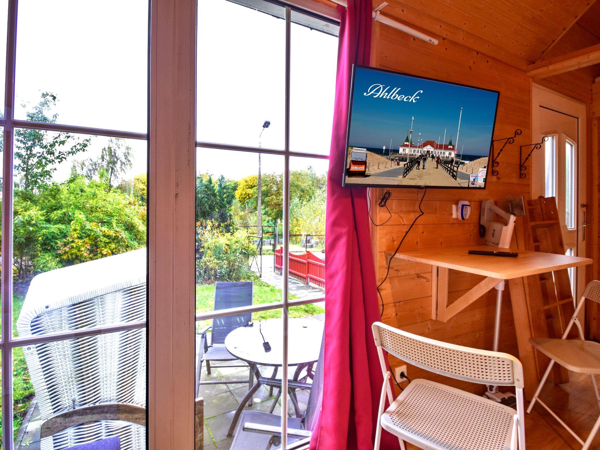 Wollten Sie schon immer mal Urlaub in einem modernen Tiny House im Grünen machen? Dann sind Sie bei uns genau richtig! Auf kleinstem Raum finden Sie alles, was Sie zum Entspannen und Erholen brauchen. Das nachhaltig gebaute Tiny House bietet Platz für vier Personen (zwei Schlafplätze 2x90x200 und zwei Schlafplätze im Hochbett ohne Rausfallschutz130x220) mit integrierter Küche und einem Bad mit Dusche. Wollen Sie den Tag mit einer Yoga Session starten? Kein Problem - das großzügige und grüne Grundstück bietet Ihnen genügend Platz. Der Usedomer Wald ist direkt vor Ihrer Haustür und lädt zu einem ausgiebigen Spaziergang oder einer Joggingrunde ein. Kommen Sie dann erschöpft zurück, wartet eine Regendusche im Tiny House auf Sie. Machen Sie es sich bequem und genießen Sie den Ausblick durch weiten und hellen Terrassenfenster, während Sie gemütlich auf dem Bettsofa liegen und Ihr Lieblingsbuch lesen. Wie wäre es zum Ausklang eines romantischen Abends mit etwas Leckerem vom rustikalen Außengrill auf der Terrasse oder einem Rotwein? Legen Sie die Beine hoch und entspannen Sie sich. Bei uns bleiben keine Wünsche offen. Kommen Sie mit dem Auto oder vielleicht ganz sportlich mit dem Fahrrad? Für beides haben wir selbstverständlich einen Platz auf dem Grundstück. Das ist noch längst nicht alles. Sie finden bei uns kostenfreies WLAN, Smart-TV mit Streamingfunktion, kleiner Kühlschrank mit Gefrierfach, Induktions-Kochfeld, Mikrowelle mit Heißluft und Grill, Wasserkocher, Kaffeemaschine, Toaster, Föhn und vieles mehr. Eine Heizung ist nicht vorhanden!