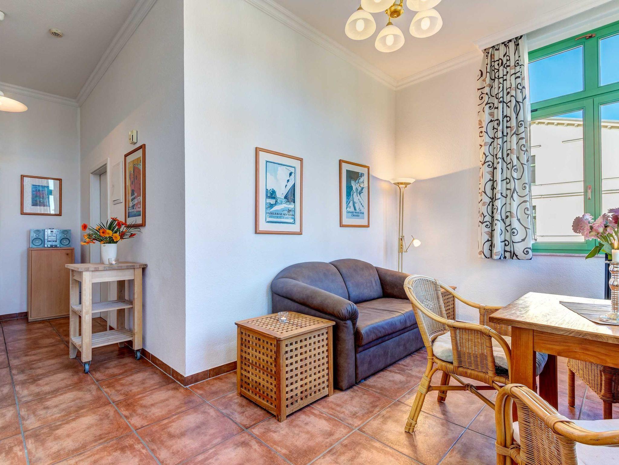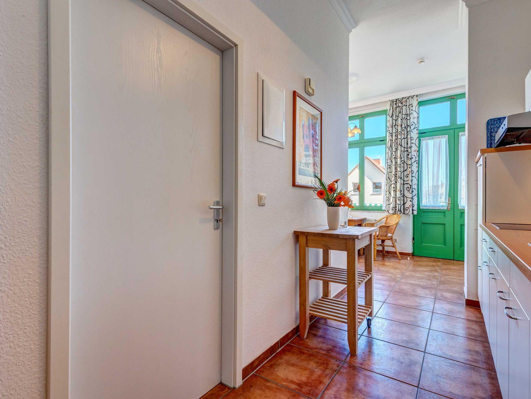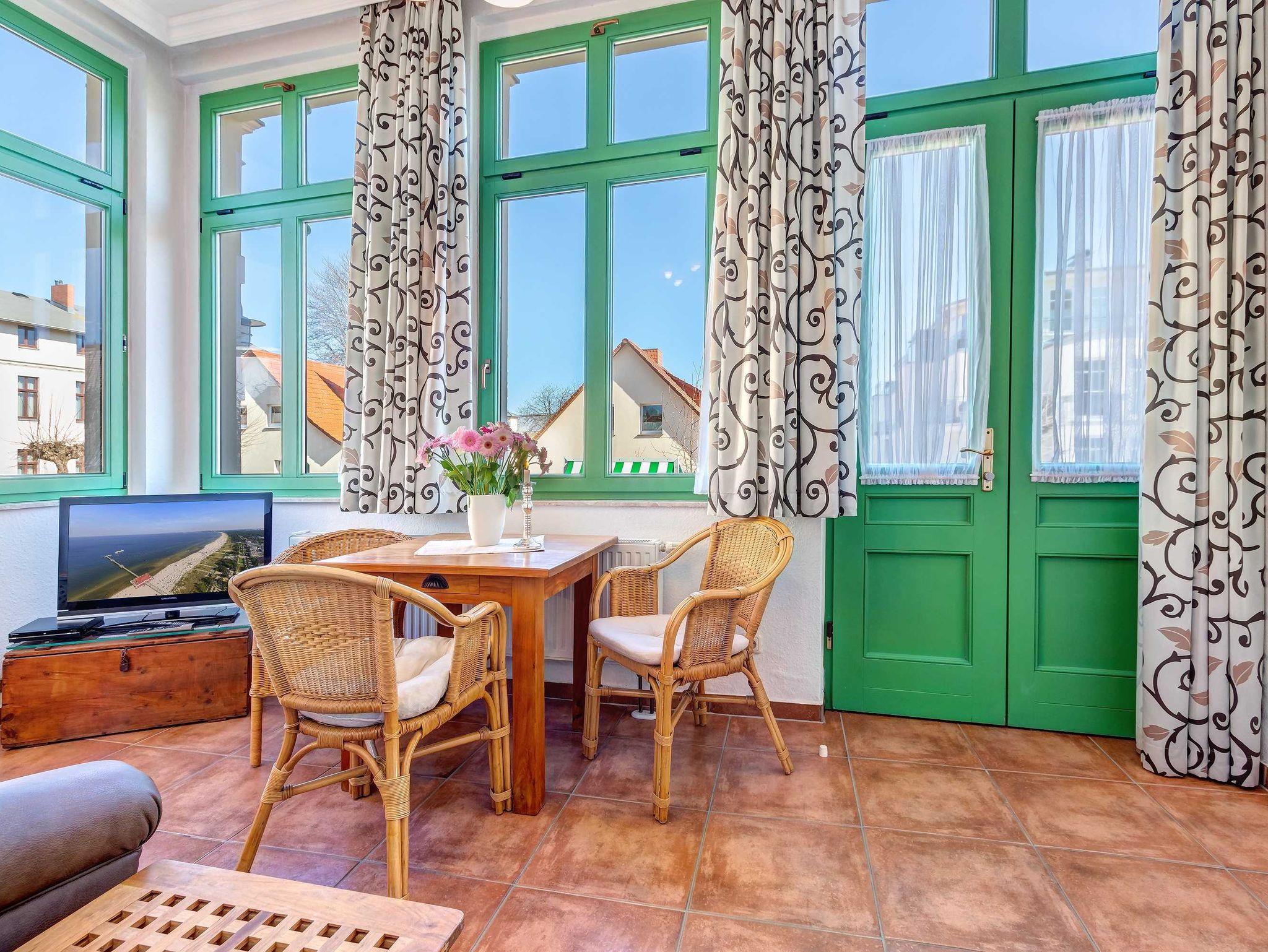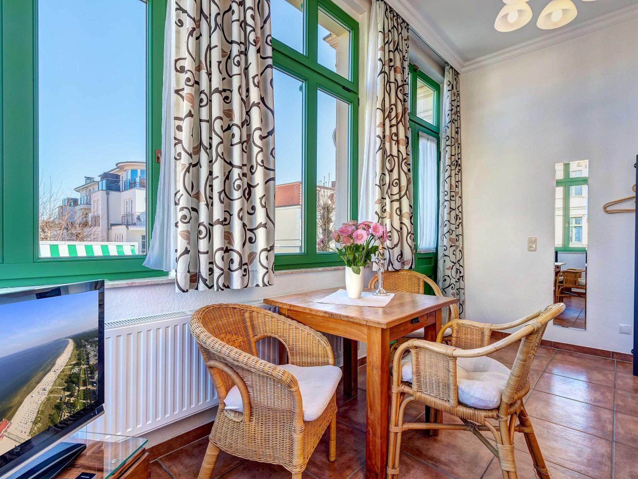 STRANDNAH! Nur ca. 100 m zur Strandpromenade mit TERRASSE, KLEINEM GARTEN und STRANDKORB! Gemütliches 2-Zimmer-Apartment mit freundlicher Ausstattung. Separates Schlafzimmer, Wohnzimmer mit Schlafcouch, Küchenzeile, Essplatz, geräumiges Duschbad, Terrasse mit Gartenmöbeln und STRANDKORB (Frühling bis Herbst) und kleinem Gartenstück, separater Eingang. Die Wohnung verfügt über einen Pkw-Stellplatz . Abstellraum für Fahrräder und ähnliches ist vorhanden. Eine Sauna in der Villa Germania kann kostenpflichtig genutzt werden. Vom Haus aus können Sie das Ortszentrum und die bekannte Ahlbecker Seebrücke in ca. 3 bzw. 5 Minuten zu Fuß erreichen.