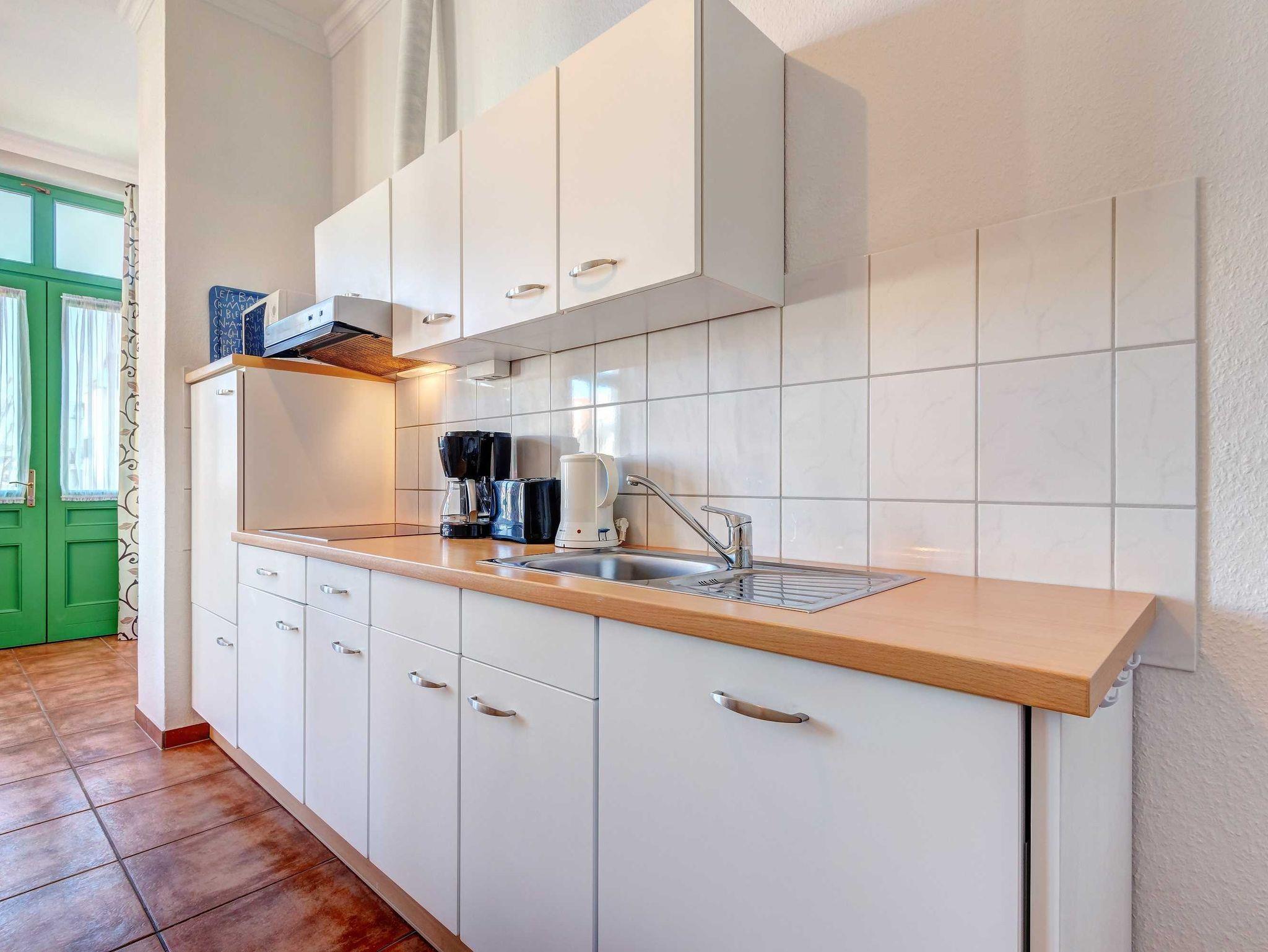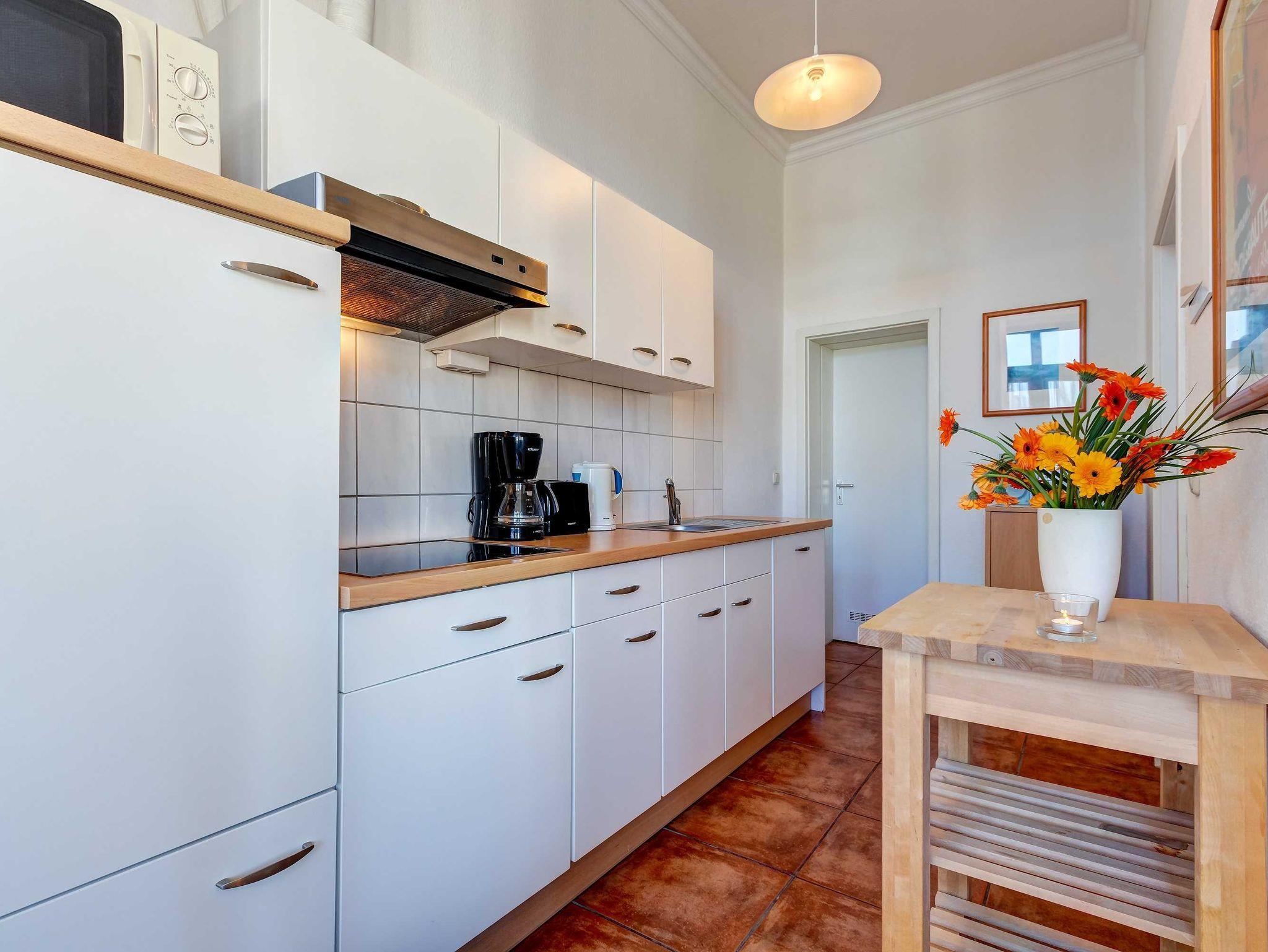 Das gemütliche 2-Zimmer-Appartement Nr. 2 hat einen separaten Eingang und befindet sich im Erdgeschoss der Villa Ostseewarte im Seebad Ahlbeck nur 2 Minuten vom Ostseestrand entfernt. Es verfügt über ein separates Schlafzimmer mit einem Doppelbett und einen Wohnbereich mit gemütlicher Sitzgruppe, auf welcher eine Aufbettung für eine dritte Person vorgenommen werden kann. Die Küchenzeile ist mit Kaffeemaschine, Wasserkocher, Toaster sowie Geschirrspüler ausgestattet. Das Bad verfügt über Dusche und WC. Zum Appartement gehört darüber hinaus eine große Terrasse mit Gartenmöbeln und einem Strandkorb. Ein Pkw-Stellplatz steht Ihnen auf dem Grundstück kostenfrei zur Verfügung und Ihre Fahrräder können Sie ebenfalls auf dem Grundstück in einem separaten Abstellraum unterbringen. Alle Wohnungen in der Villa Ostseewarte haben passwortgeschütztem DSL-WLAN Internetzugang (gerätegebunden, Euro 1,50 pro Tag und Gerät). Eine Waschmaschine können Sie gegen Gebühr gern nutzen (Münzgerät).
