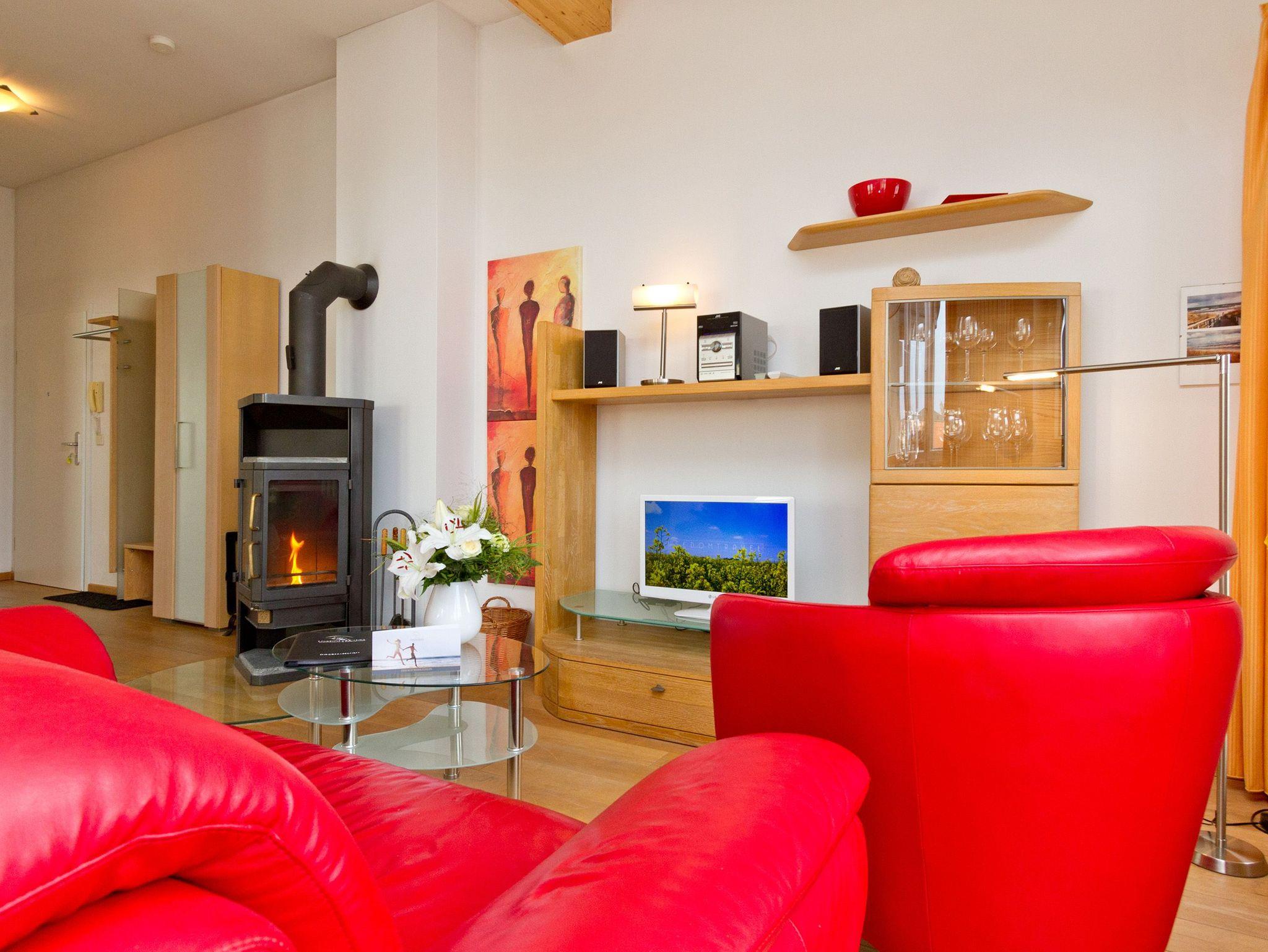 Genießen Sie Ihren Usedomurlaub in vollen Zügen. Die Ferienwohnung 14 im Obergeschoss der Residenz ist mit hochwertigen Holzmöbeln und einem schönen Dielenboden eingerichtet. Das stylische, rote Ledersofa mit Blick auf den Kaminofen wird sicher zu Ihrem Lieblingsplatz. Vielleicht aber auch der Balkon, von dem man sogar ein wenig die Ostsee sieht. Das Schlafzimmer ist mit einem Doppelbett ausgestattet und verfügt über einen eigenen Balkon, auf dem man windgeschützt in der Morgensonne frühstückt. Ergänzt wird die Wohnung durch die integrierte, voll ausgestattete Küchenzeile und das Bad mit Dusche und Badewanne. Auf Wunsch stellen wir für unsere kleinen Gäste ein Kinderreisebett (ohne zusätzliche Matratze [&] Bettzeug) und einen Kinderhochstuhl ( gegen einen Aufpreis) zur Verfügung. Das Wäschepaket ( Bettwäsche [&] Handtücher) wird bei Buchung automatisch dazu gebucht.