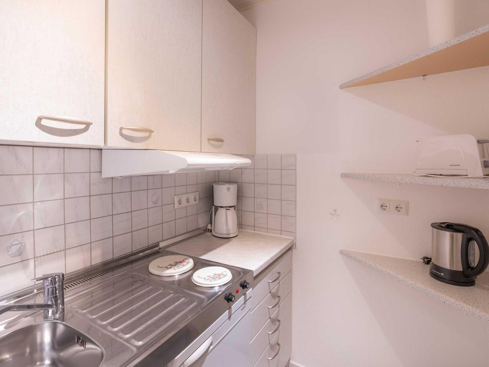 Das 20 m² große Appartment bietet Platz für zwei Personen. Es verfügt über ein Wohnzimmer mit Schlafcouch und Essbereich, einer gut ausgestatteten Küche und einem Duschbad.