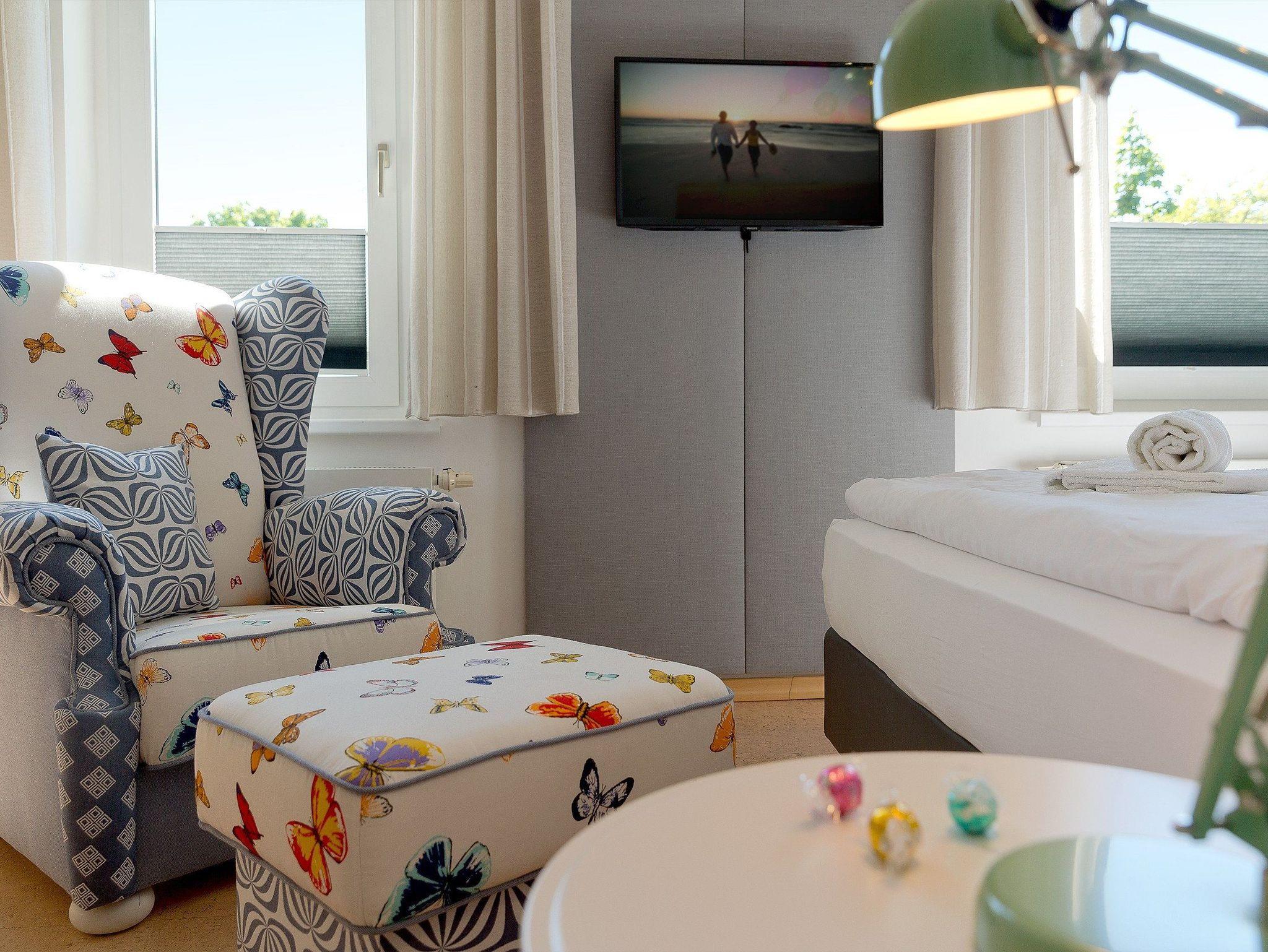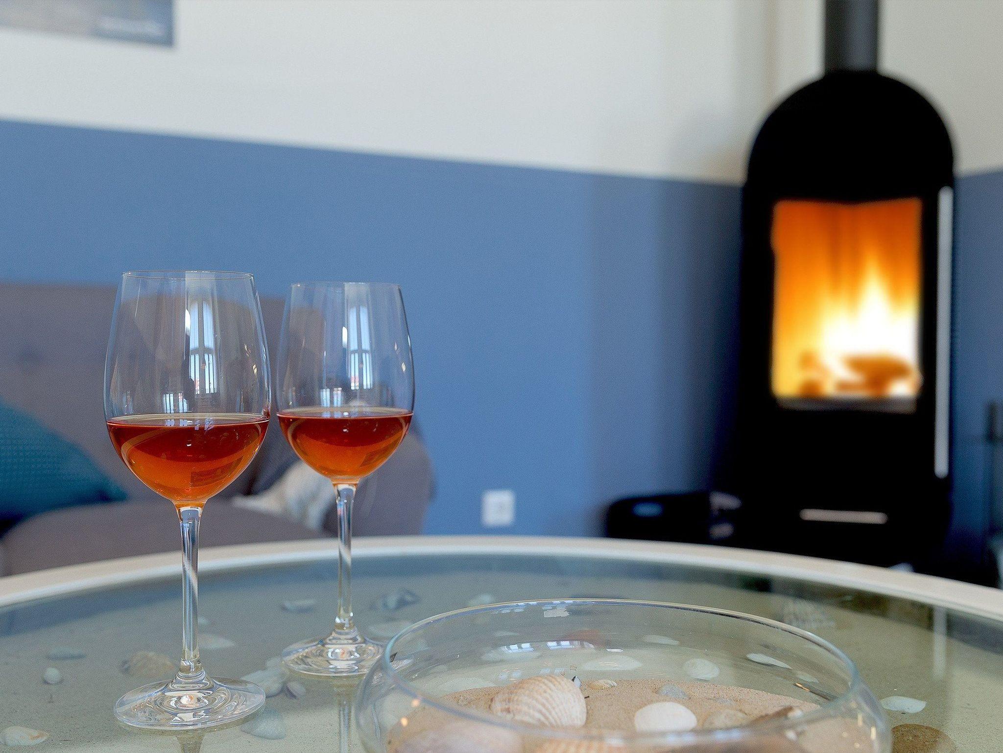 Der großzügige Wohnbereich verfügt über Flat-TV, BlueRay Player, Gesellschaftsspiele, Kamin. Drei Schlafzimmer mit je einem Boxspringbett (2x 180x200cm bzw. 1x 200x200cm / jeweils zwei getrennte Matratzen), Stauraum für die Habseligkeiten und Flat TV komplettieren den Urlaubskomfort.