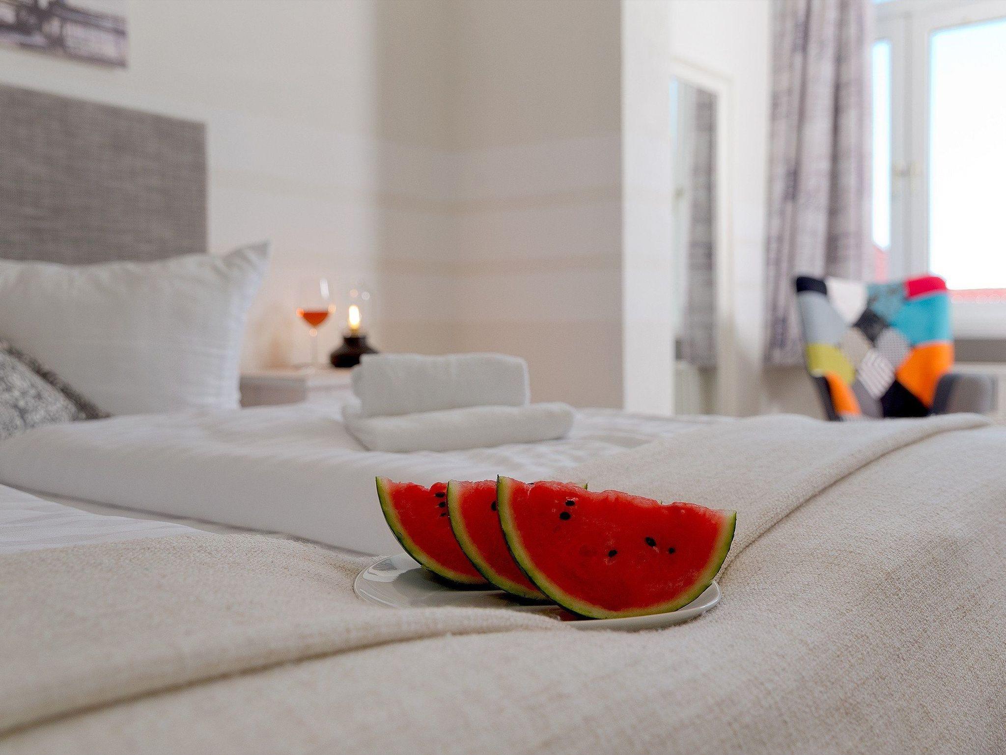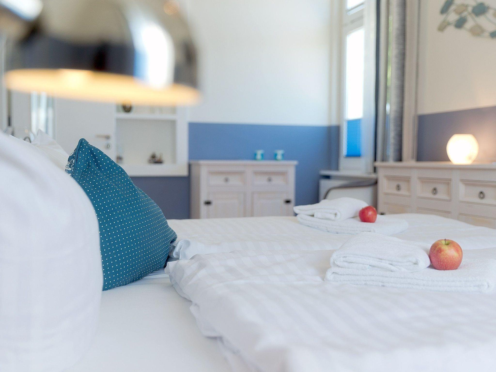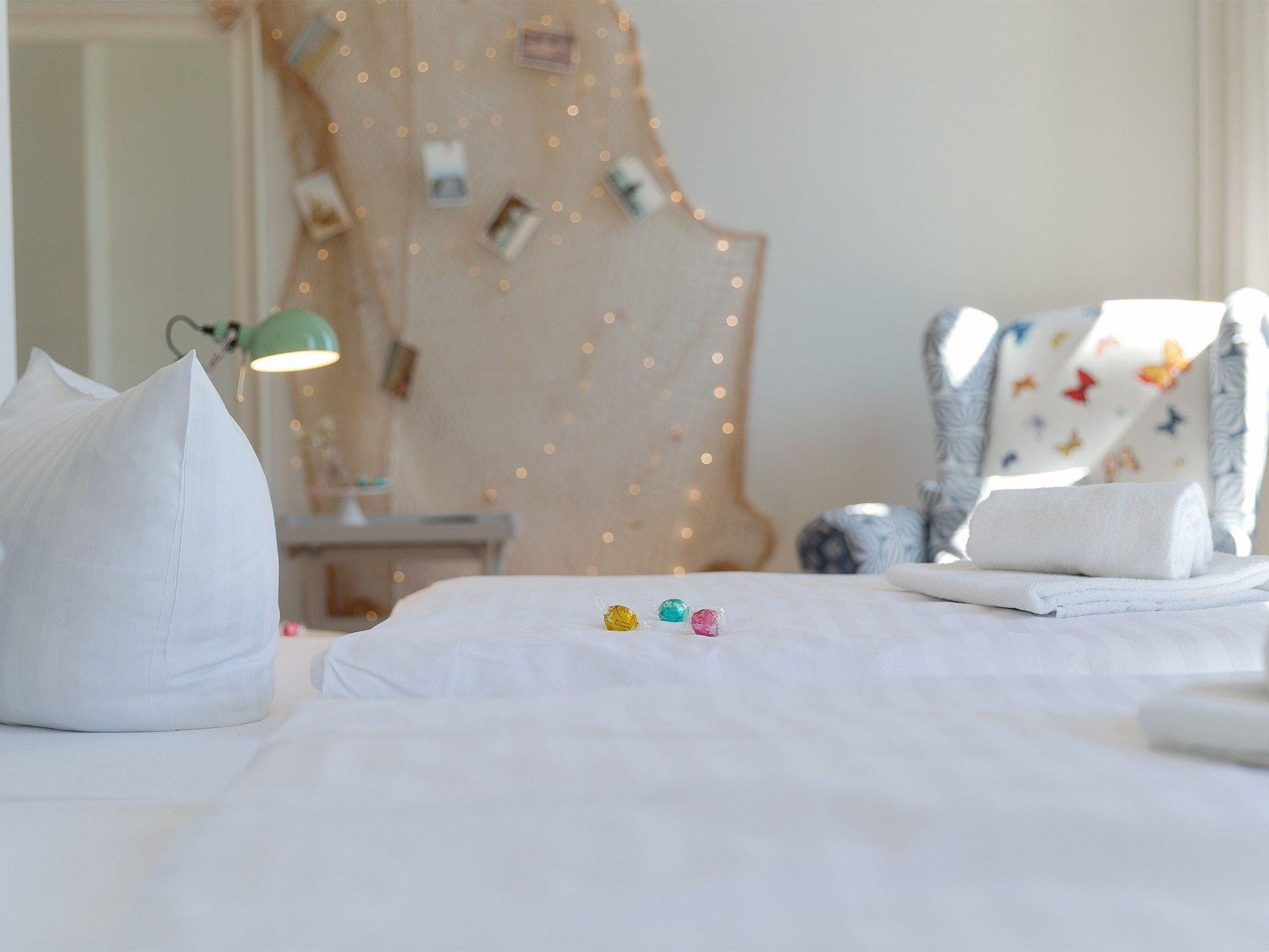 Damit Sie Ihre wohlverdiente Urlaubszeit bereits am Anreisetag in vollen Zügen genießen können, haben wir das Bett für Sie und das für Ihre lieben Mitreisenden bereits bezogen und ein Duschtuch sowie ein kleines Handtuch bereitgelegt. Eine Aufbettung für ein Kleinkind bis 3 Jahre im Babyreisebett ist in zwei Schlafzimmern möglich. Das Appartement verfügt über 2 Bäder: 1x Duschbad mit WC und Bidet; 1 x Wannenbad mit WC, Haarfön, Waschmaschine.