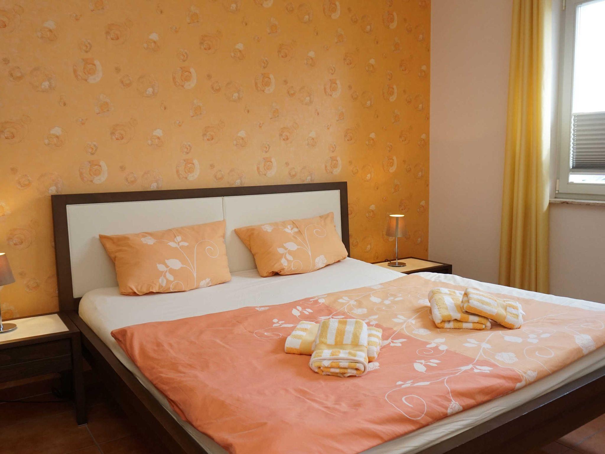 Die 2 Zimmerwohnung (Dachgeschoss) 43 qm in Südostlage mit großzügiger Terrasse über die gesamte Hausbreite ist hell und modern eingerichtet und verfügt über einen sehr guten Standard. - alle Böden gefliest (außergewöhnliche Farben und Formen) - alle Türen Echtholz furniert - Fußbodenheizung - Kabelfernsehen (Flachbild) - große Fenster mit Schiebeelementen - Treppenhaus Granit - Markeneinbauküchen - Wechselsprechanlage