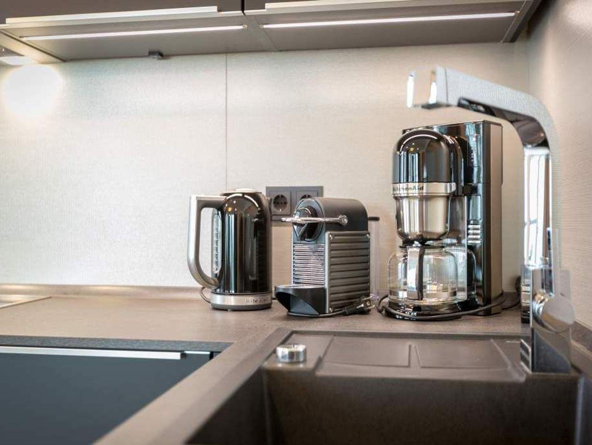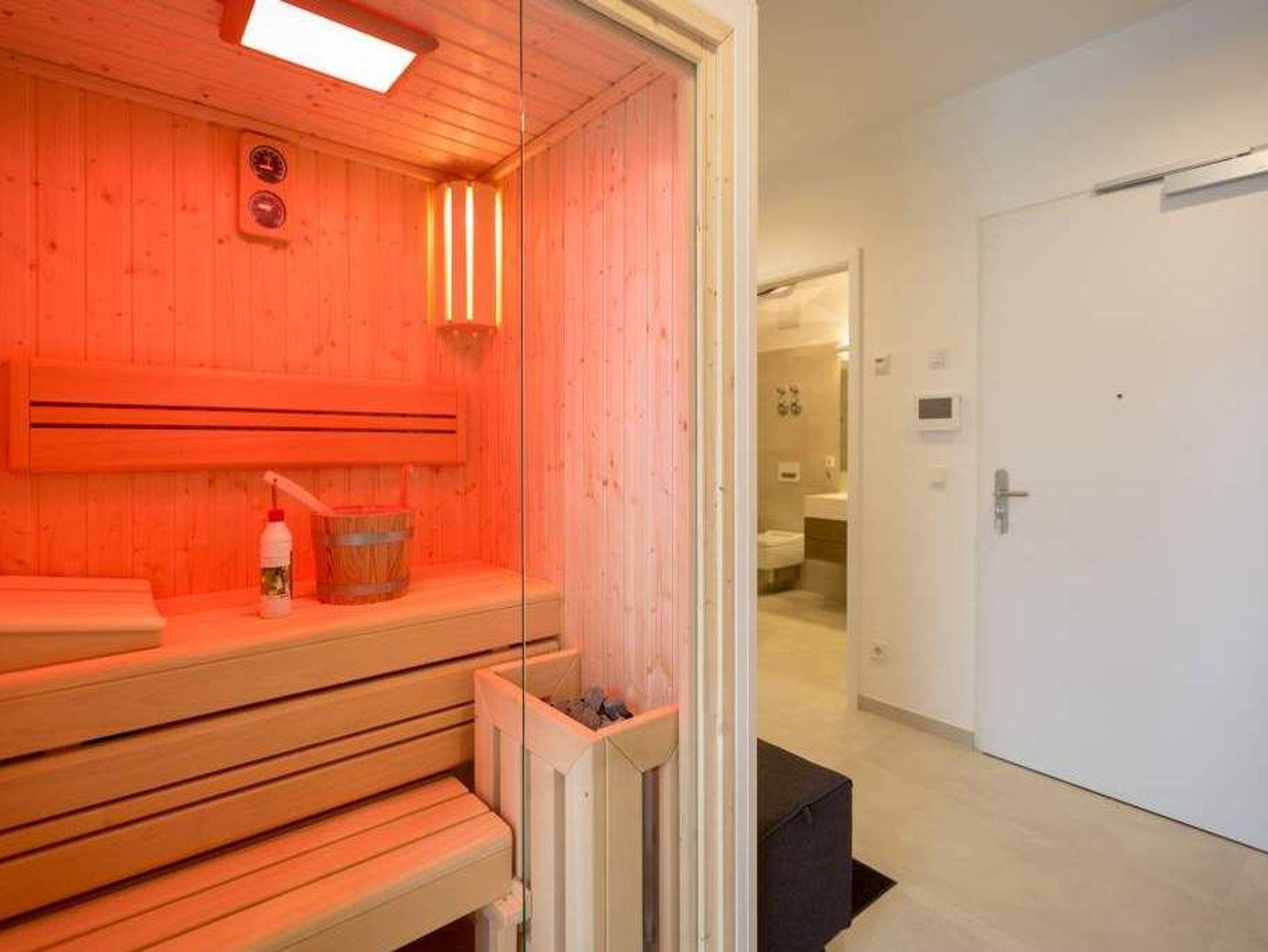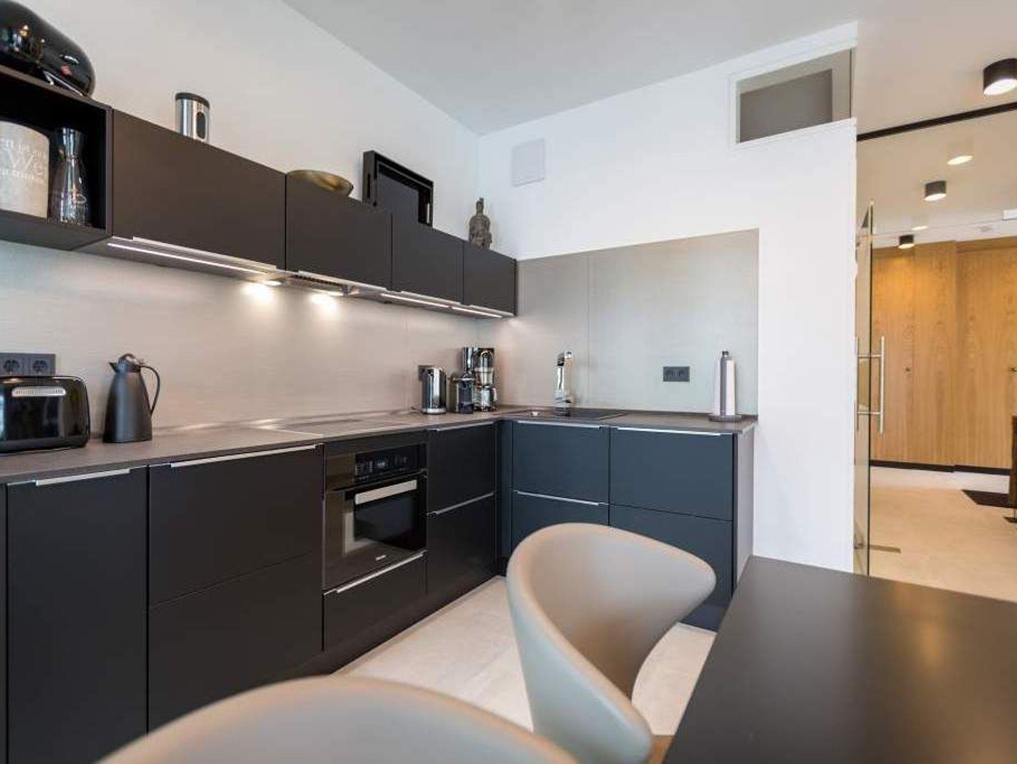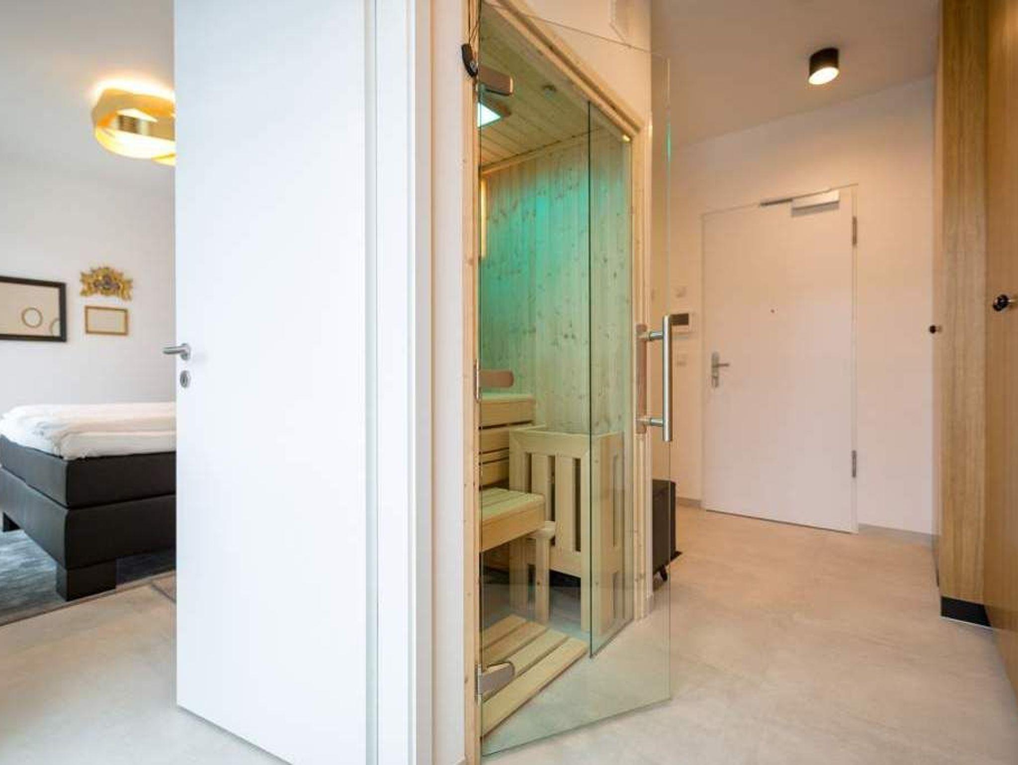 Im zweiten Oberschoss des Westendpalais zur Seeseite genießen Sie nicht nur einen herrlichen Blick auf die Ostsee, sondern es erwartet Sie zudem ein Luxusquartier. Konsequent, bis ins kleinste Detail durchdacht, offeriert sich Ihnen diese luxuriöse 2-Raum-Ferienwohnung auf großzügigen 70 qm (buchbar für 2 Personen [&] 1 Kleinkind bis 3 Jahre im Kinderreisebett). Eine Lounge von Rolf Benz, ein Essplatz von Molteni [&] C. mit Tonon Chairs, Stoffe von Gucci, Leuchten von Marchetti, Möbel von Lambert, Außenmöbel von Dedon, kombiniert mit auserlesenen Accessoires machen dieses Urlaubsnest zu einer Besonderheit. Für Multimedia ist gesorgt ? zwei große Flat-Screen-TV´s und Blue-Ray-Player lassen nichts vermissen. Der traumhafte Süd/Ost Balkon bietet Ihnen bereits zum Frühstück die Gelegenheit, die Kraft der Sonne zu tanken. Eine gemütliche Atmosphäre in der kalten Jahreszeit erweckt der Elektrokamin durch einen beruhigenden Blick in das Feuer. Das großzügige Schlafzimmer (abdunkelbar) mit Boxspring-Doppelbett inkl. Meerblick sogar im Liegen und die Diele mit geräumigem Einbauschrank befinden sich im westlichen Teil der Wohnung. Dieser Bereich wurde zusätzlich durch eine Glastür vom offenen Apartment abgetrennt und bietet Ihnen jederzeit die Möglichkeit zum Zurückziehen und Abschalten.[nbsp] Erleben Sie hier, wie unkompliziert und komfortabel sich das eigene Bad mit besonderen Wasseranwendungen zum Home Spa aufwerten lässt ? und so zu einem wesentlichen Bestandteil Ihrer persönlichen Gesundheits- und Wellness-Strategie wird. Durch das exklusive Konzept-Duschbad mit Dornbracht-Armaturen, Waterfall-Schwallbrause, Water-Points Seitenbrausen, großer ebenerdiger Walk-In Dusche, Keuco Design Badmöbeln, puristische Formen bei Waschtisch und WC und einer angrenzenden Sauna mit Farblichtanwendung möchten wir Ihre Urlaubserwartungen an Wellness und Gesundheit (Healthness) erfüllen. Zudem bieten wir Ihnen vital [&] köstlich exklusiv in diesem Appartement belebtes GRANDER Trinkwasser für mehr Lebensenergie und gesteigertes Wohlbefinden an. Für Ihren Komfort sind die Betten bei der Anreise bezogen und Handtücher liegen bereit. Ein überaus großzügiger Pkw-Stellplatz steht in der Tiefgarage zur Verfügung. Eine Waschmaschine in der Wohnung ist gegen Gebühr nutzbar. Auf Wunsch stellen wir ein Kinderreisebett (ohne zusätzliche Matratze [&] Bettzeug) und einen Kinderhochstuhl gegen einen Aufpreis zur Verfügung.