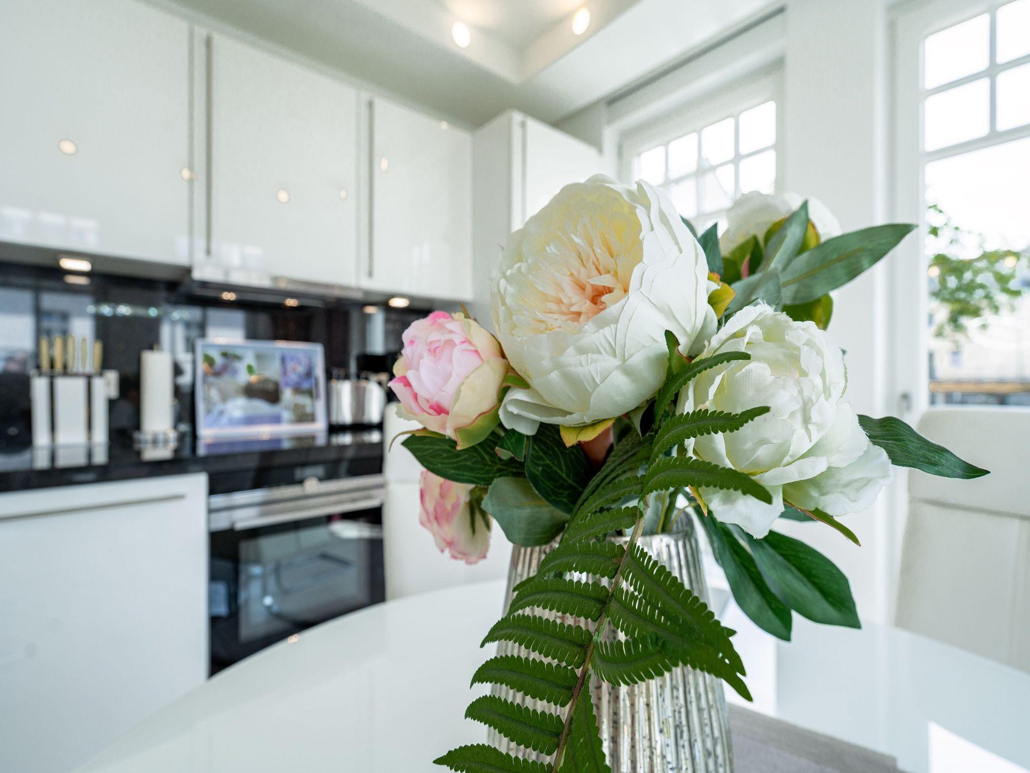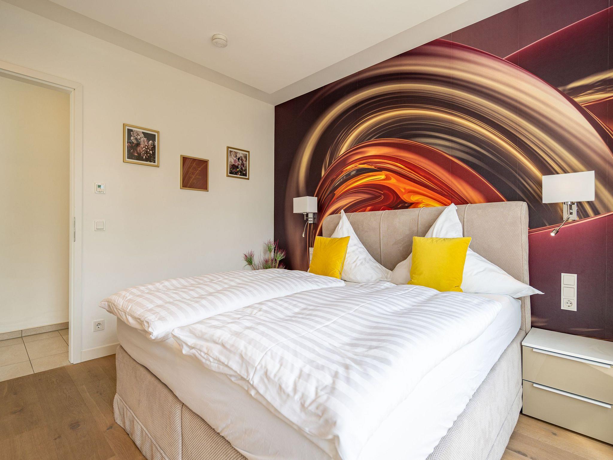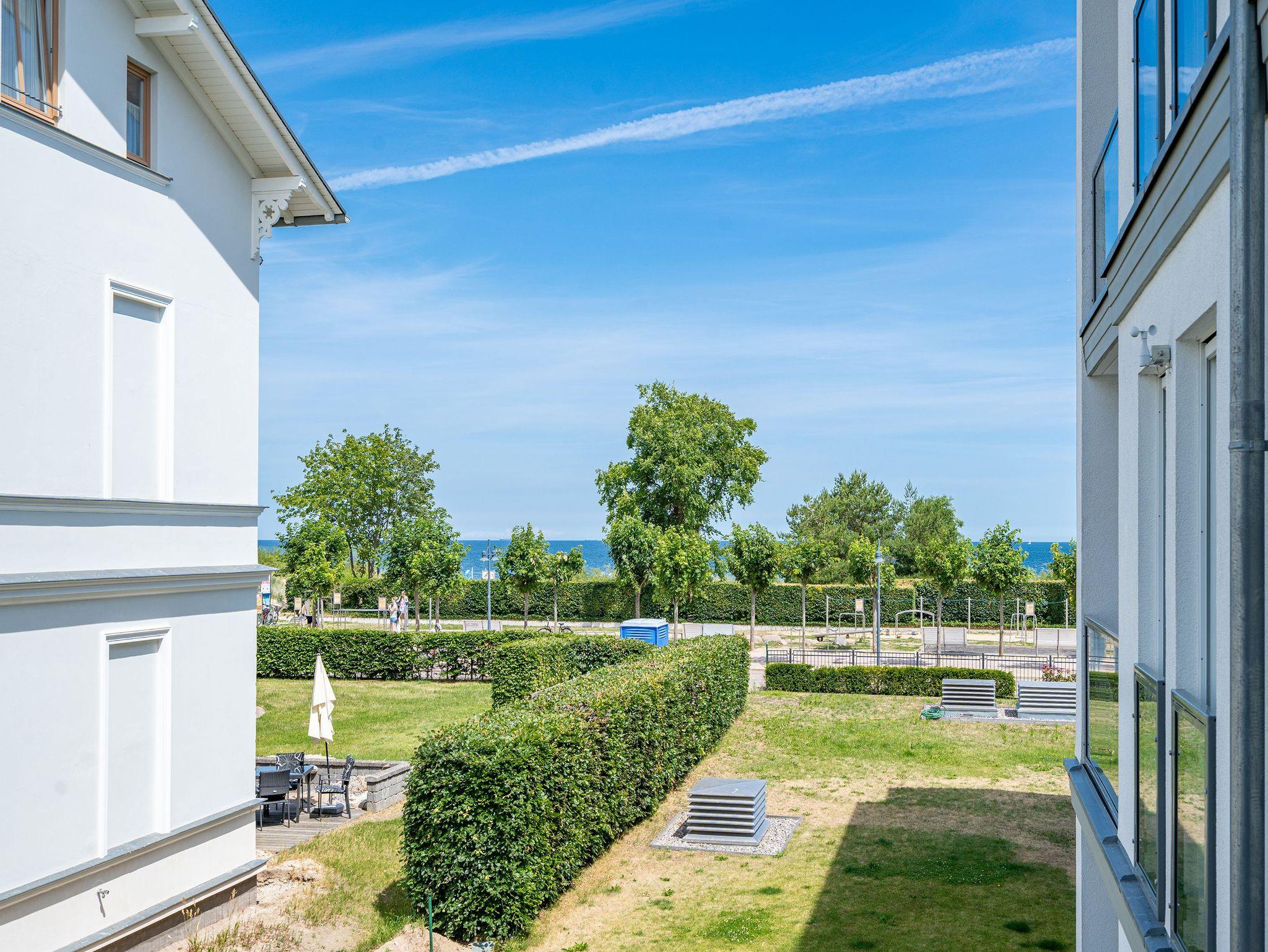 Willkommen in der Villa Westend - Appartement 10! Diese geräumige 3-Raum-Ferienwohnung im 1. Obergeschoss bietet Ihnen auf 84 Quadratmetern Platz für bis zu 4 Personen und 1 Kleinkind (bis 2 Jahre im Kinderreisebett). Der offene, helle Wohnbereich lädt mit einer gemütlichen Sitzgruppe, einem Flat-TV, Blue Ray Player, DVD Player, Radio und einem Elektrokamin mit Fernbedienung zum Entspannen ein. Die voll ausgestattete Küchenzeile verfügt über einen Backofen, ein Induktionsfeld, ein Mikrowellenkombigerät mit Grill, eine Spülmaschine, eine Kühlschrank- Gefrierkombination und eine Nespresso-Kapselmaschine. Hier können Sie Ihre Lieblingsgerichte zubereiten und diese am Essplatz genießen. Die Wohnung bietet zwei Schlafzimmer mit komfortablen Boxspringdoppelbetten (1,80 m x 2,00 m), Kleiderschrank und Flat-TV. Für Ihre Erholung stehen Ihnen zwei innenliegende Bäder zur Verfügung, jeweils mit Dusche, Waschtisch und WC. Ein Bad ist zusätzlich mit einer Finnischen Sauna (nutzbar zwischen 15°° - 21°° Uhr) ausgestattet, in der Sie wunderbar entspannen können. Als zusätzlichen Komfort können Sie den Waschtrockner kostenfrei nutzen. Die Ferienwohnung bietet Ihnen einen Nord-Ost-Balkon mit Meerblick, auf dem Sie den Tag mit einer Tasse Kaffee beginnen können, sowie einen kleinen Süd-West-Balkon. Ein PKW-Stellplatz in der Tiefgarage (Nr. 36) steht Ihnen ebenfalls zur Verfügung. Das WLAN-Netz in der Wohnung ist kostenfrei nutzbar.