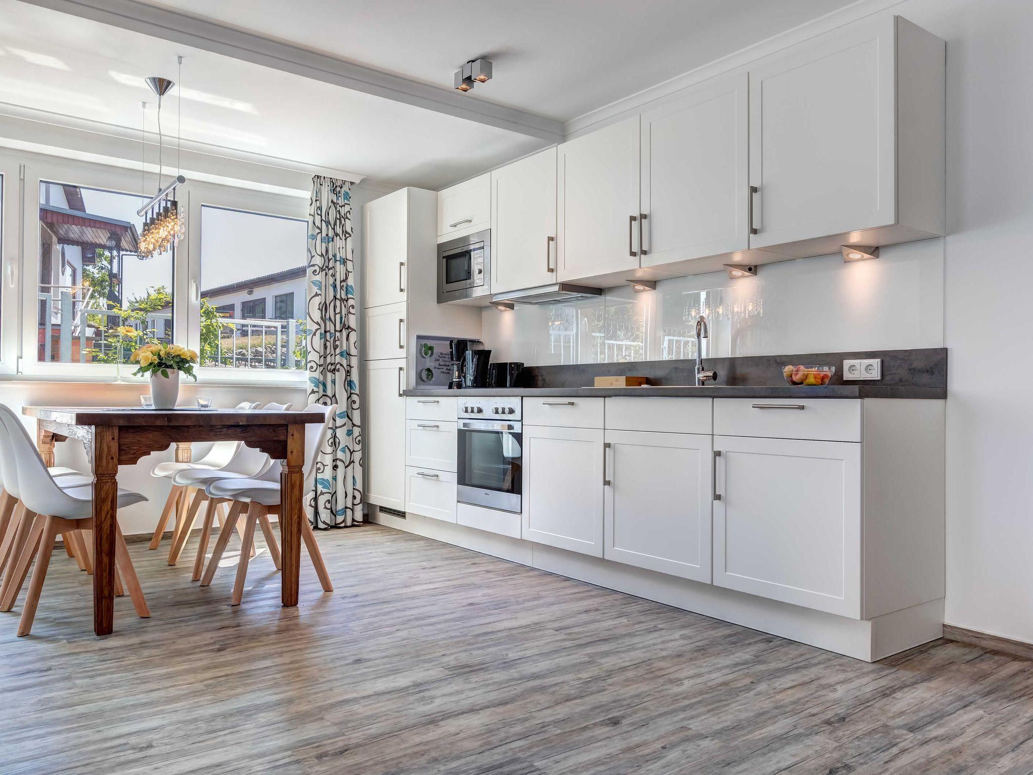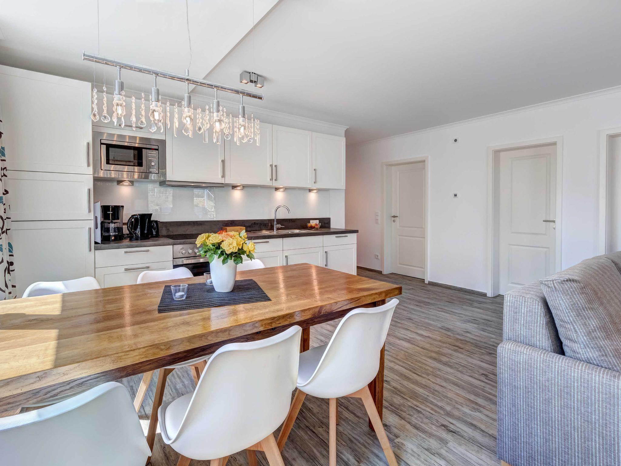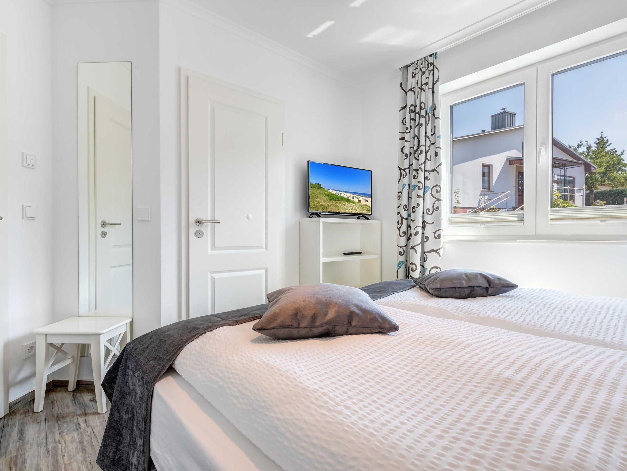 Neubau 2018 mit Fußbodenheizung und großem Süd-Ostbalkon. Die moderne und sehr komfortabel eingerichtete 4-Zimmer-Wohnung verfügt über drei separate Schlafzimmer. Eines davon hat ein zugehöriges großzügiges ensuite-Bad mit Badewanne und Dusche. Die zwei weiteren Schlafzimmer teilen sich ein zusätzliches Duschbad. Vom Wohnzimmer mit Küchenzeile und Essplatz geht es auf den großen Balkon. Die Wohnung verfügt weiter über einen Vorflur mit Garderobe und einen kleinen Abstellraum neben der Küche. Zur Wohnung gehört ein Pkw-Stellplatz auf dem Grundstück. Je nach Größe der Fahrzeuge können auch zwei hintereinander abgestellt werden. Die Villa Teutonia liegt etwa 300m von der Strandpromenade entfernt. Zum Ortszentrum und der bekannten Ahlbecker Seebrücke sind es ca. 8-10 Minuten zu Fuß.