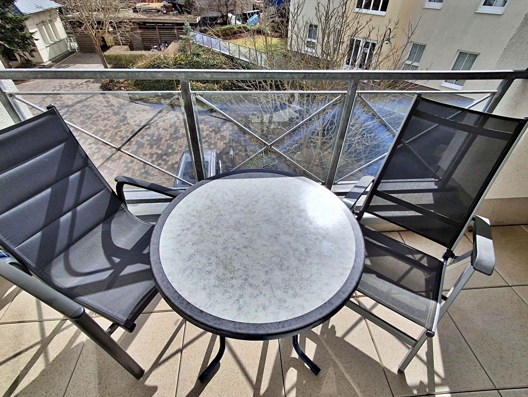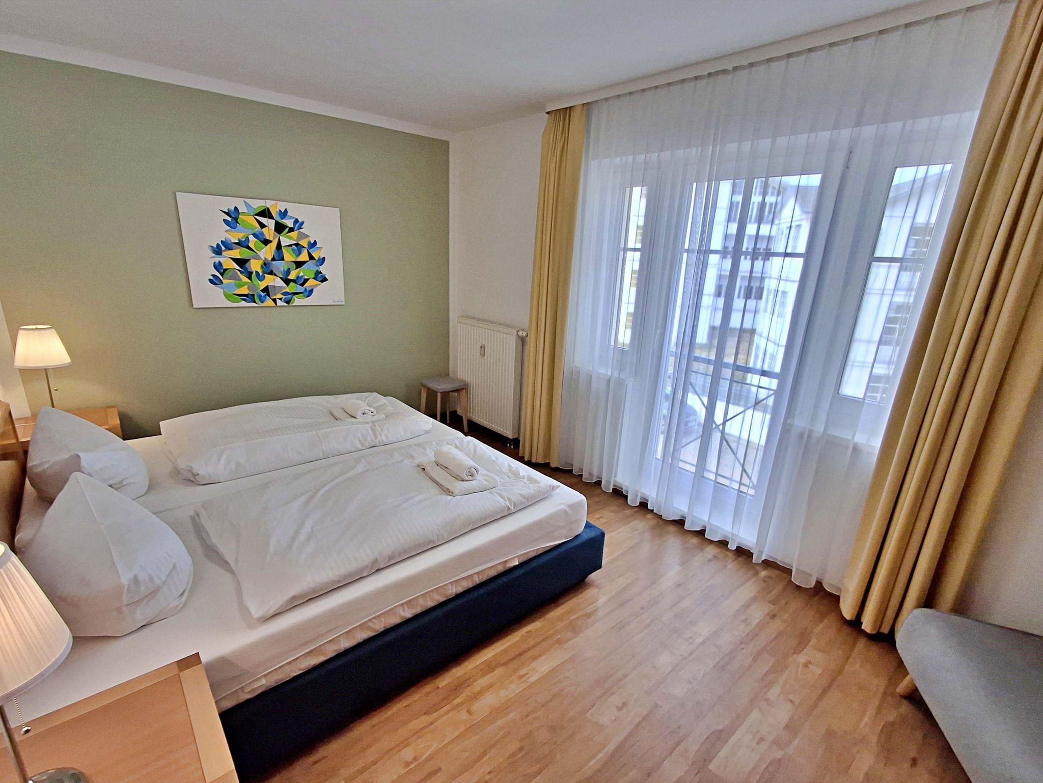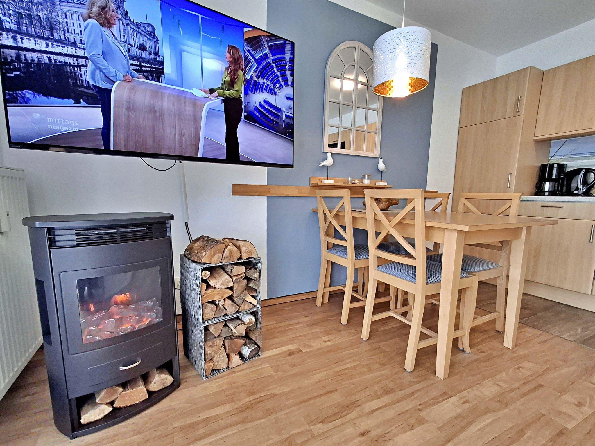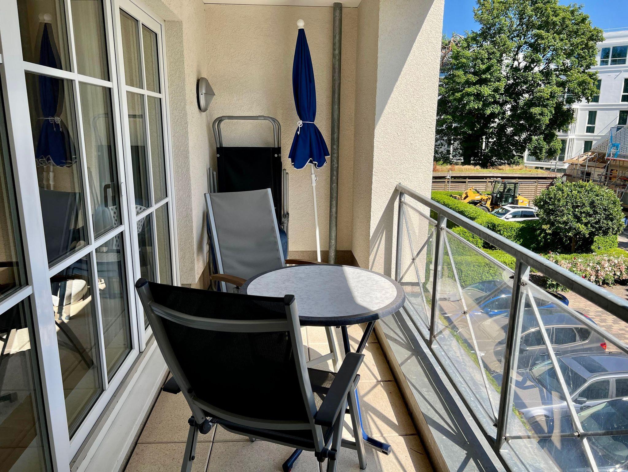 Die 47 qm große 2-Raum-Ferienwohnung befindet sich im zweiten Obgeschoss der Appartementanlage (Fahrstuhl vorhanden, ein stufenloses Erreichen der Wohnung ist gegeben). Die Wohnung verfügt über ein Wohnzimmer mit einem gemütlichen Sofa, Sessel, Elektro-Kamin sowie Esstisch mit 4 Stühlen. Für Unterhaltung sorgen ein internetfähiger Flachbild-TV, eine Stereo-Anlage, DVD-Player und eine Spielesammlung. Die vollständig ausgestattete Küche mit Ceranherd, Backofen, Mikrowelle, Kühlschrank mit Gefrierfach und Spülmaschine lässt keine Wünsche offen. Im Schlafzimmer befinden sich ein Doppelbett, ein Schlafsessel (90cm x 190 cm) und ein zweiter internetfähiger Flachbild-TV. Das Tageslicht-Bad ist mit Dusche/WC, Haarfön nebst Kosmetikspiegel ausgestattet. Eine möblierte Loggia zur Süd-Seite lädt zum Sitzen und Verweilen ein. WLAN steht Ihnen kostenfrei zur Verfügung. Ein Kinderbett mit Wäsche sowie ein Hochstuhl können auf Anfrage gegen eine Gebühr von einmalig 50 € vom Verwalter zur Verfügung gestellt werden.