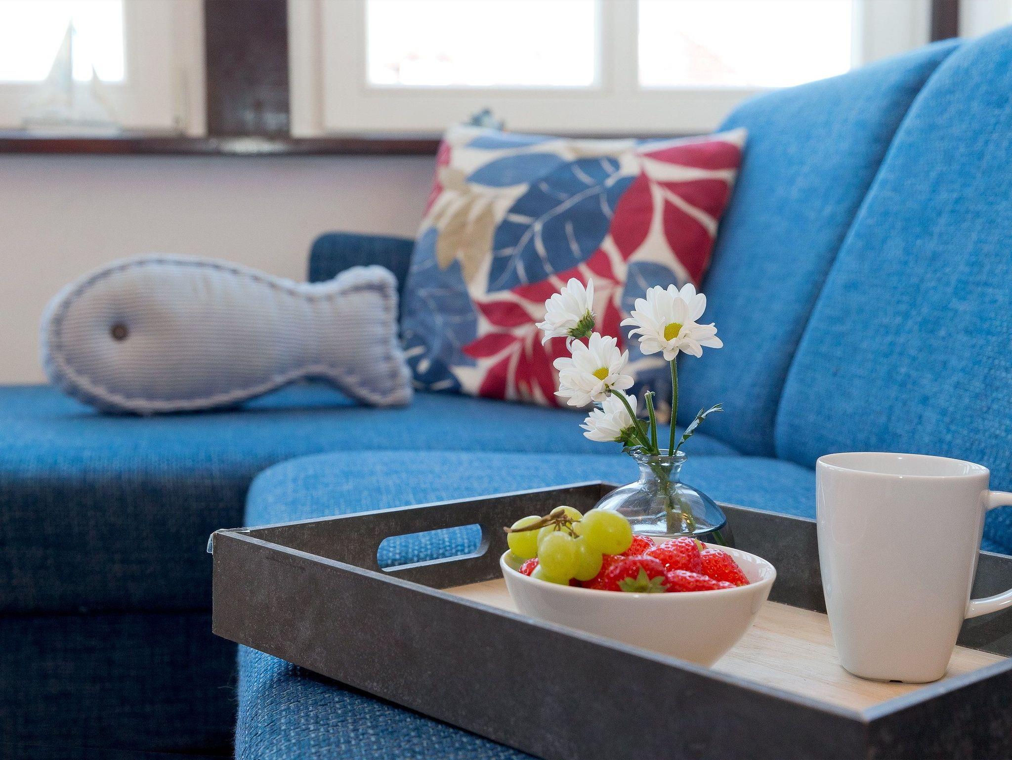 Der Wohnbereich verfügt über eine gemütliche Couch (mit Ausziehfunktion für Aufbettung) mit Leselampe, Flachbild-TV (32 Zoll), CD / DVD / Bluray 2.1 Dolby System, iPod-Dockingstation sowie einen Esstisch mit Schwingstühlen und einen Hängesessel zum Relaxen. Die im Wohnbereich integrierte komplett ausgestattete Einbauküche verfügt zudem über Kühlschrank, Mikrowelle, Ceran-Kochfeld (4 Platten), Spülmaschine, Wasserkocher, Toaster, Kaffeemaschine (4er Filter), Messerblock. Das Schlafzimmer ist mit hochwertigen Boxspringbett (160 x 200 cm) mit Leselampe ausgestattet.